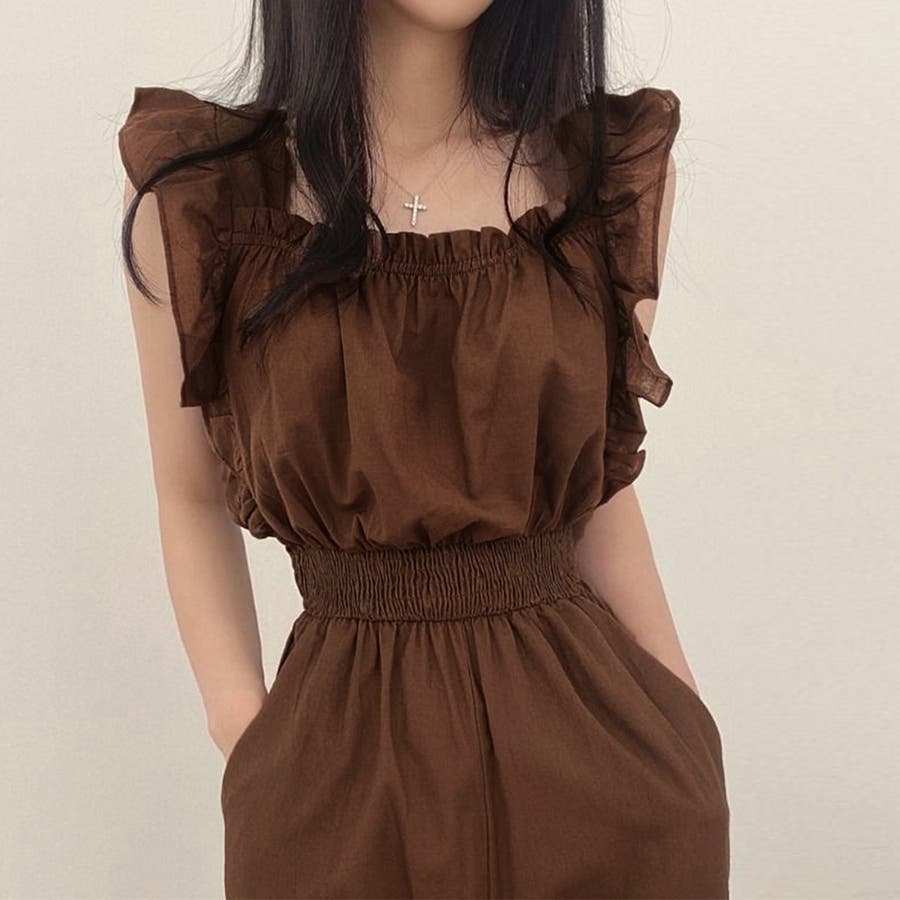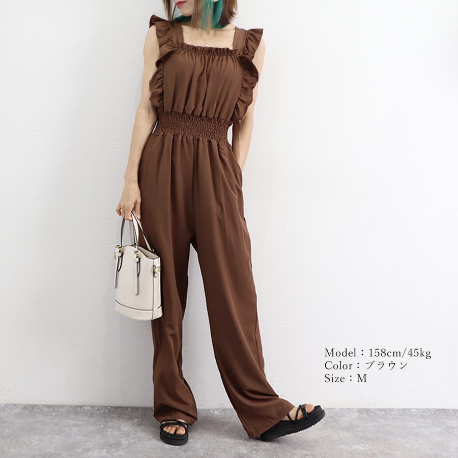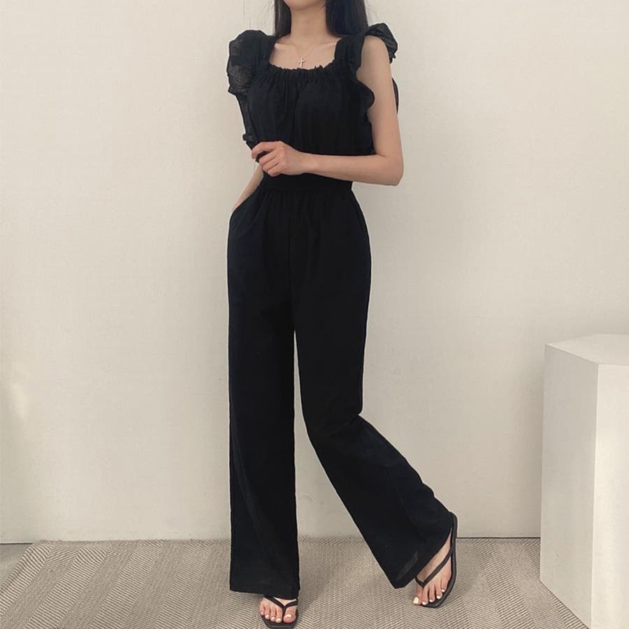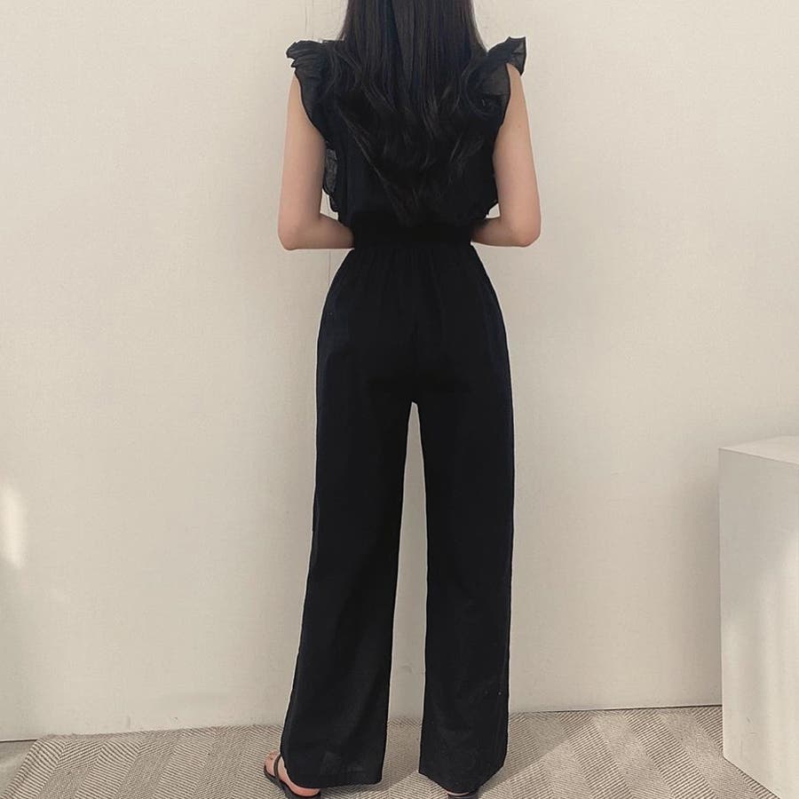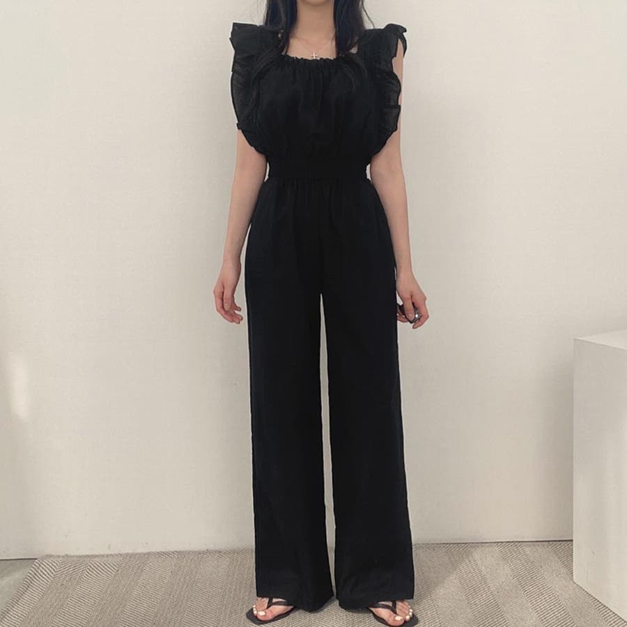 フリル袖 オールインワン パンツドレス