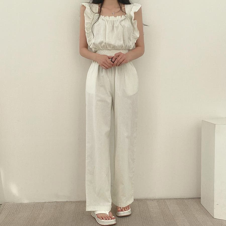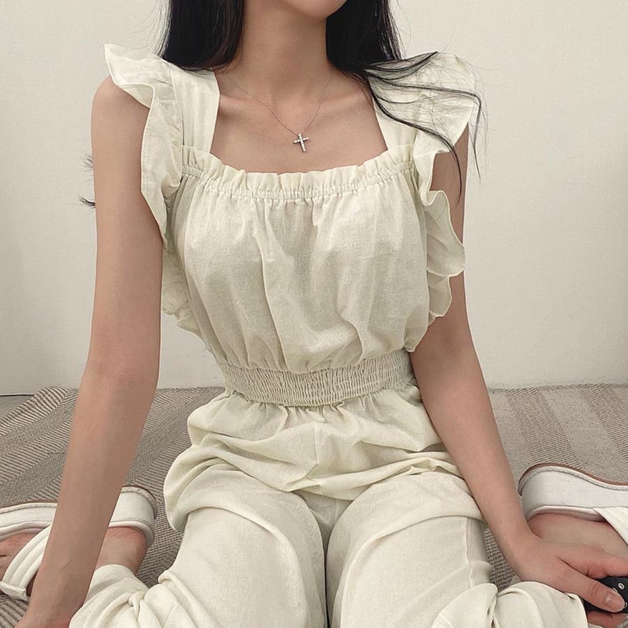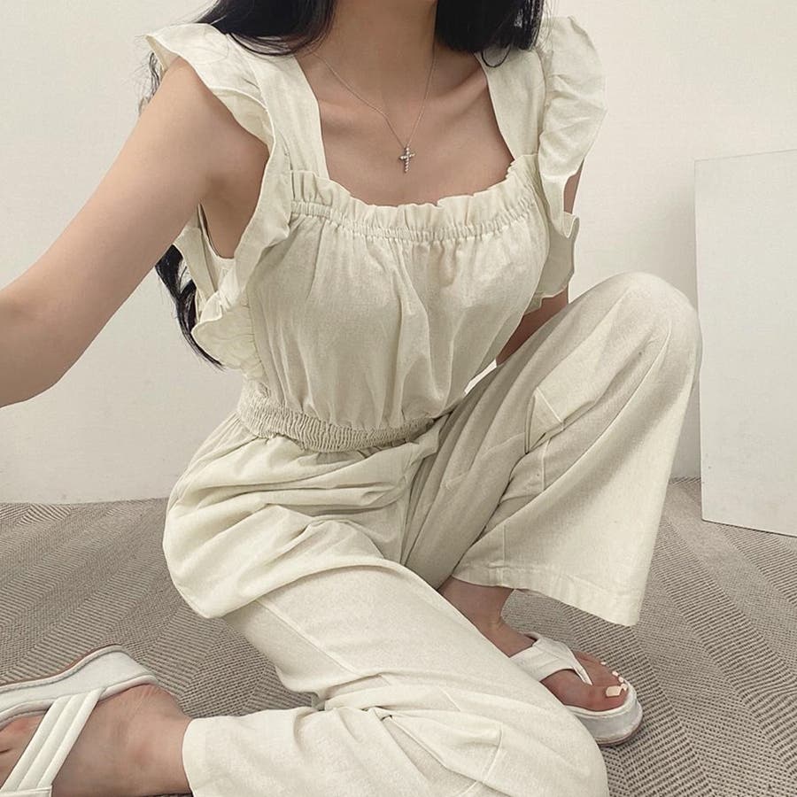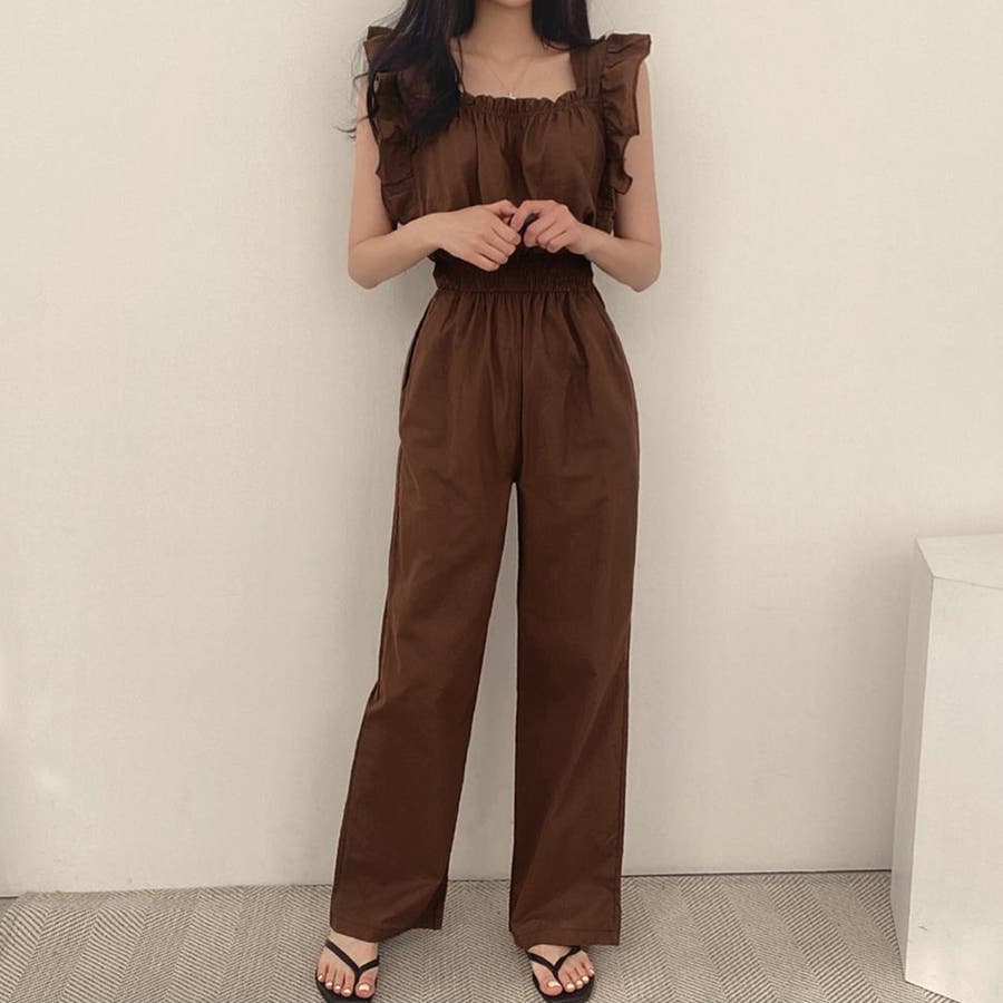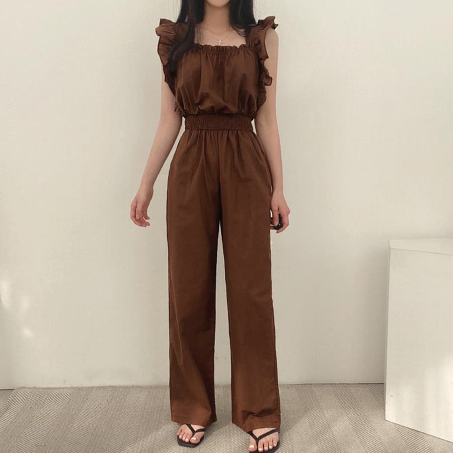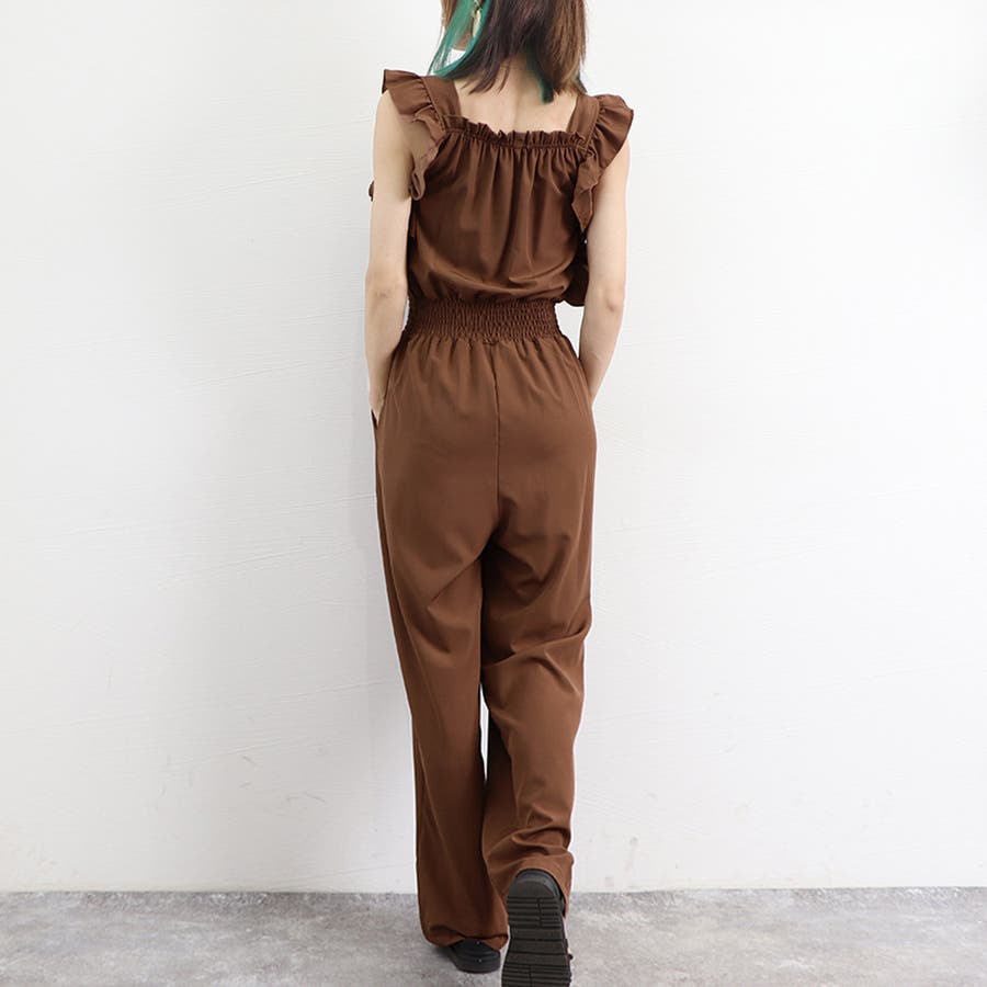 フリル袖 オールインワン パンツドレス