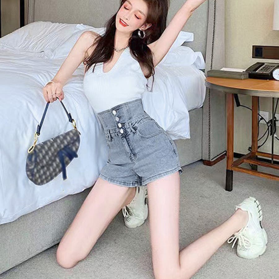 デニム ショートパンツ ハイウエスト美脚