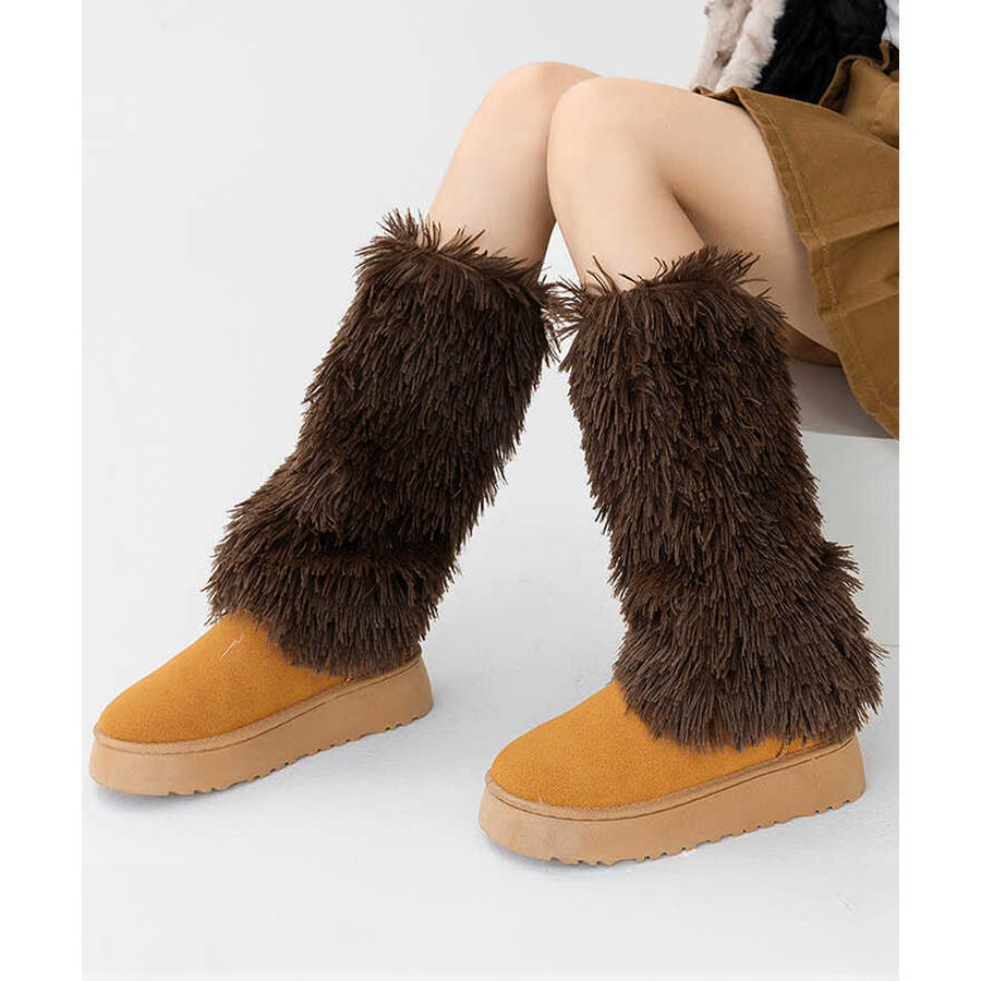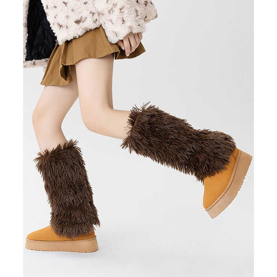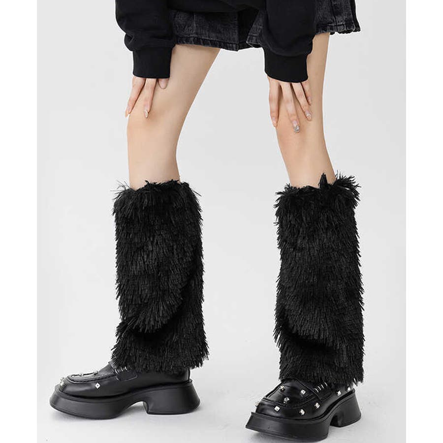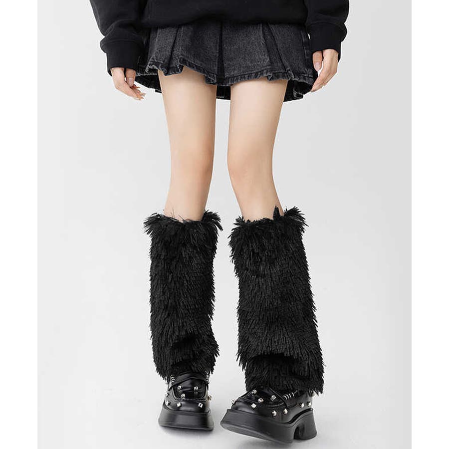 足元にボリュームと可愛さをプラスするフェイクファー素材のモコモコレッグウォーマー。