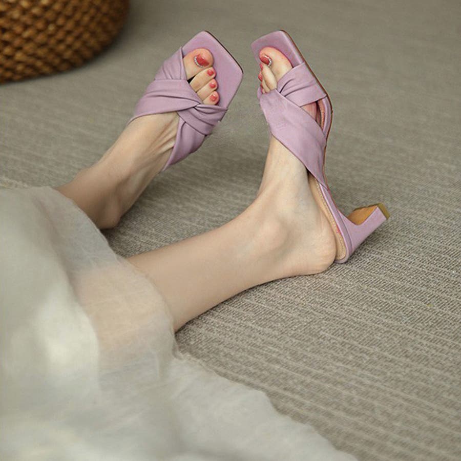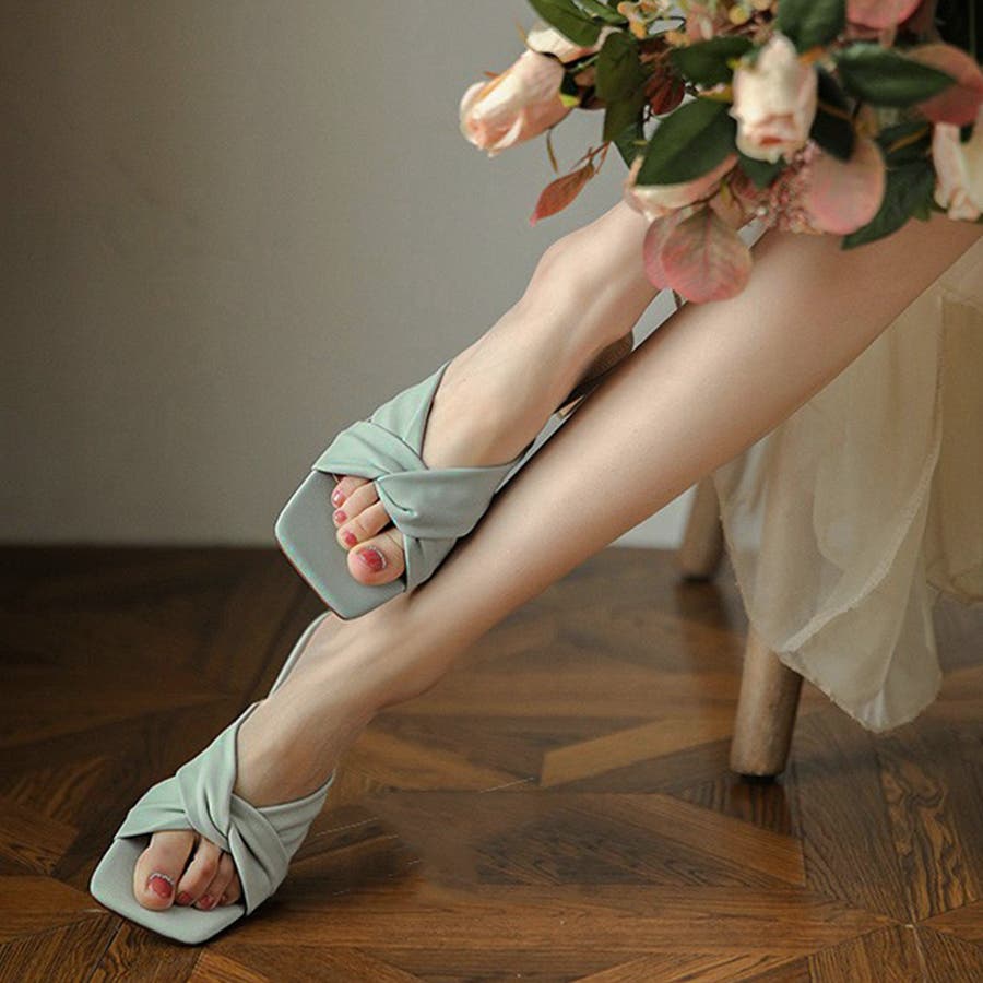 セットバックヒール サンダル レディース