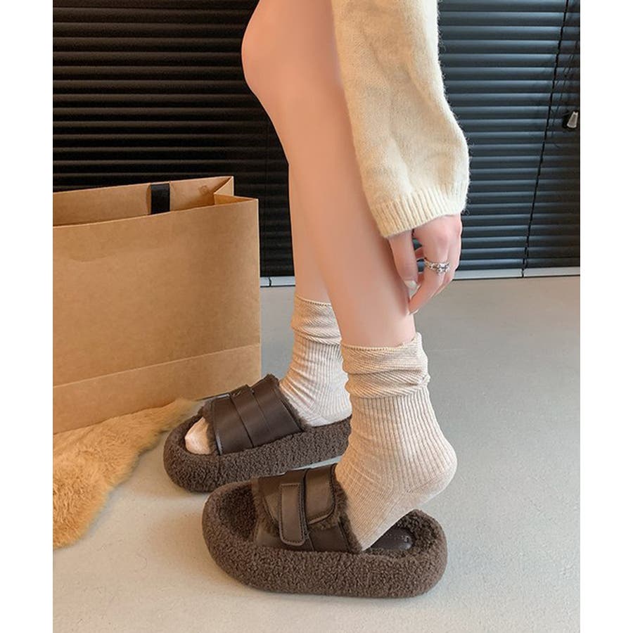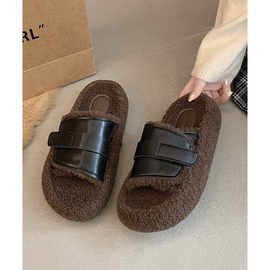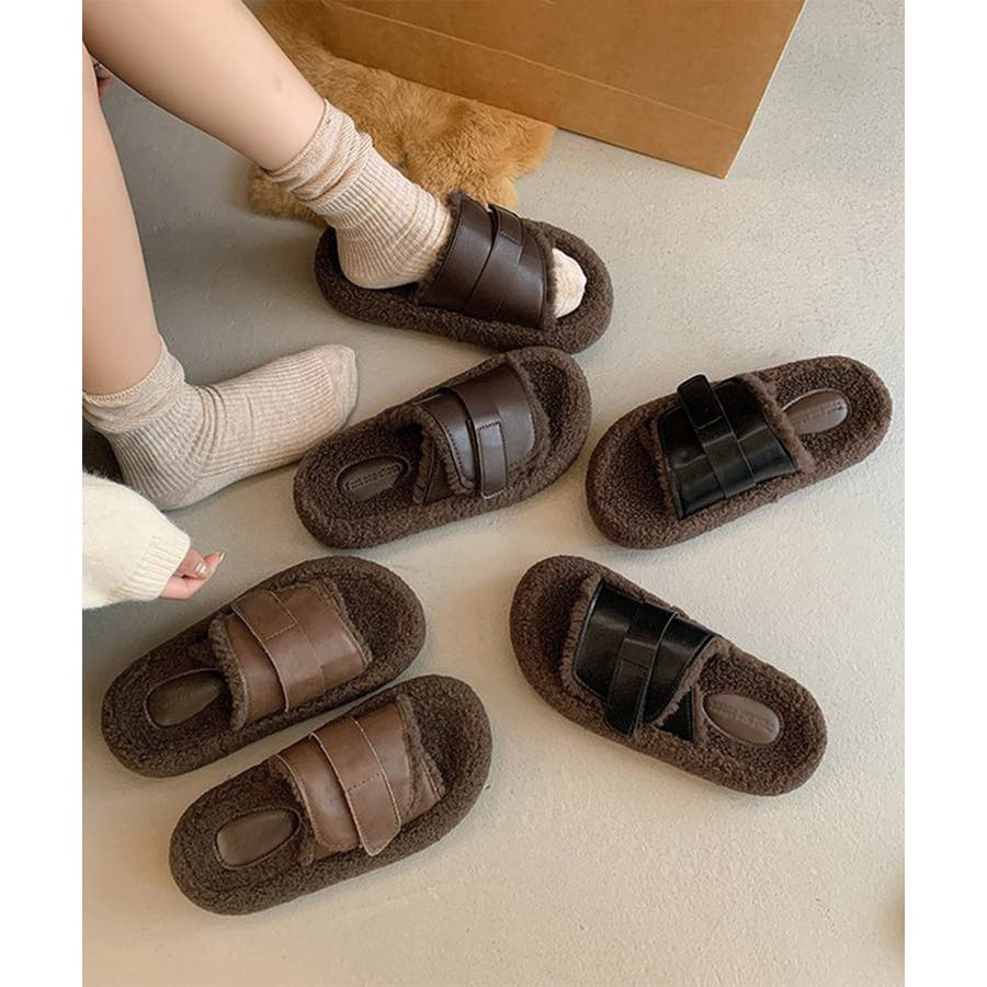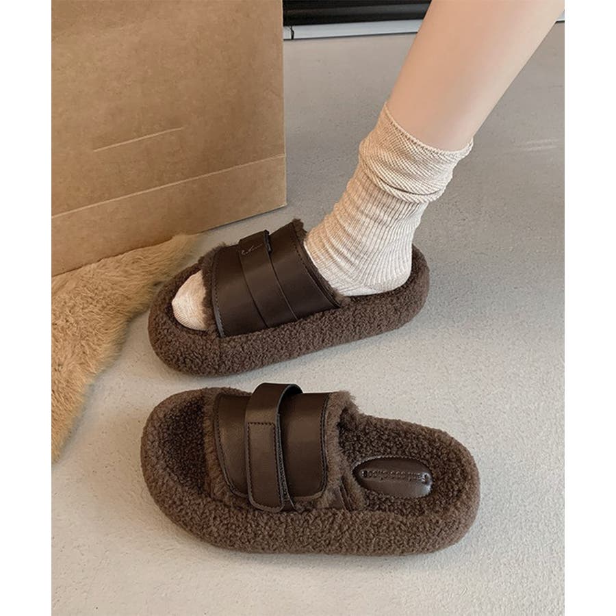 寒い季節にぴったり!ふわふわ暖かいフェイクファースリッパ。