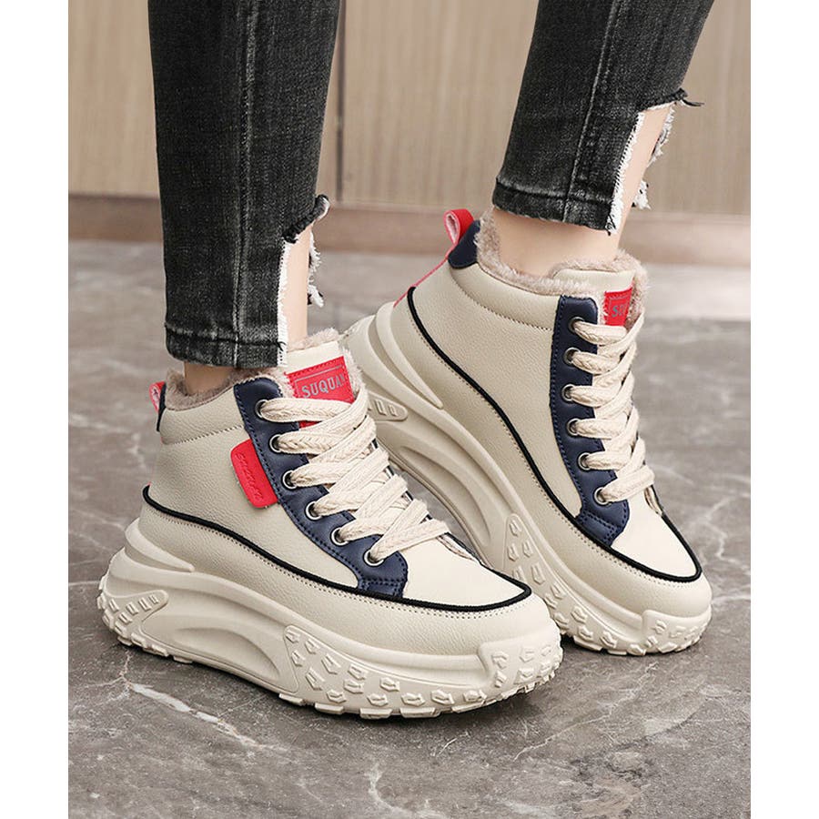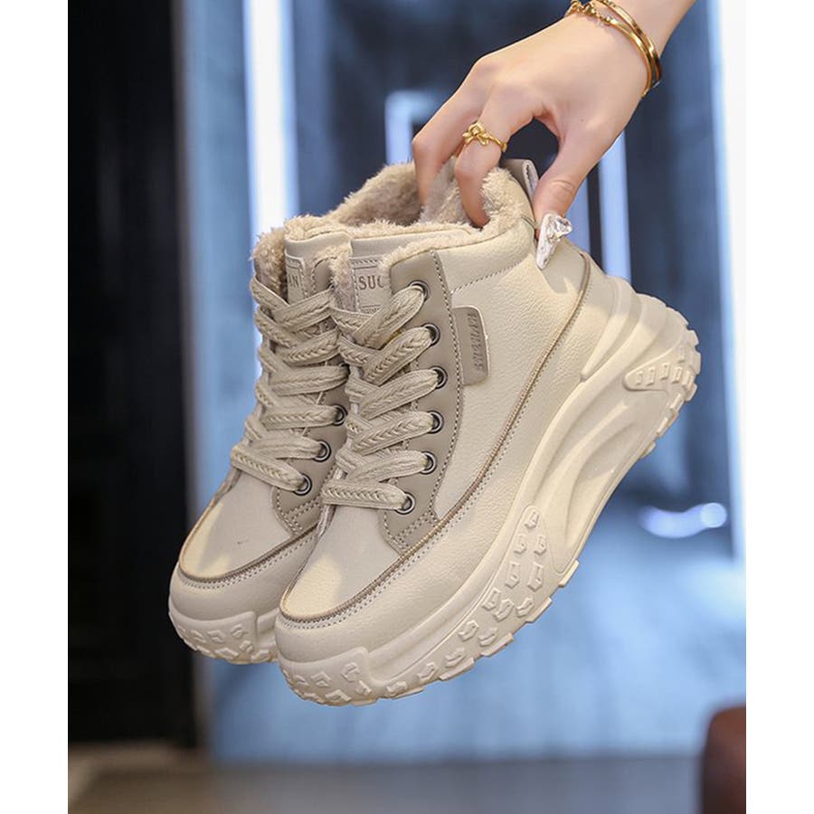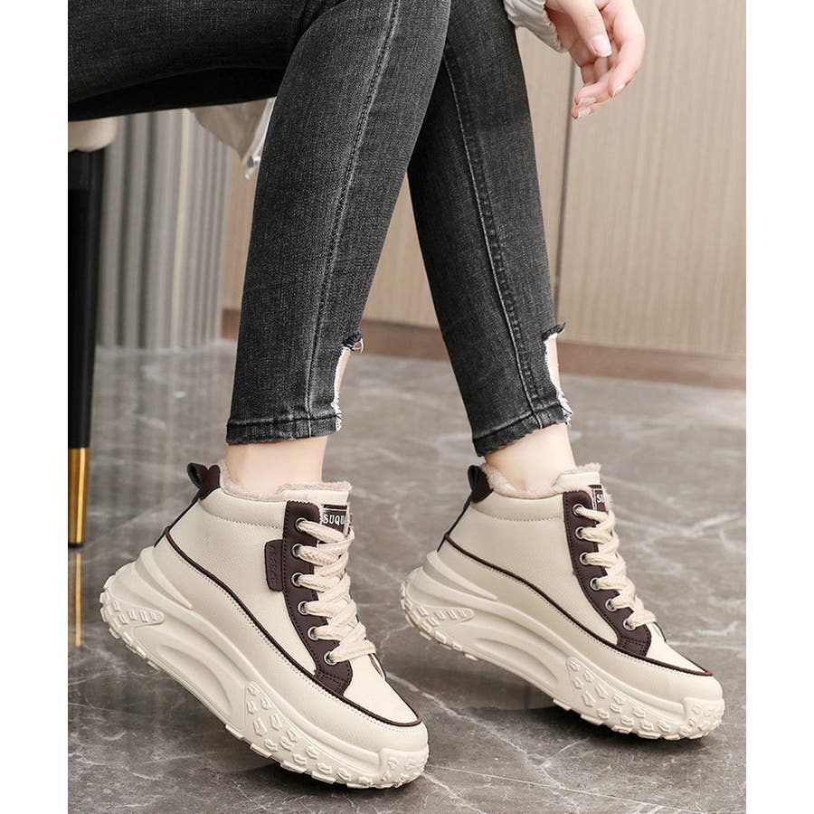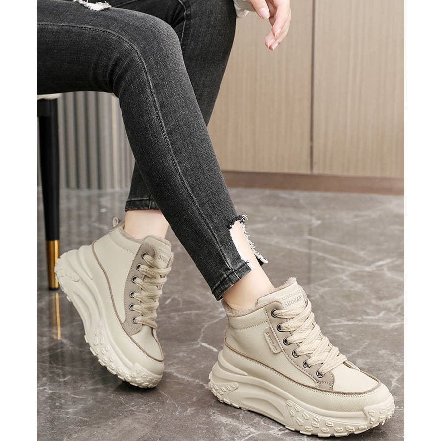 裏起毛 厚底スニーカー ハイカット韓国風