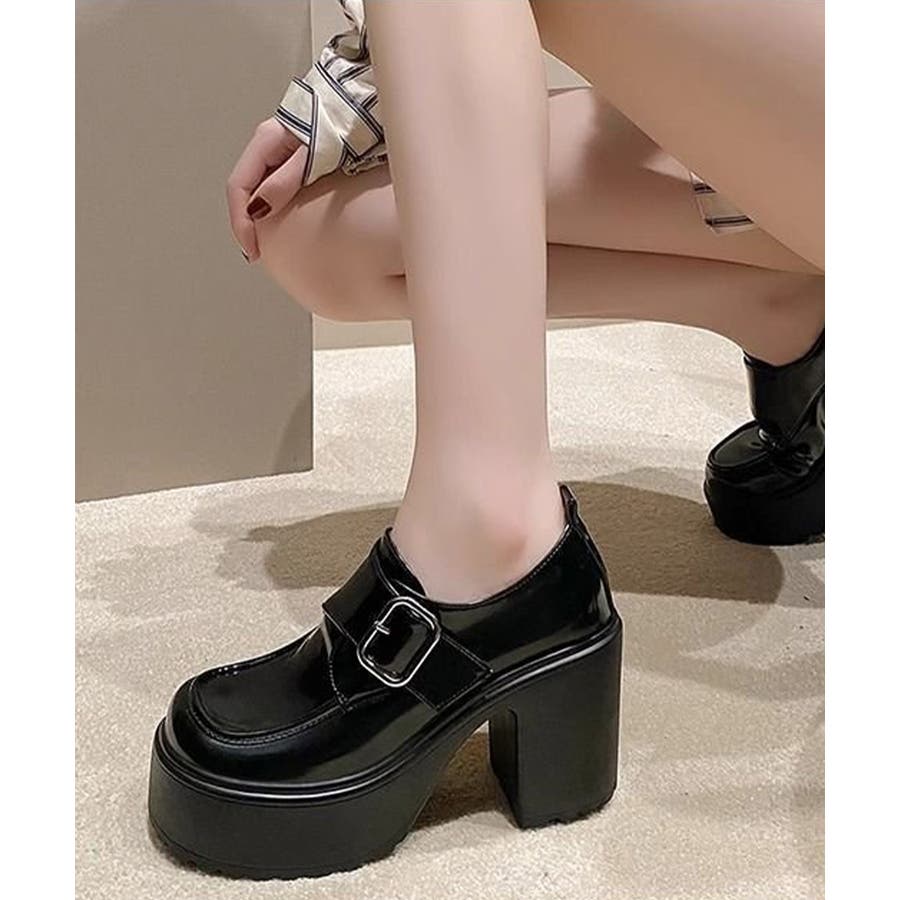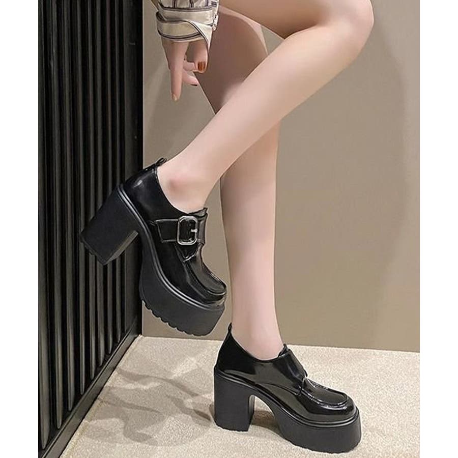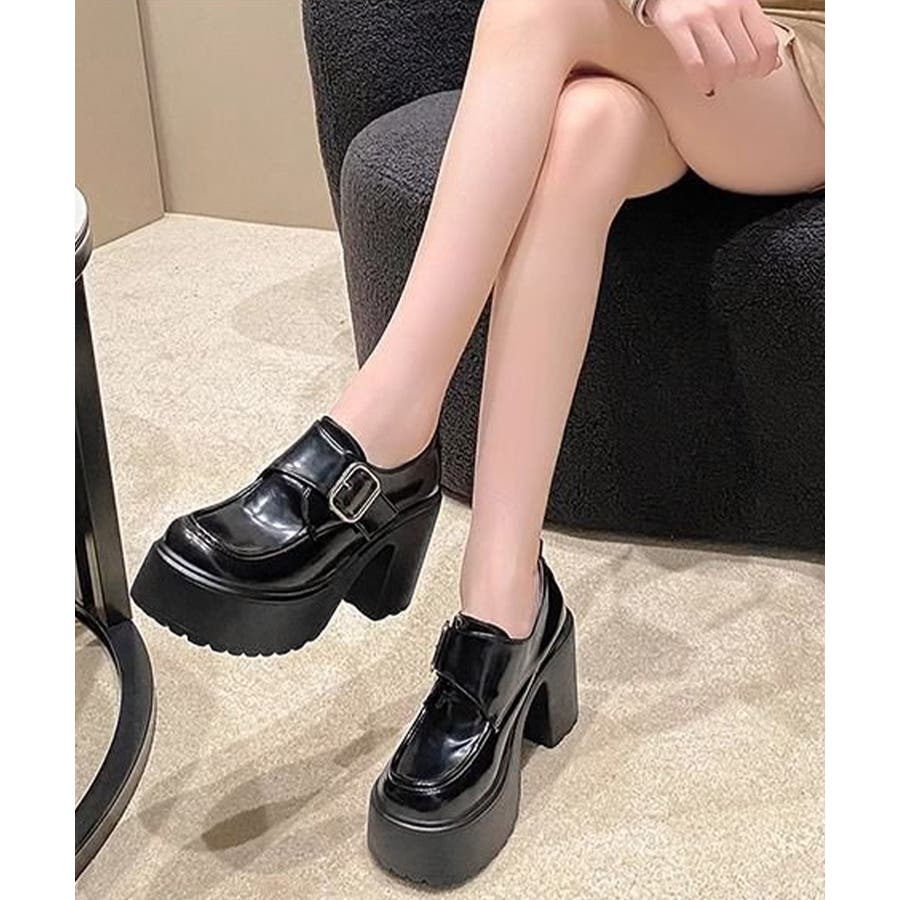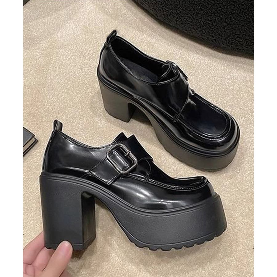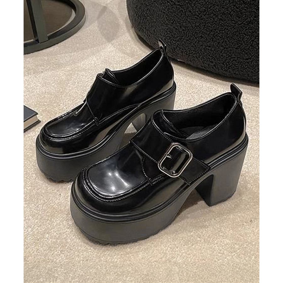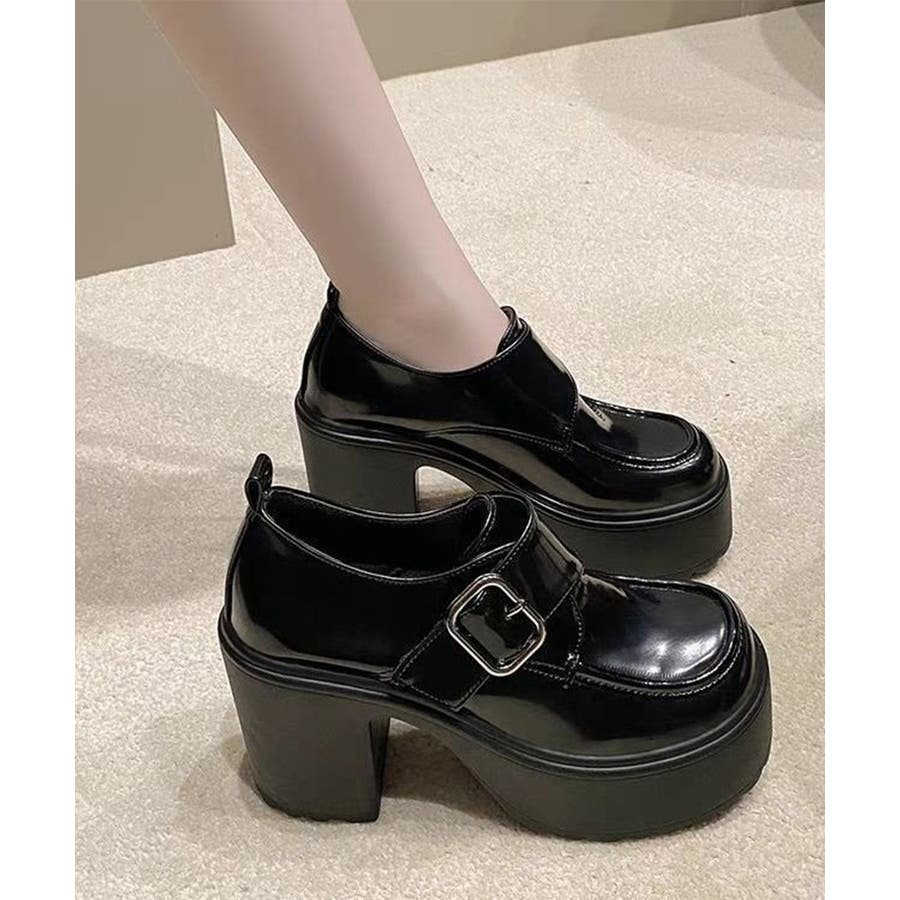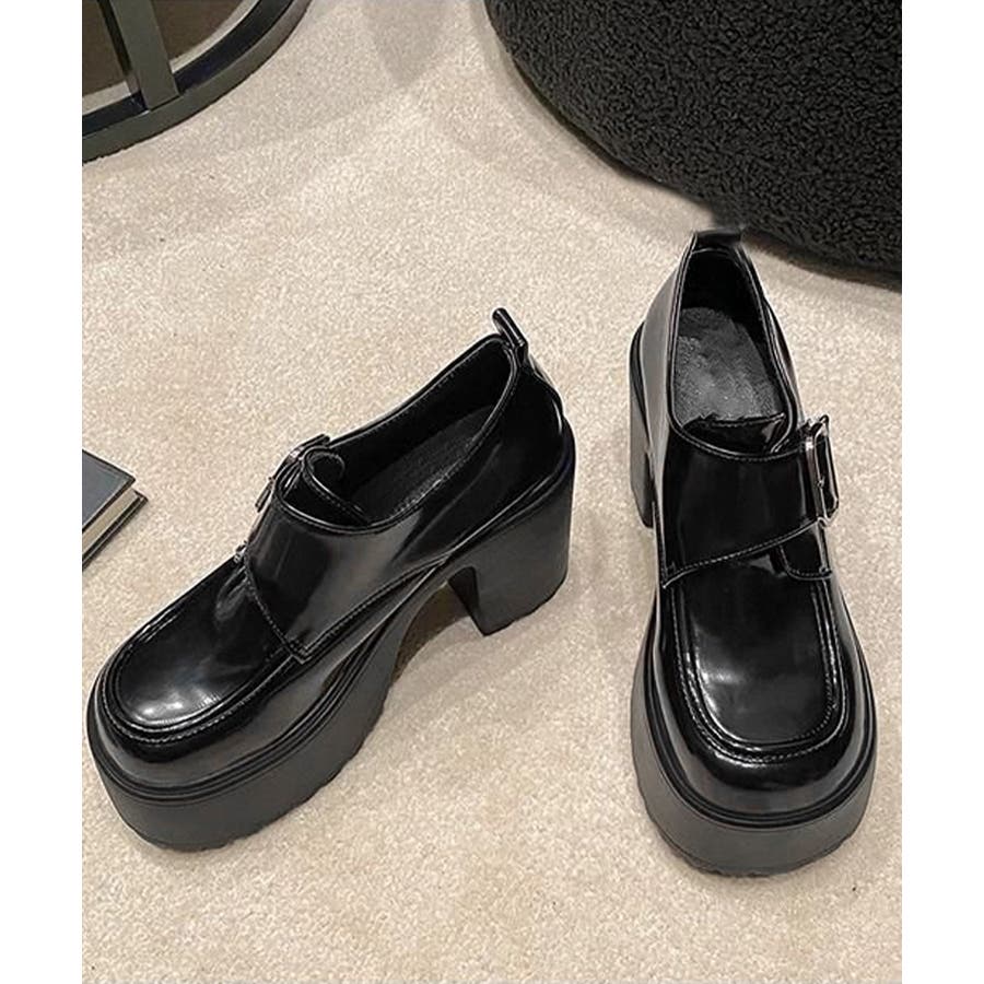 身長盛れ靴 厚底靴 履きやすいシューズ 学院風ローファー黒