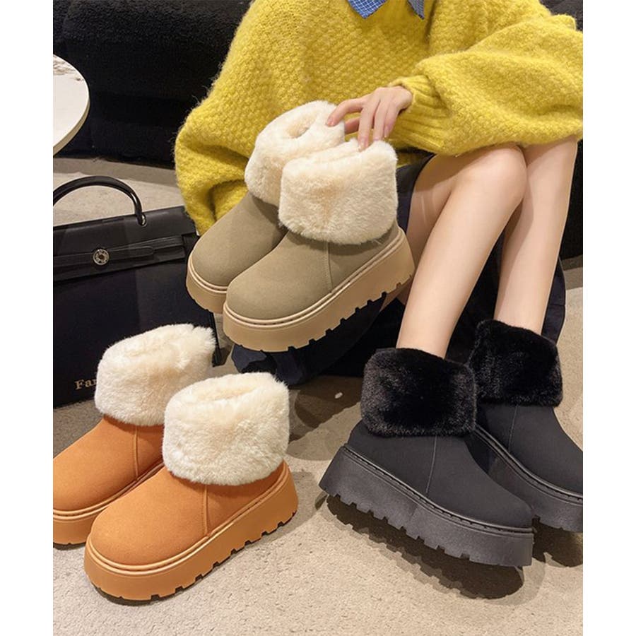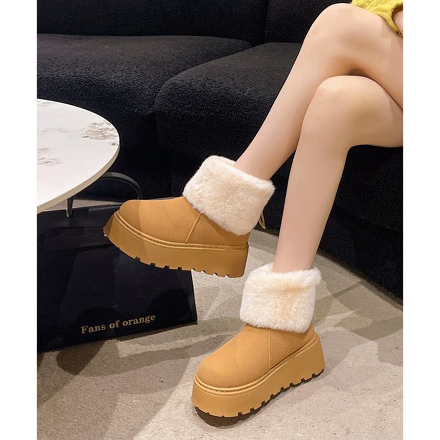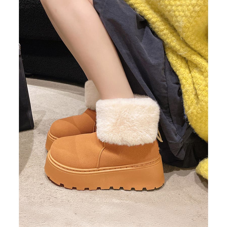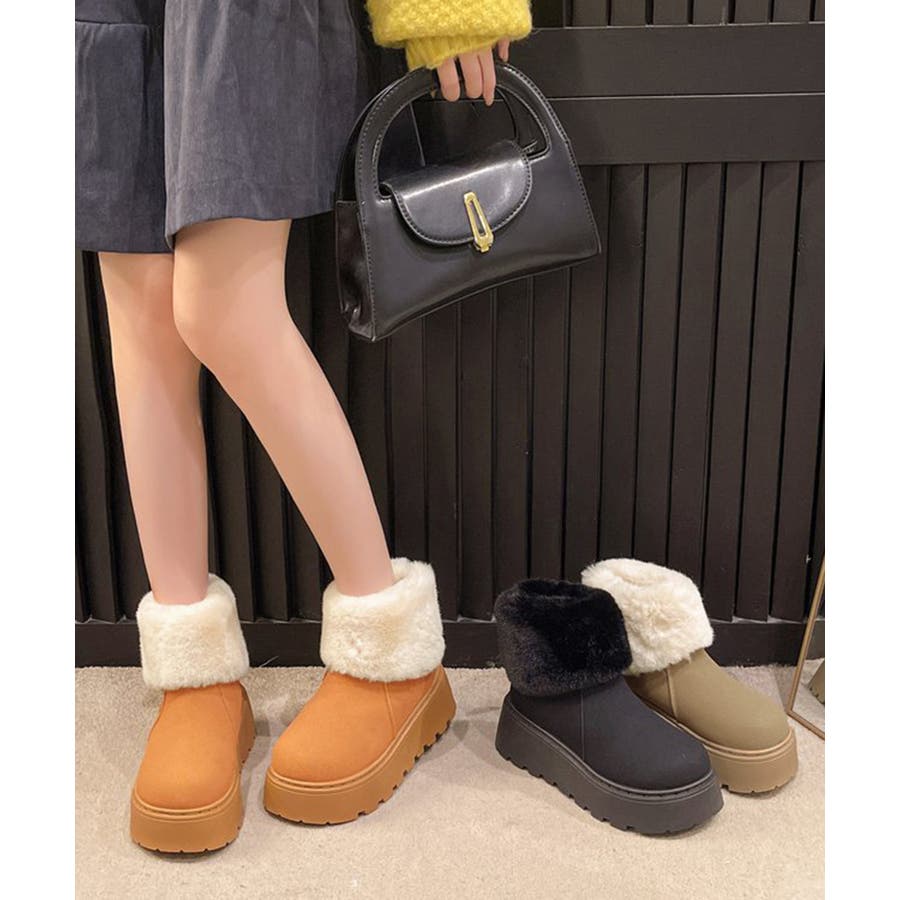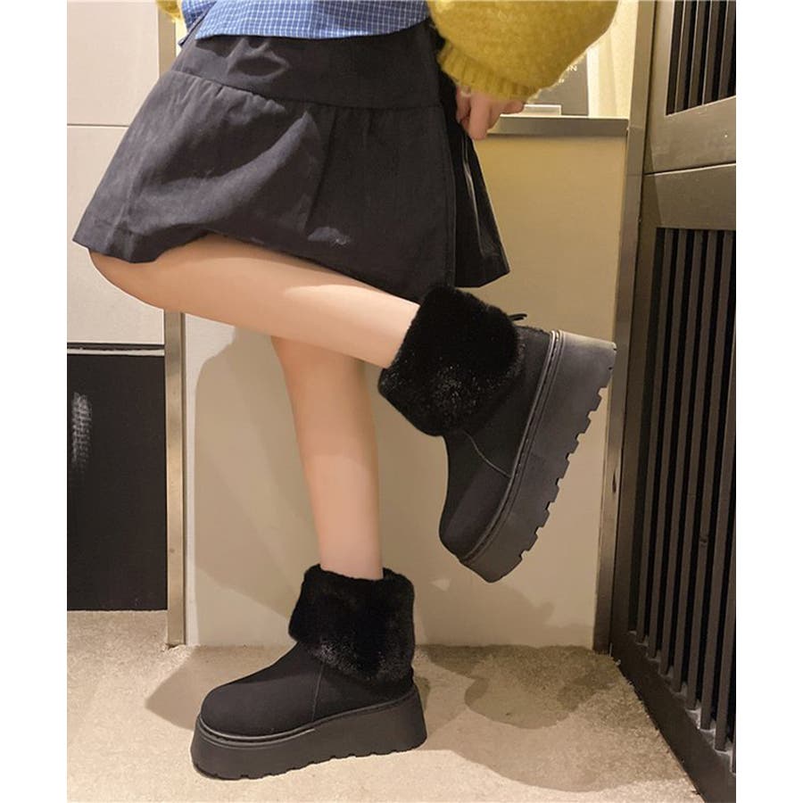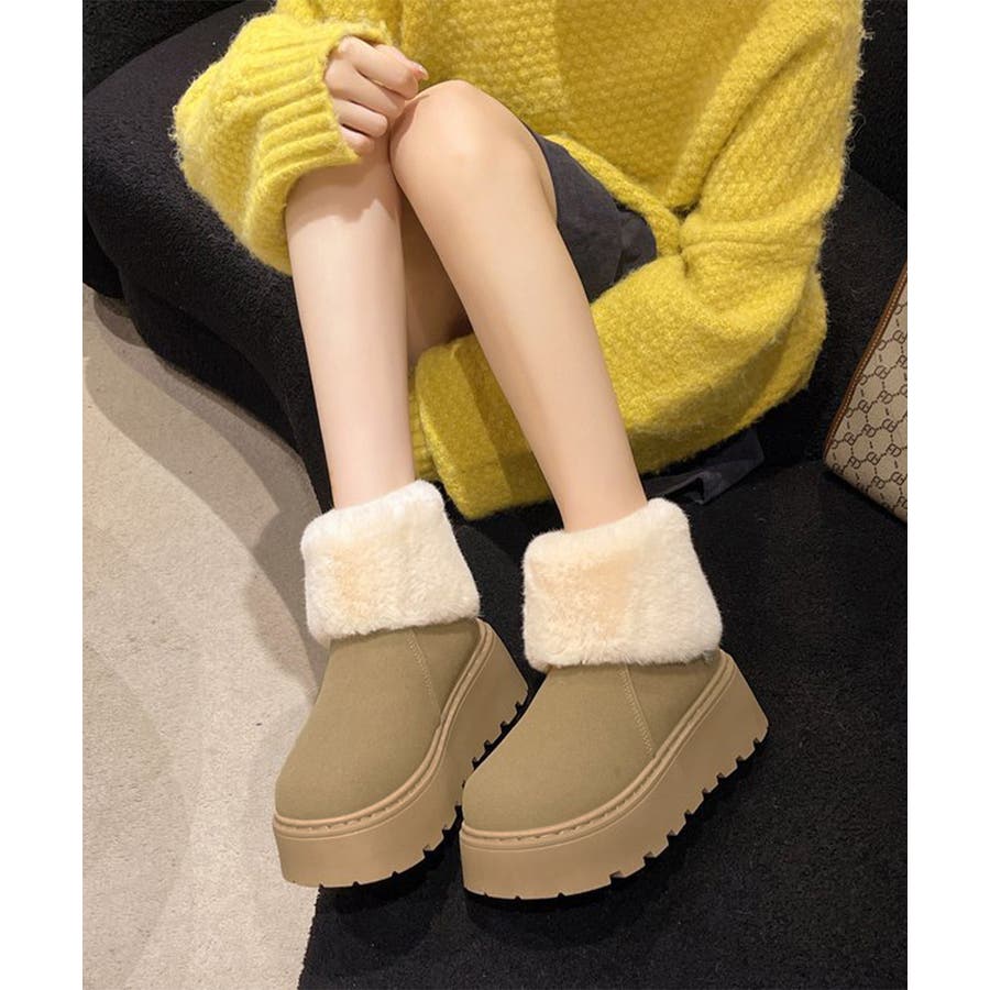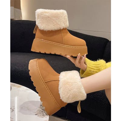 厚底ムートンブーツ 裏起毛ショートブーツ