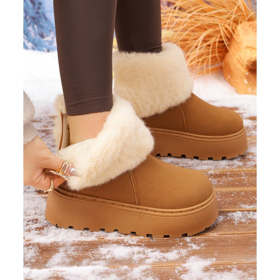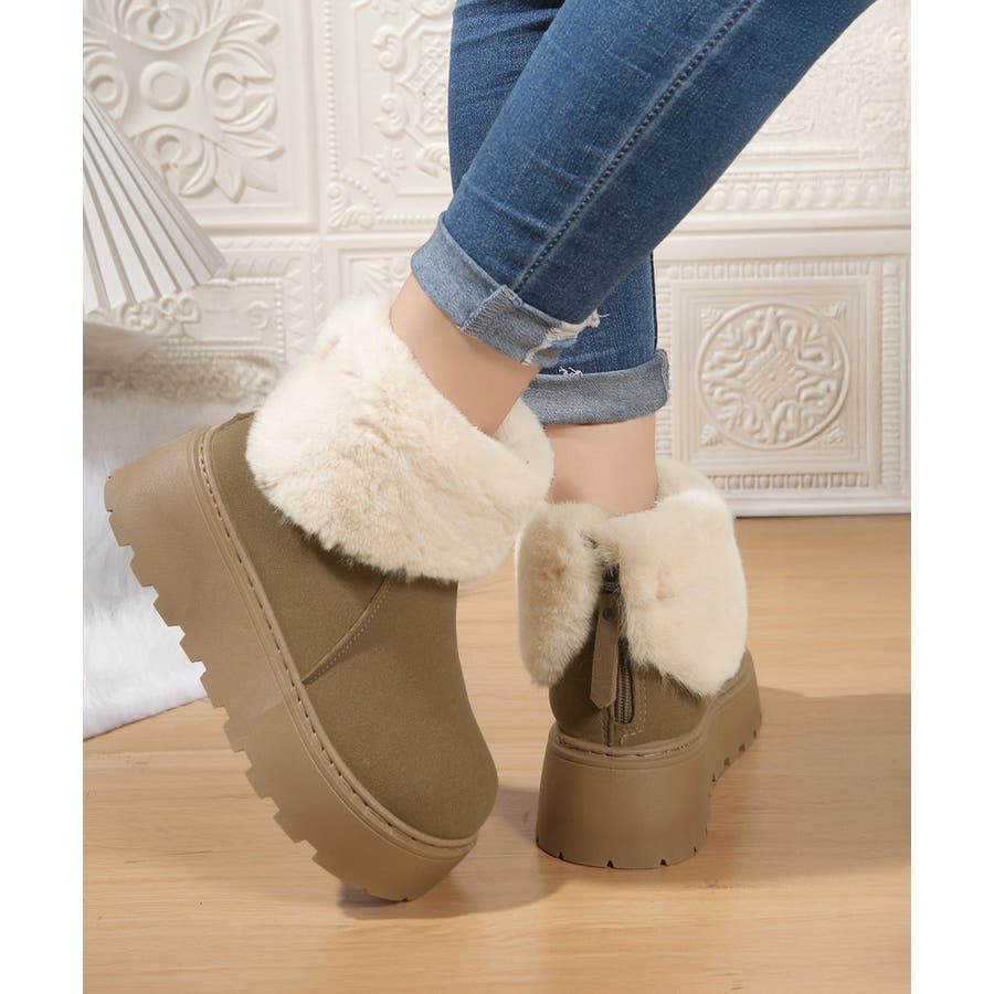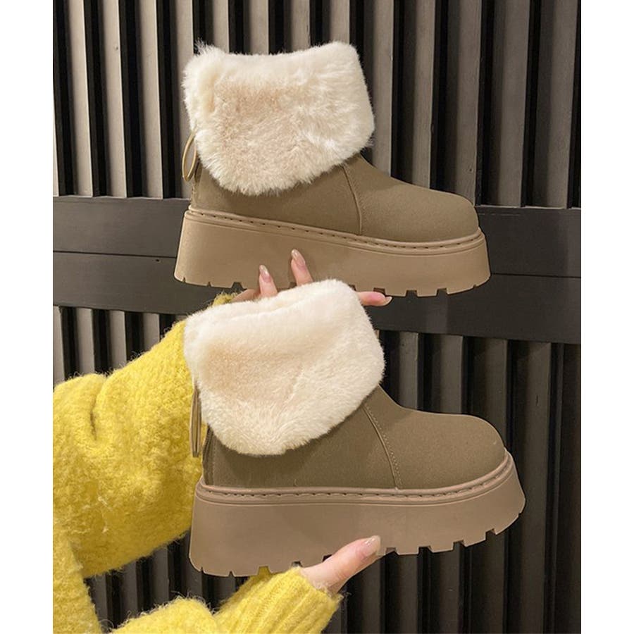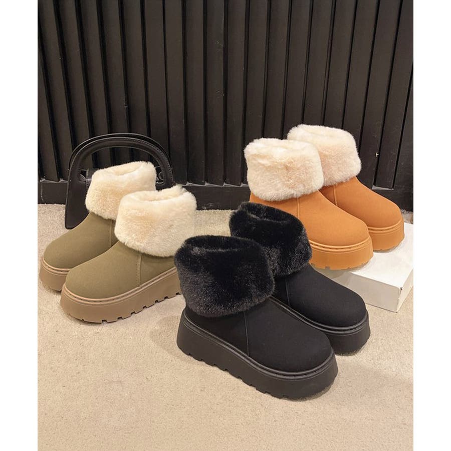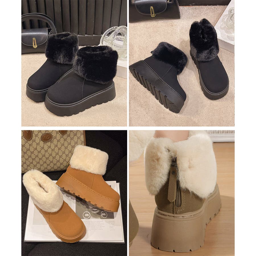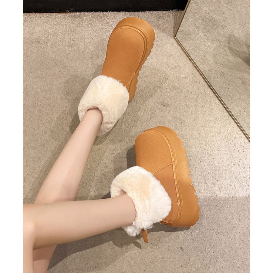 厚底ムートンブーツ 裏起毛ショートブーツ