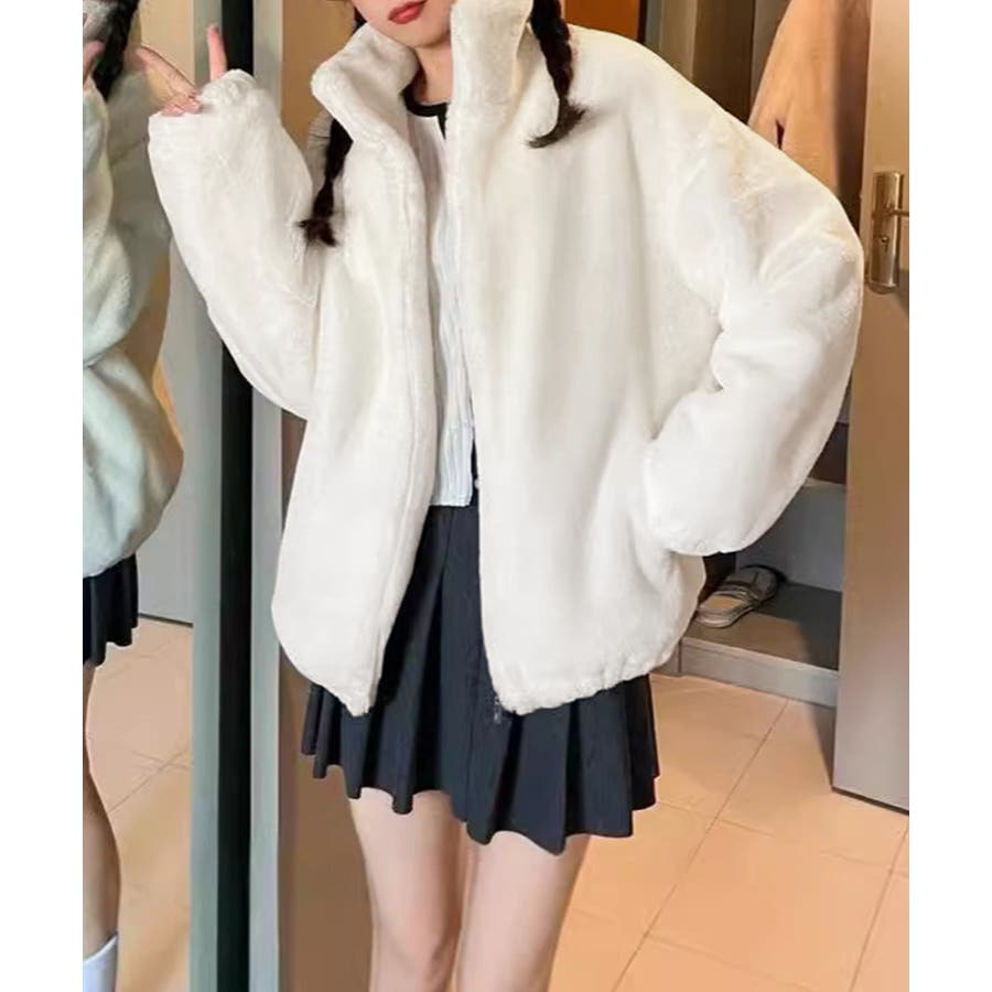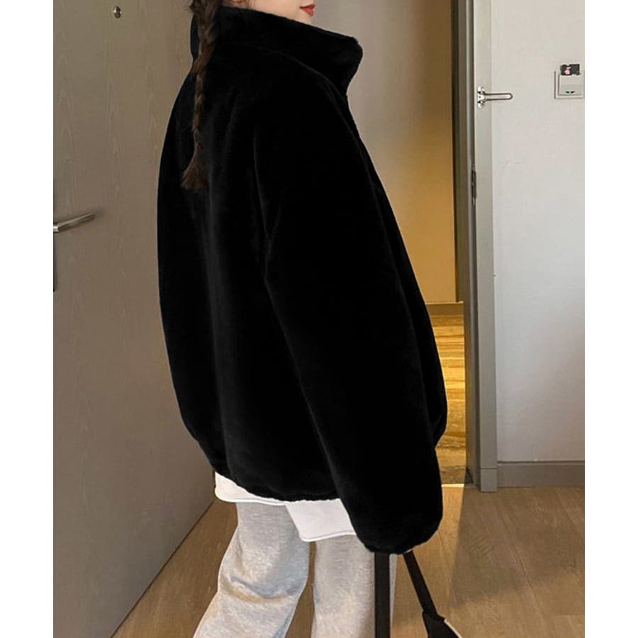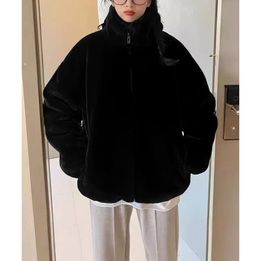 立ち襟ジャケット黒 体型カバーブルゾン 韓国風トップス防寒