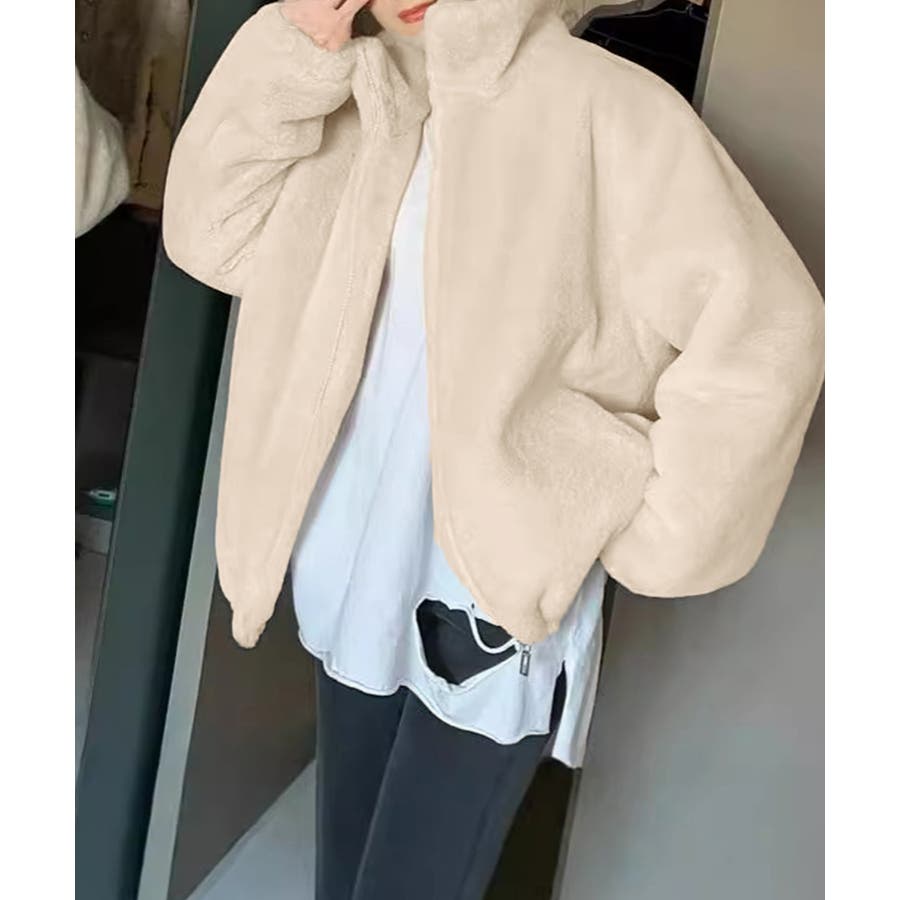 ボア素材が優れた保温力を発揮し、寒さから体を守るジャケット