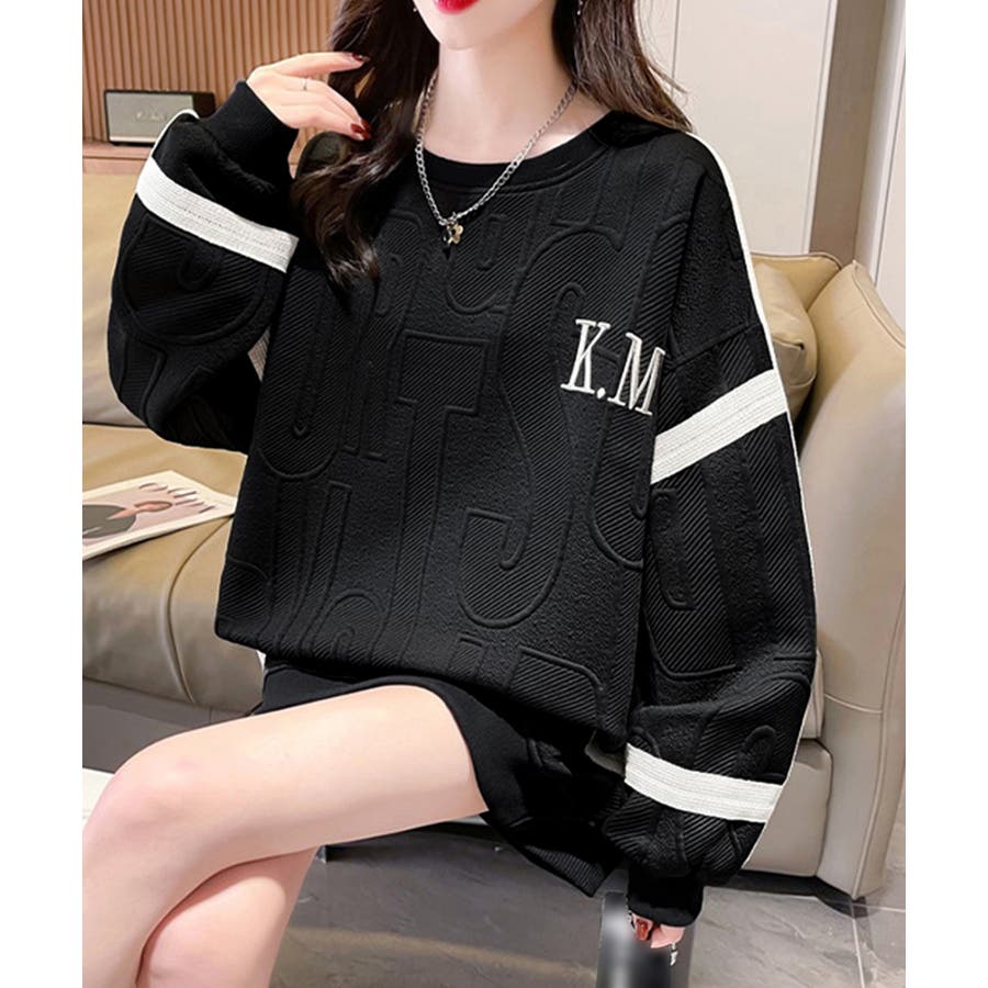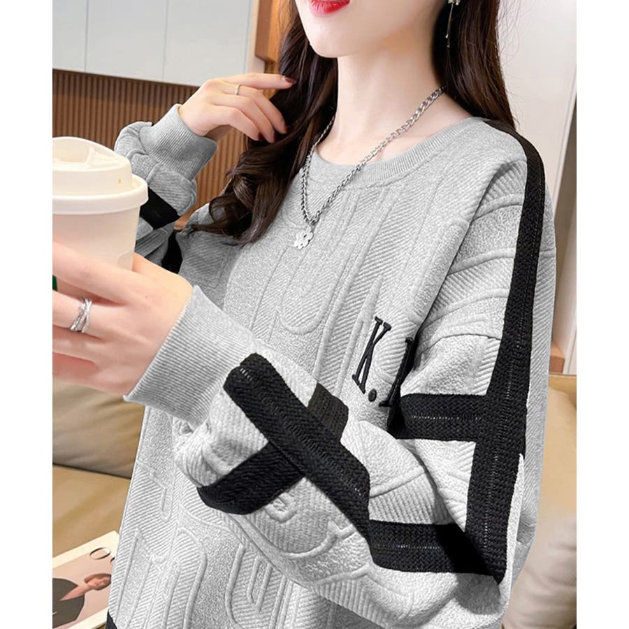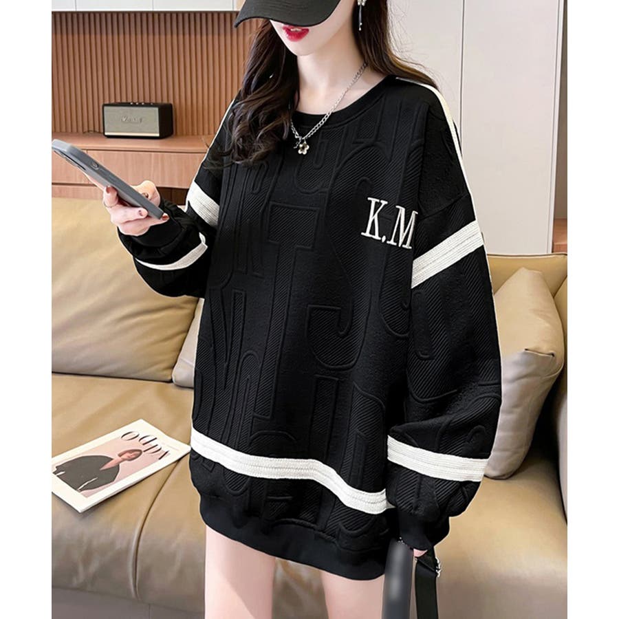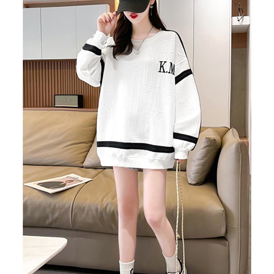 立体ロゴデザインがスタイリッシュな韓国風長袖トレーナー