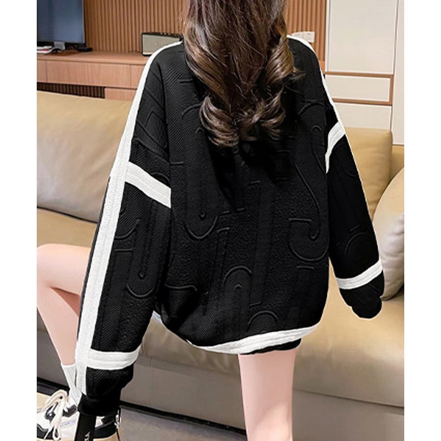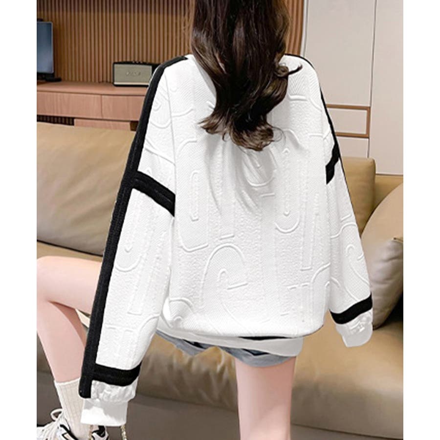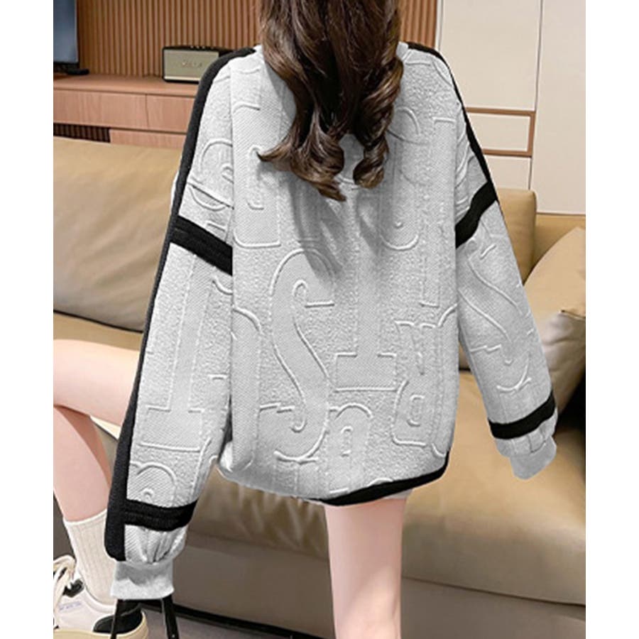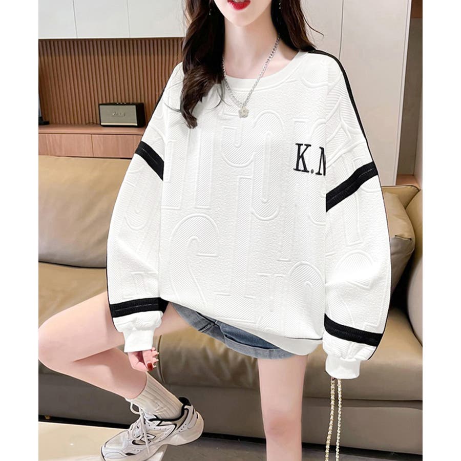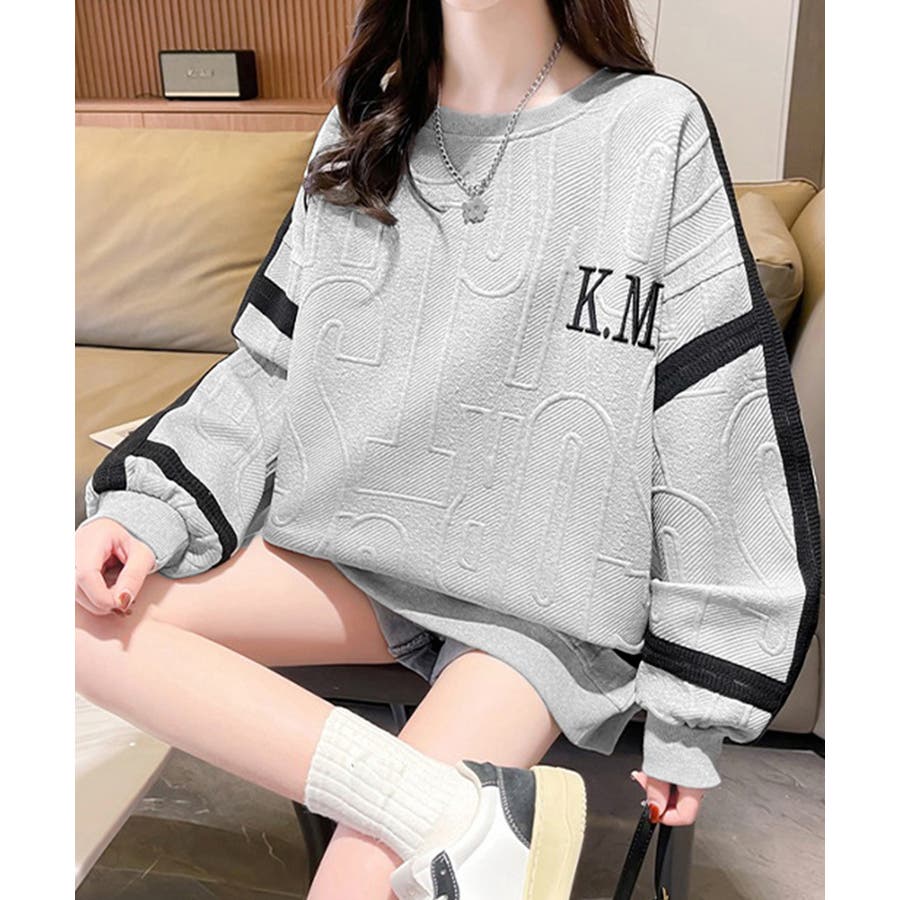 立体ロゴデザインがスタイリッシュな韓国風長袖トレーナー