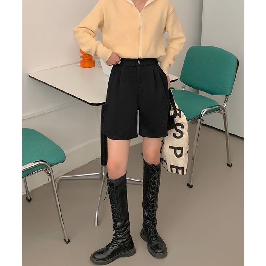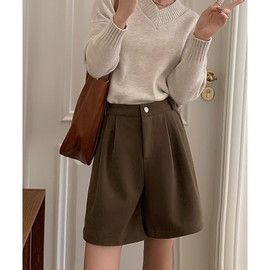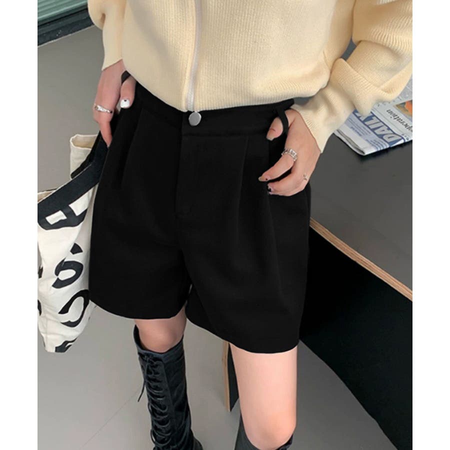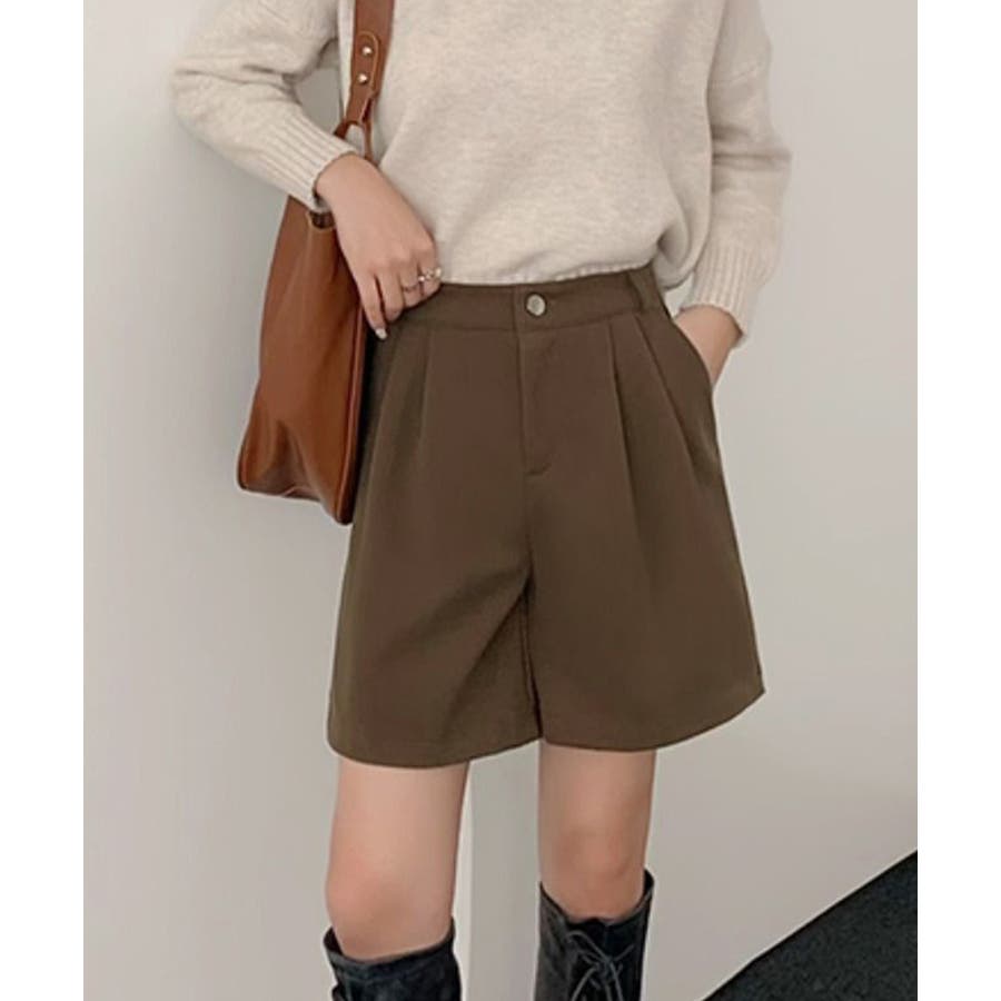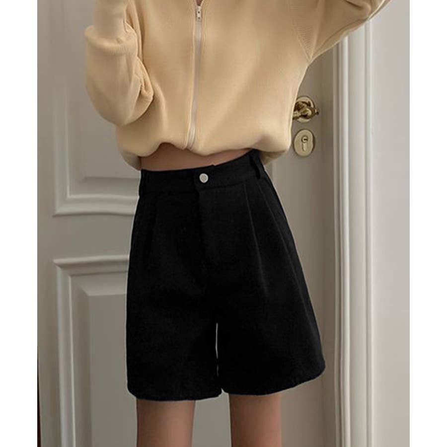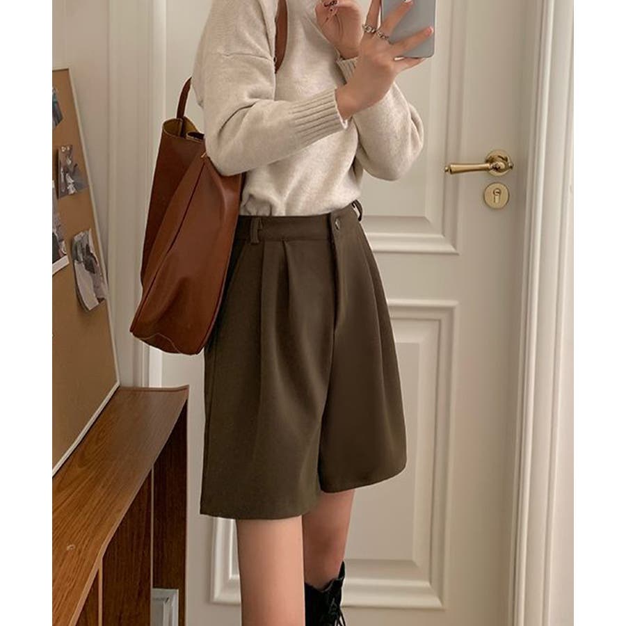 レディース ハイウエストハーフパンツ 無地半ズボン秋冬 着やせ シンプルショーパン ゆったり スラックス短パン 美脚脚長