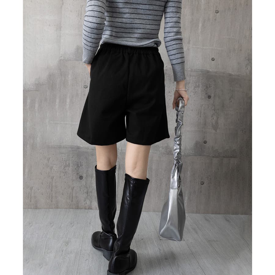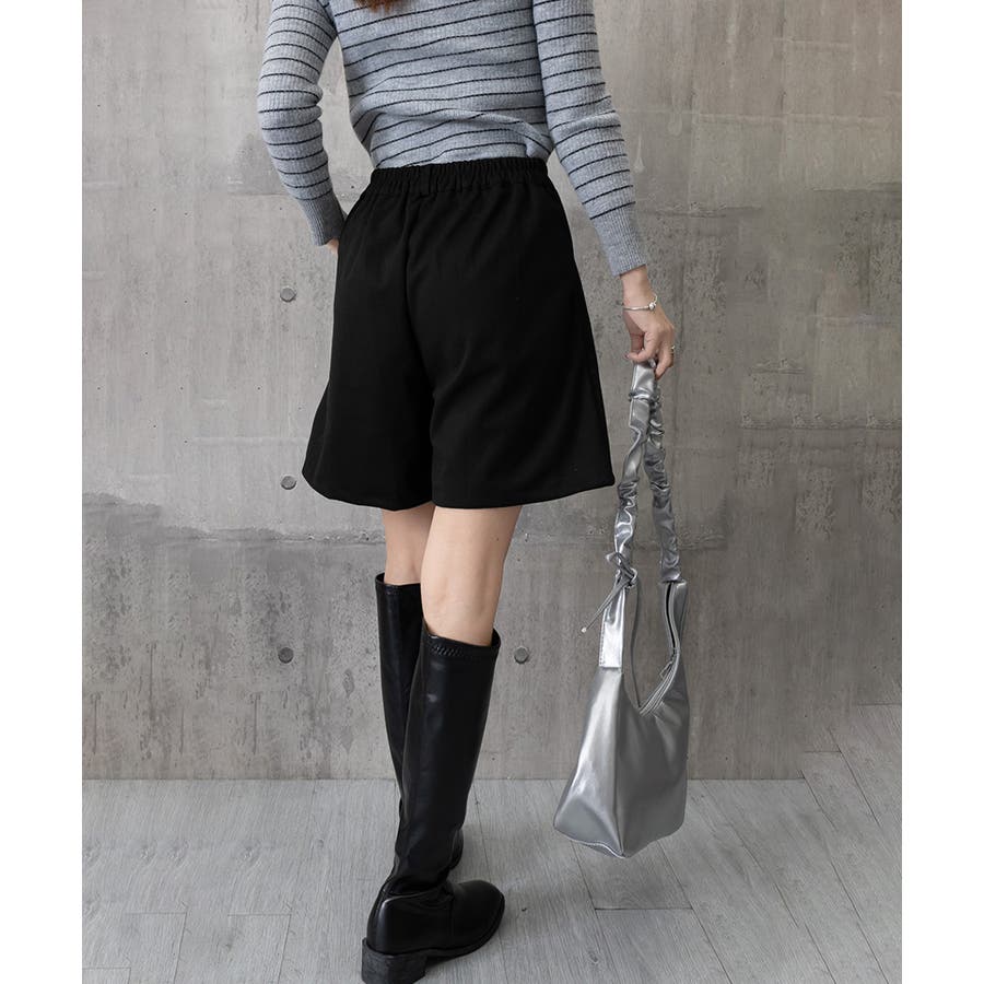 オフィスカジュアル ウールライク短パン 体型カバーボトムス