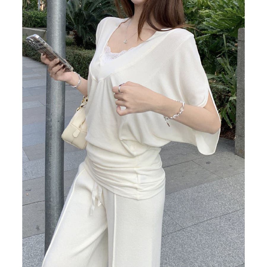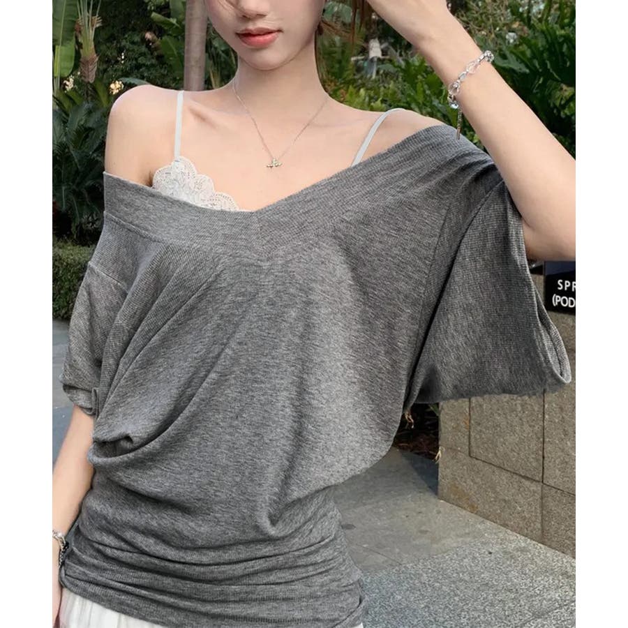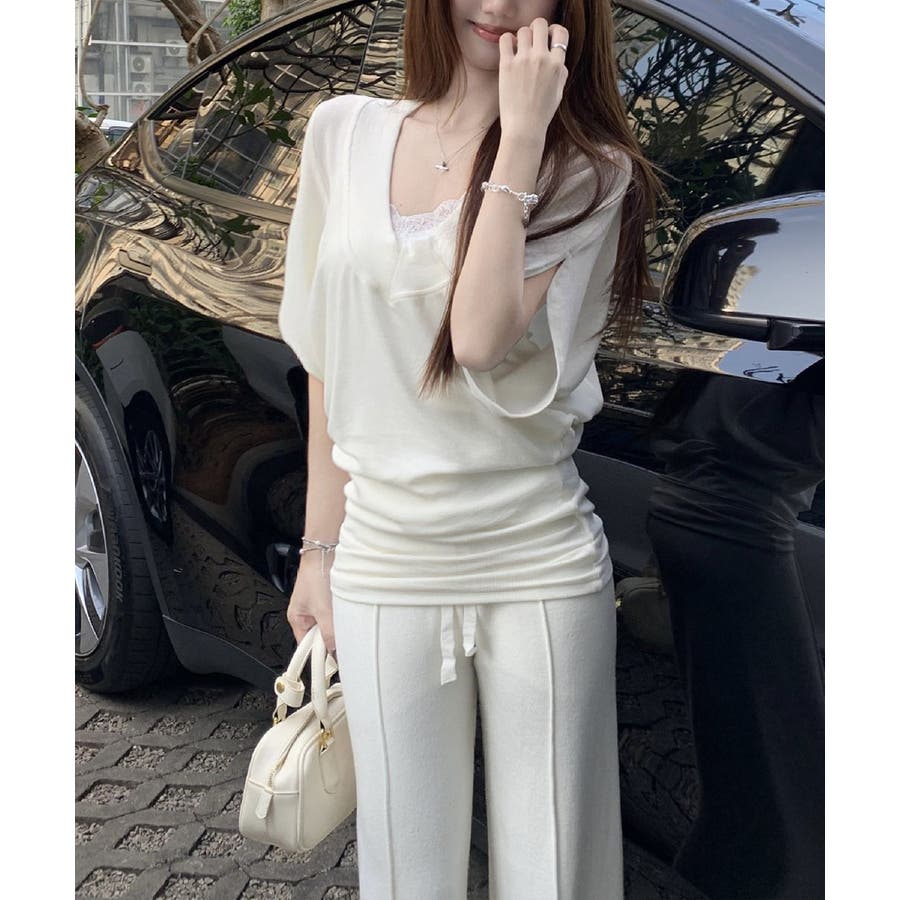 VネックTシャツ レースキャミソール単品