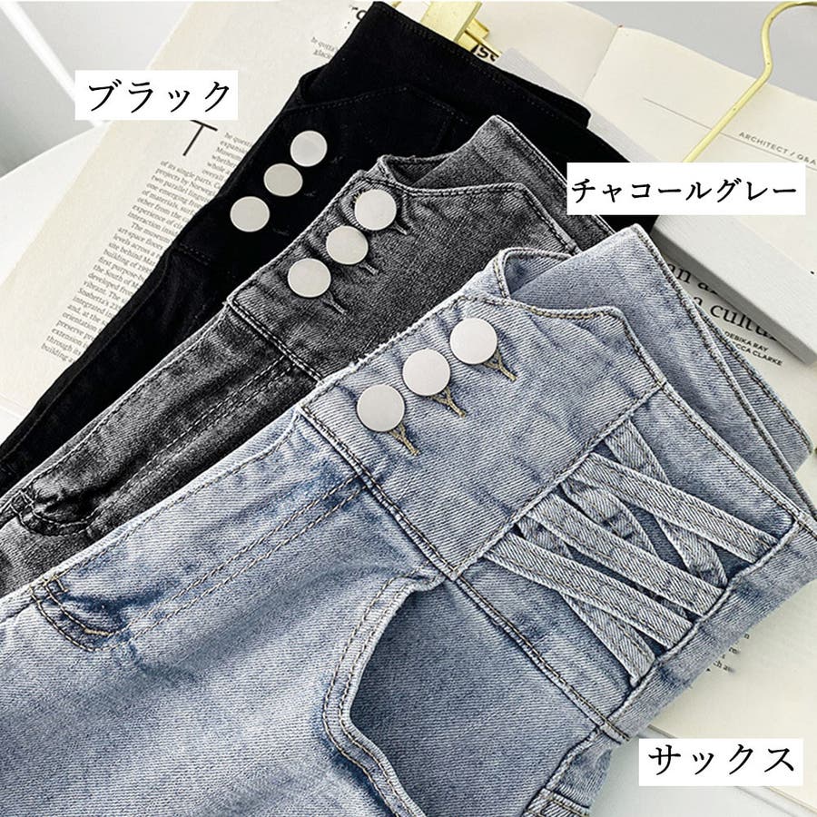 腰位置が高く見えるハイウエストデザインで、スタイルアップも狙える