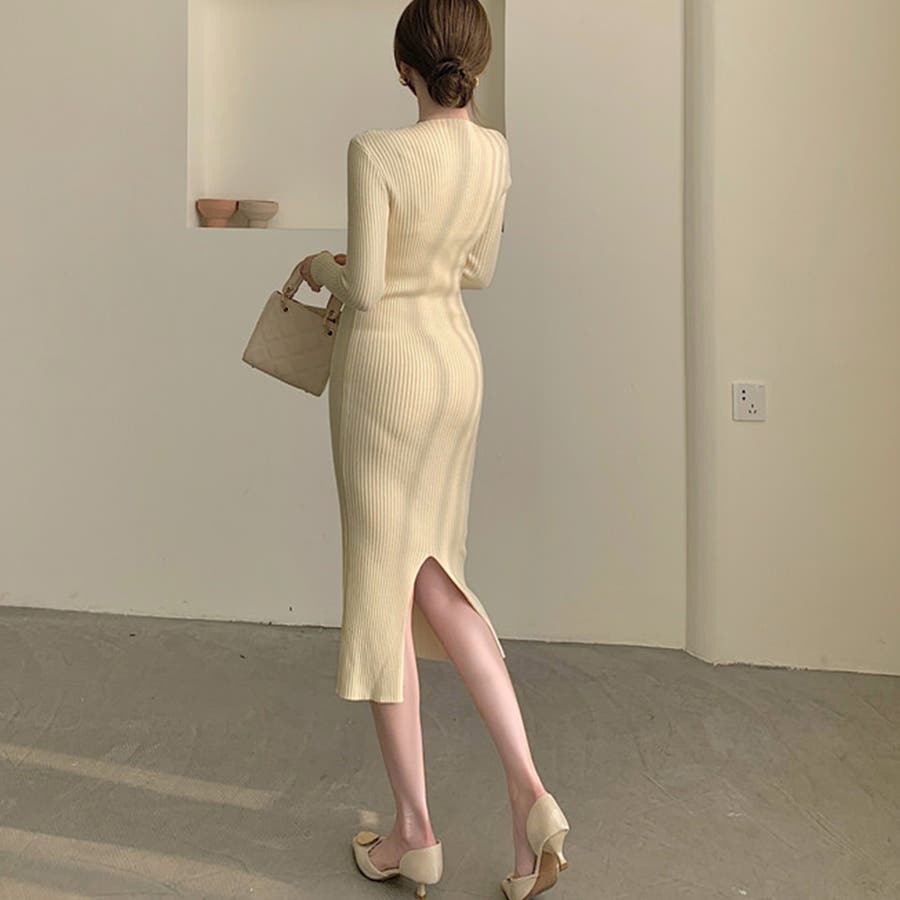 韓国 オルチャン ワンピース ニットワンピ 韓国ファッション 韓国風 韓国系 かわいい 可愛い おしゃれ シンプル レディース 10代 20代 30代 40代 プチプラ コーデ 大人 トレンド 売れ筋 モテ モテ女子 大人女子 ニット セーター リブニット 秋 秋服 秋冬 秋ファッションオフィスカジュアル 量産型 ホーム 中学生 高校生