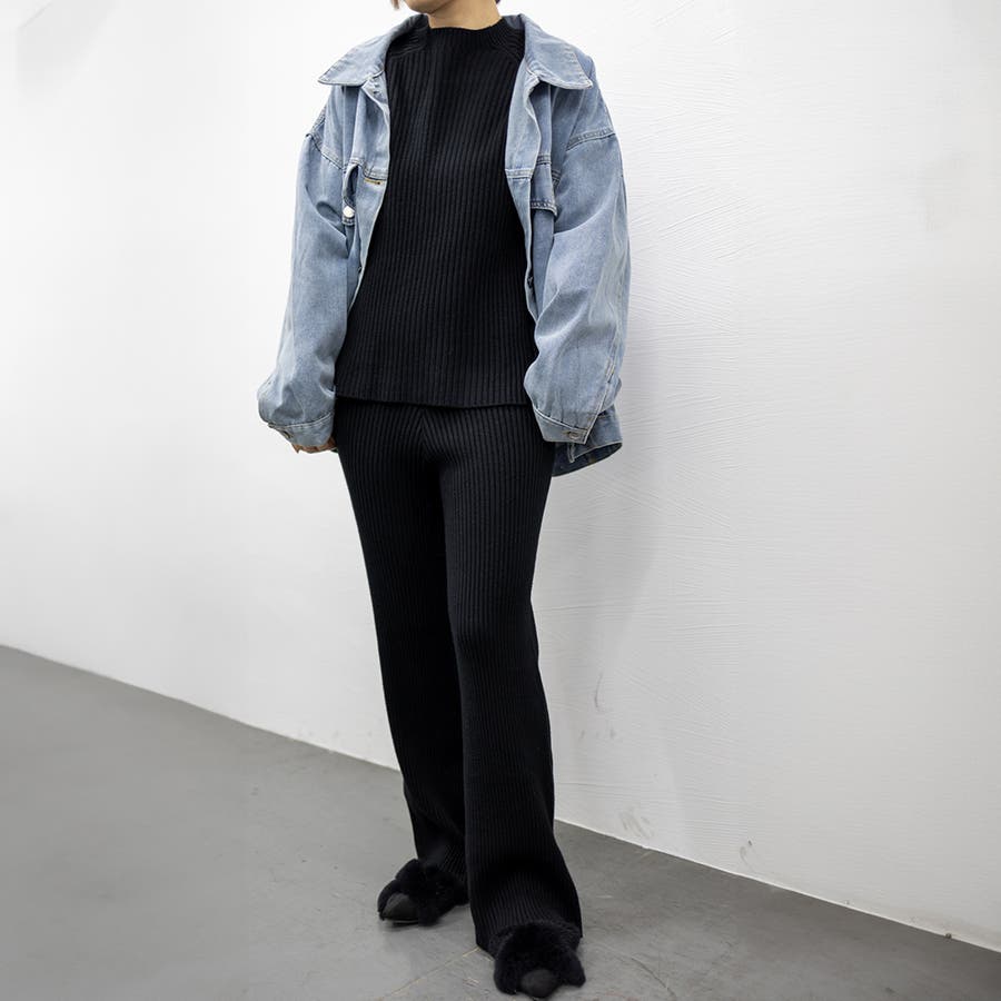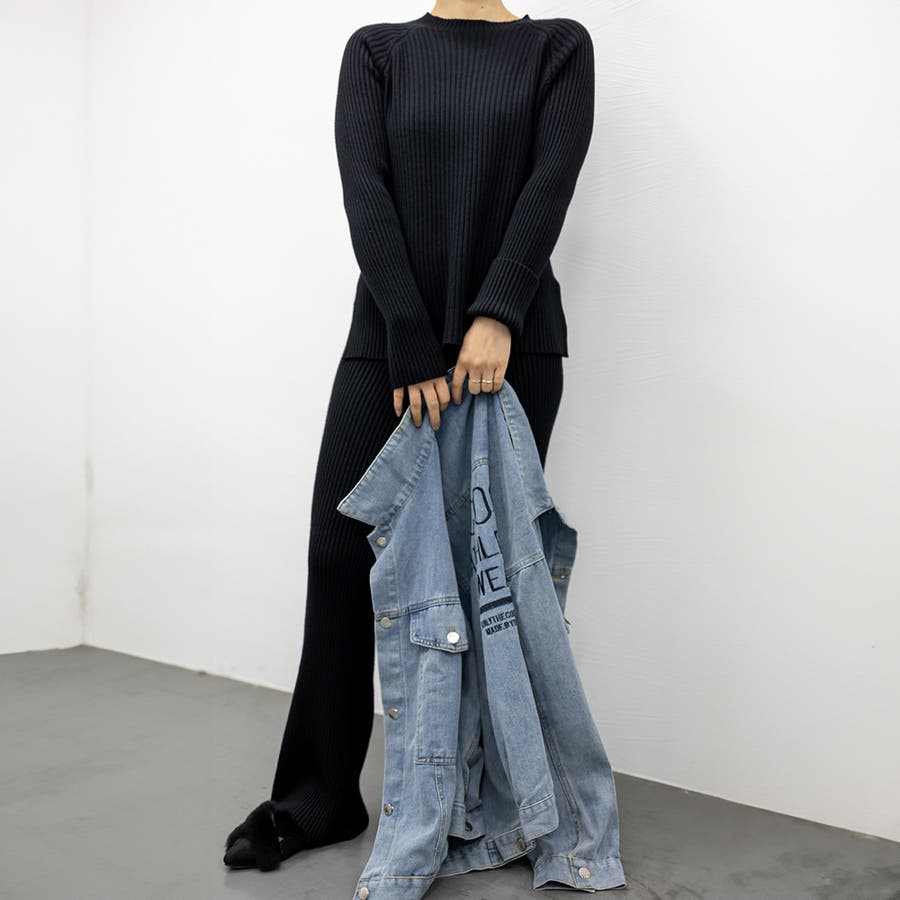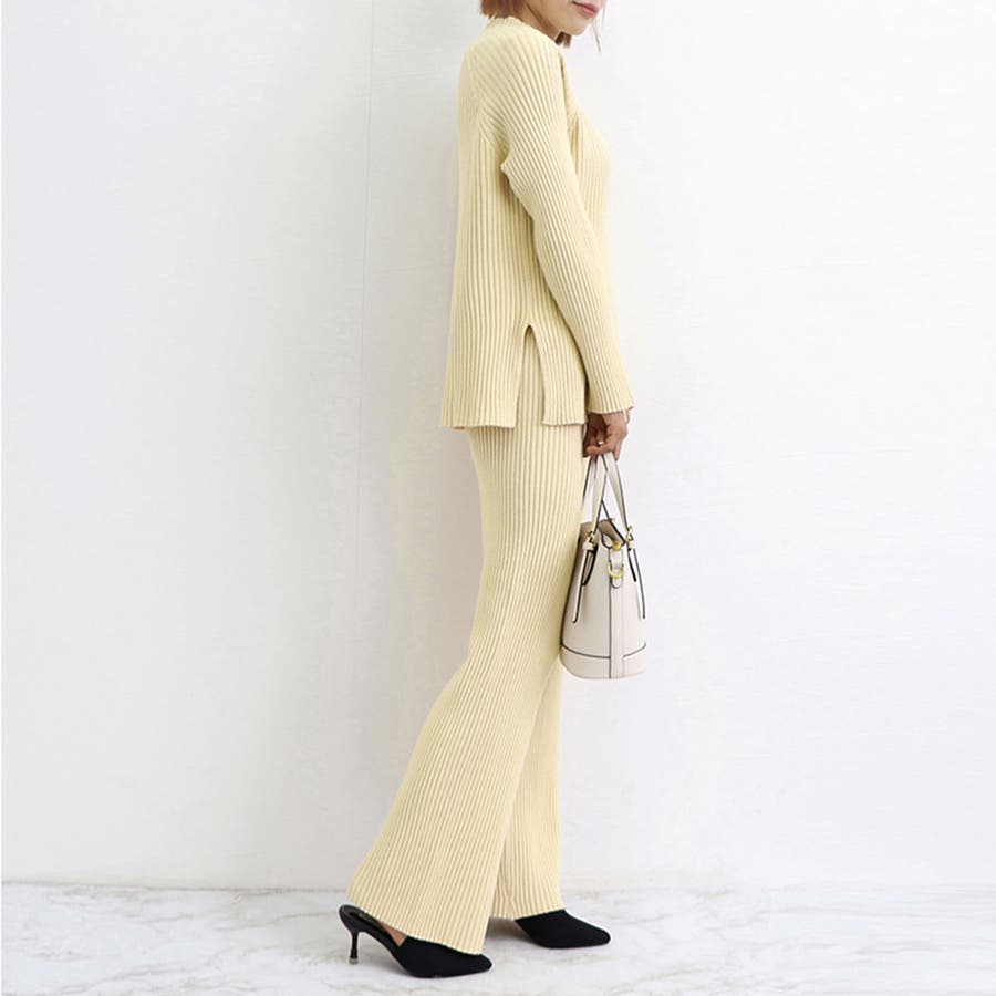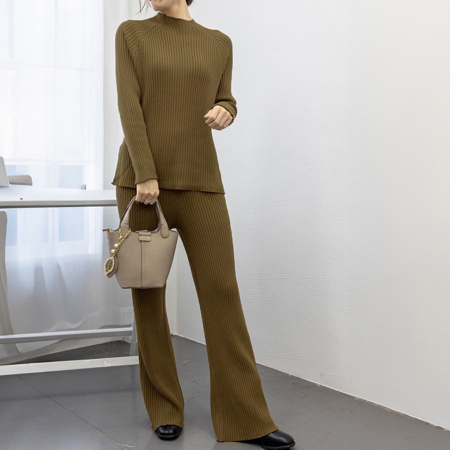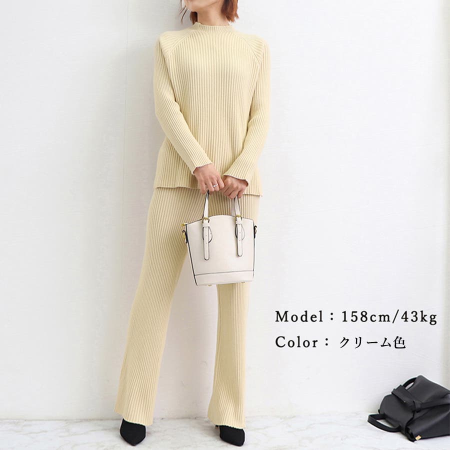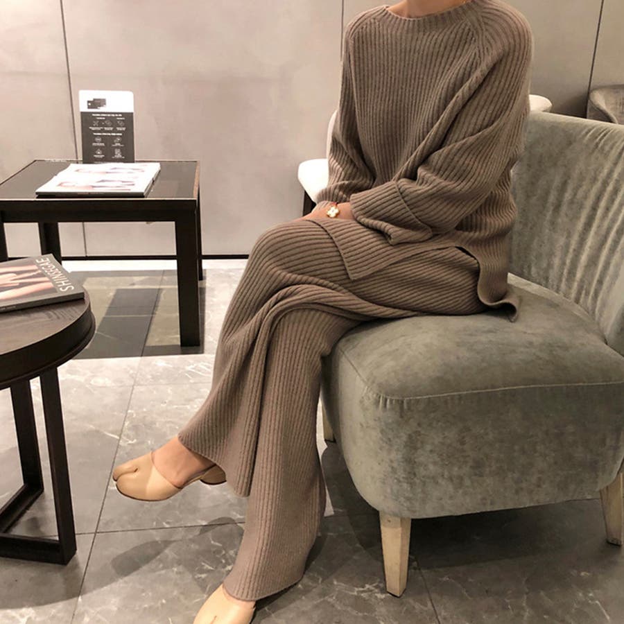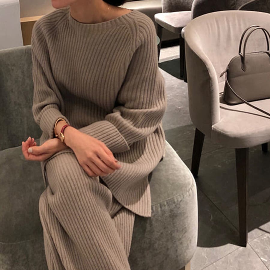 柔らかいもっちりしたニット素材感で着心地も見た目も大満足のオトナ女子上下2点セット