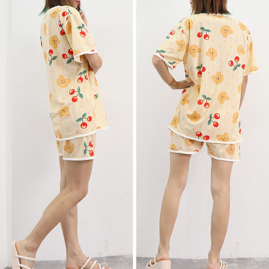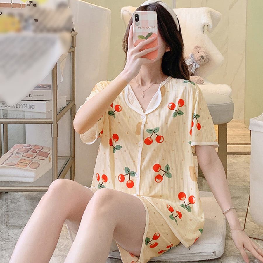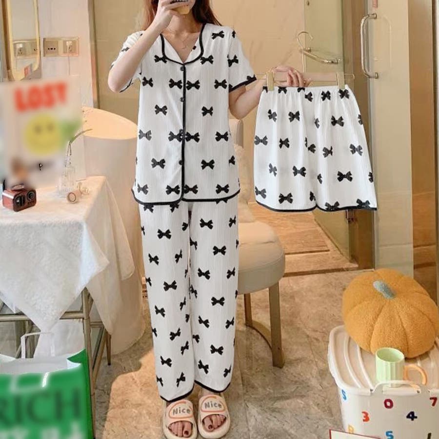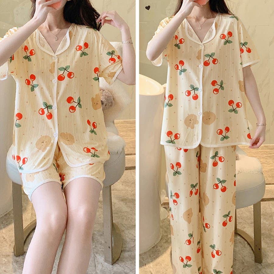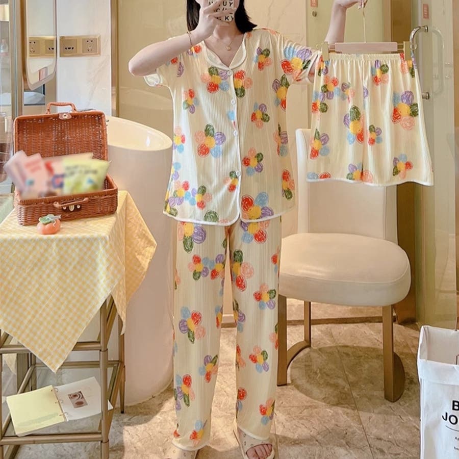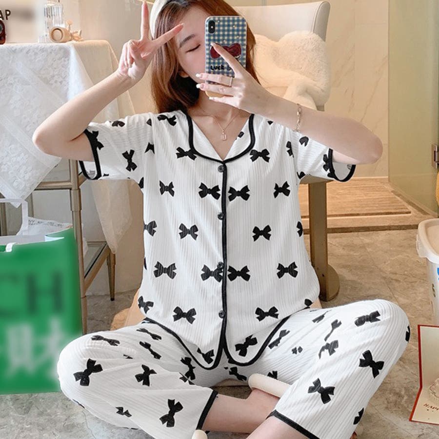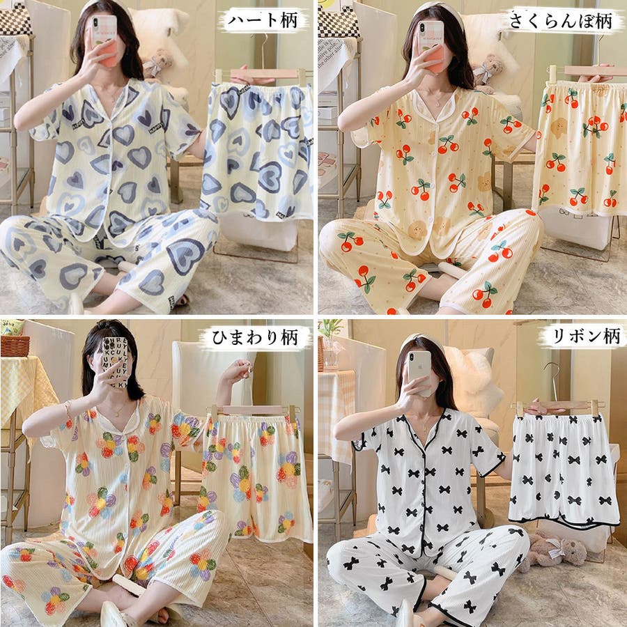 半袖 柄ルームウェア 上下セット 韓国 ショートパンツ 涼しい ロングパンツ 部屋着 セットアップ 入院 パジャマ前開き