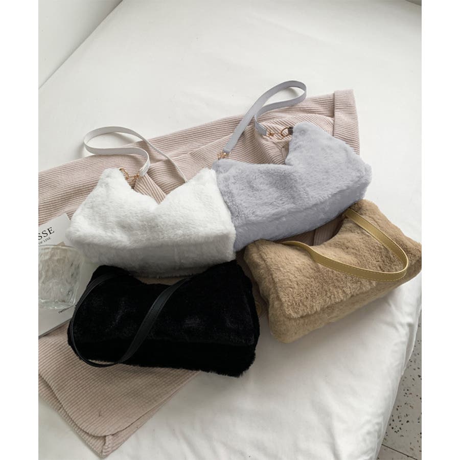 ふわふわ柔らかい手触りが気持ちいい、上質なエコファーにフェイクレザーショルダーを加えた異素材mix仕様の新作肩掛けバッグ