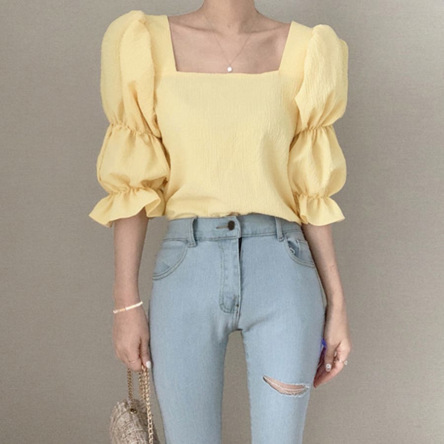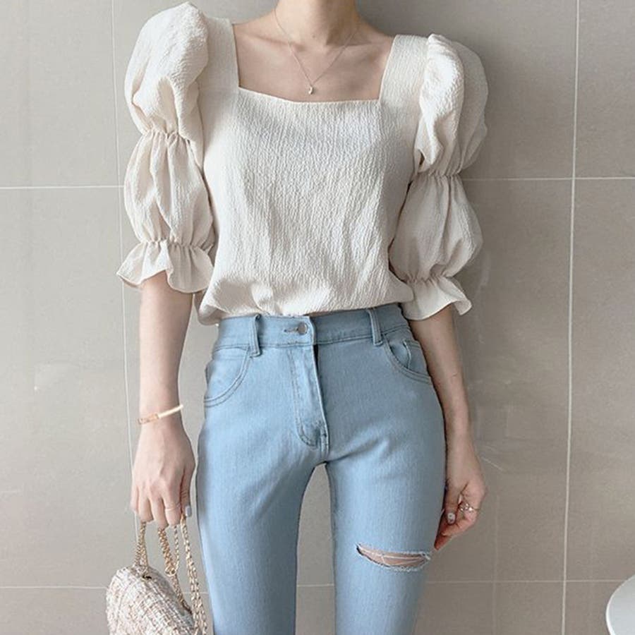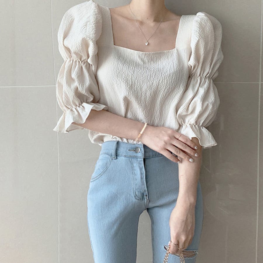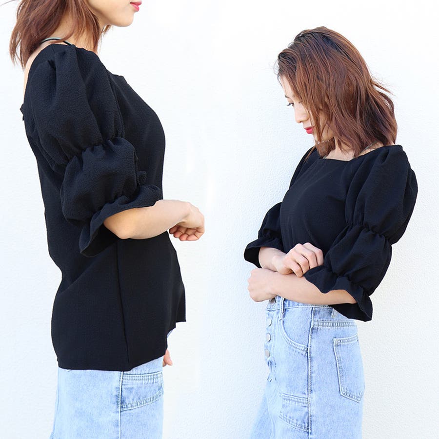 20代30代お洒落 ブラウス 鎖骨見せ 着やせブラウス細見