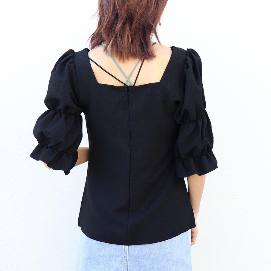 デザインに惹かれて購入。デコルテも綺麗に見えて二の腕もほっそりしたようでたくさん着回しできそうです。