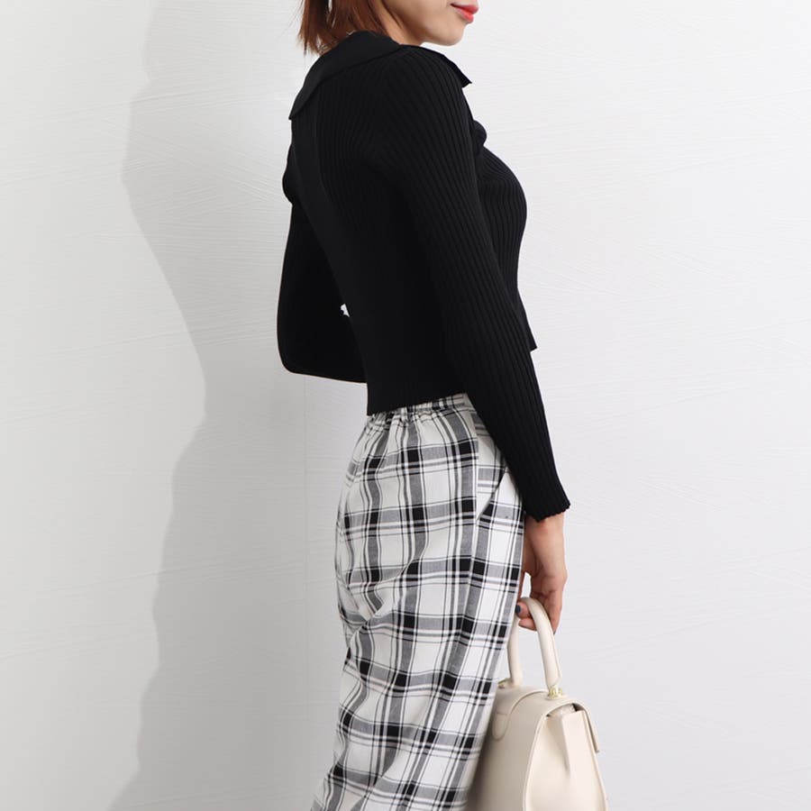 伸縮性のあるリブニット素材は身体に優しくフィット。