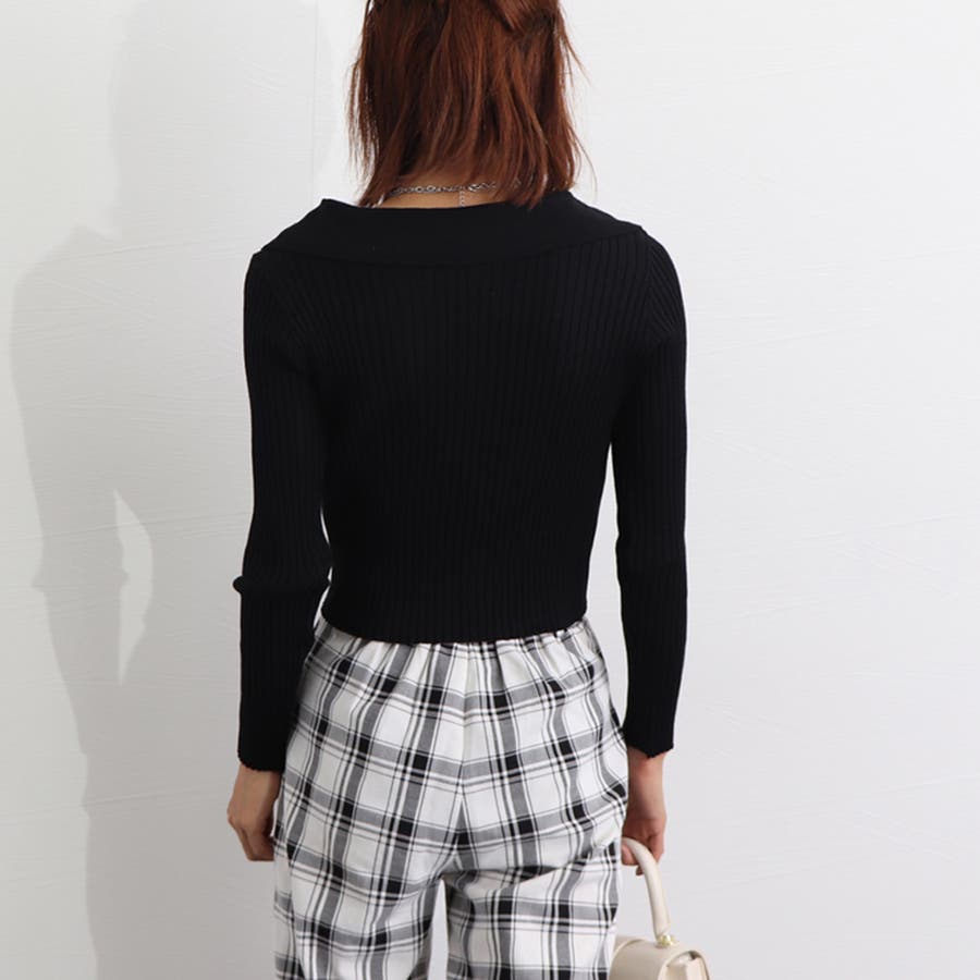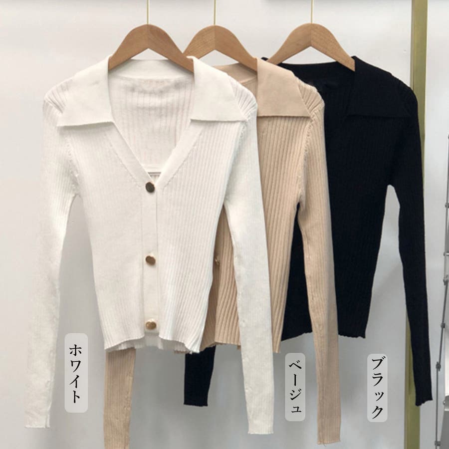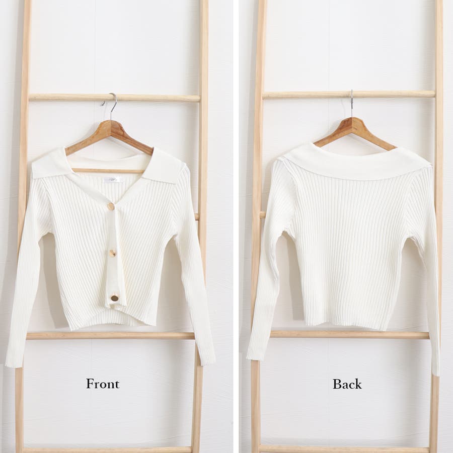 折り襟リブニット 風 レディース