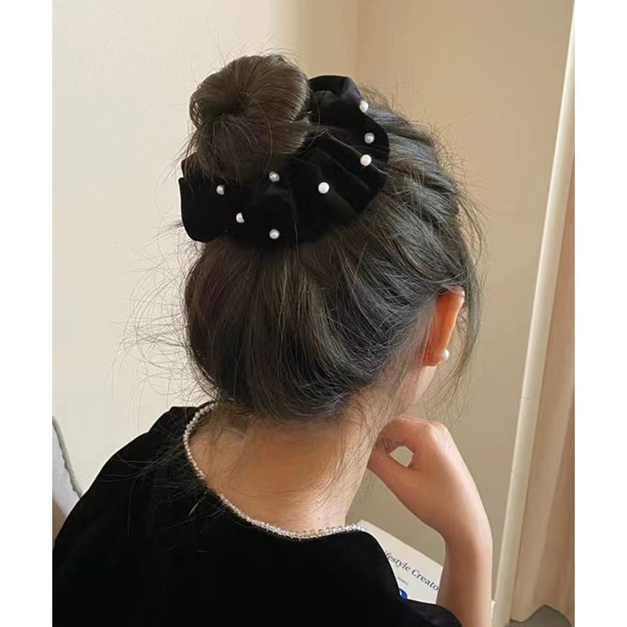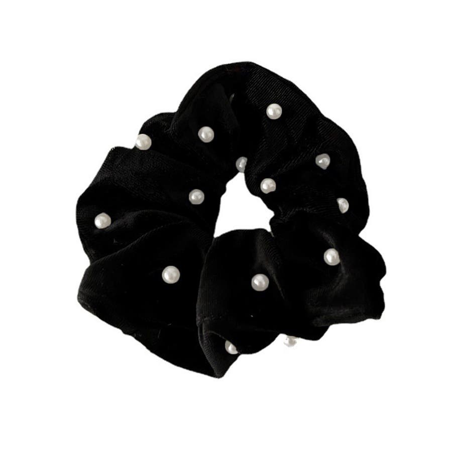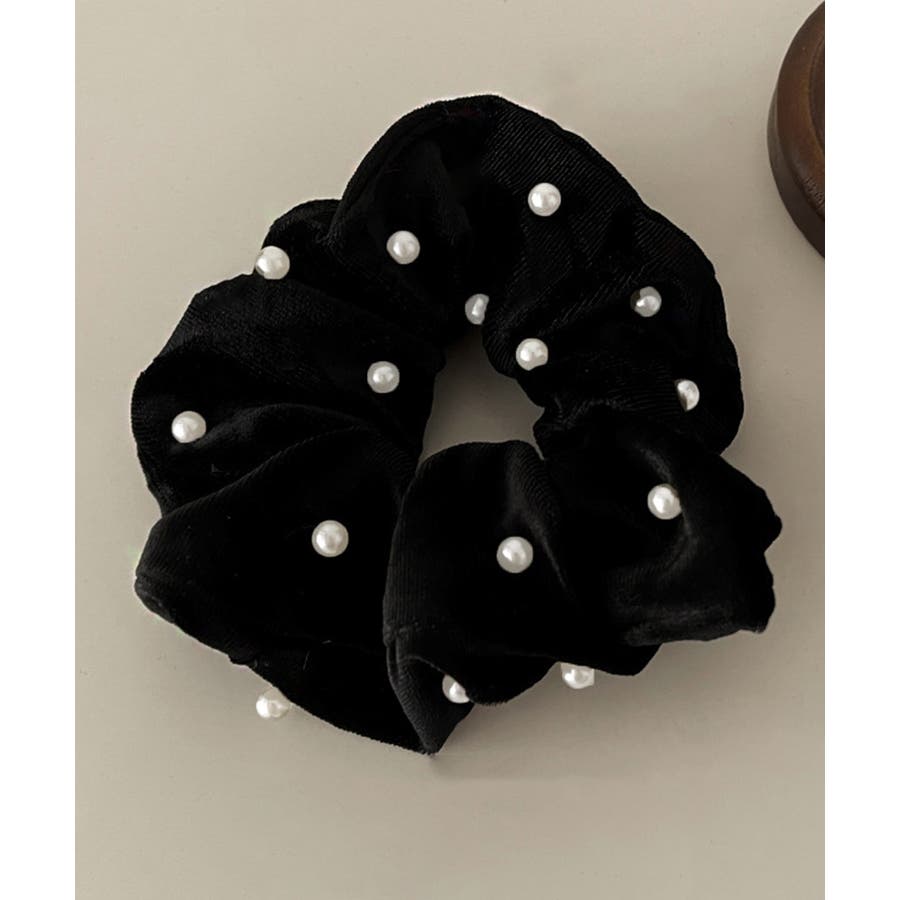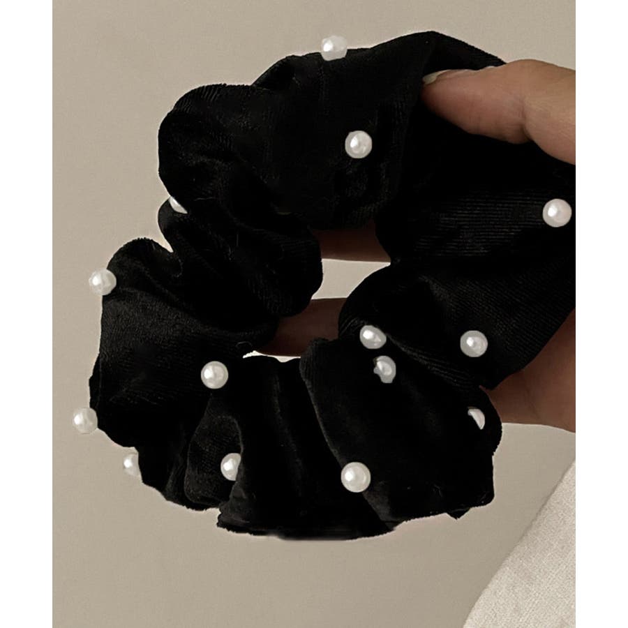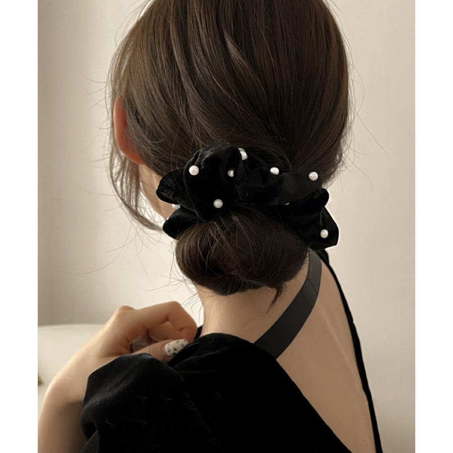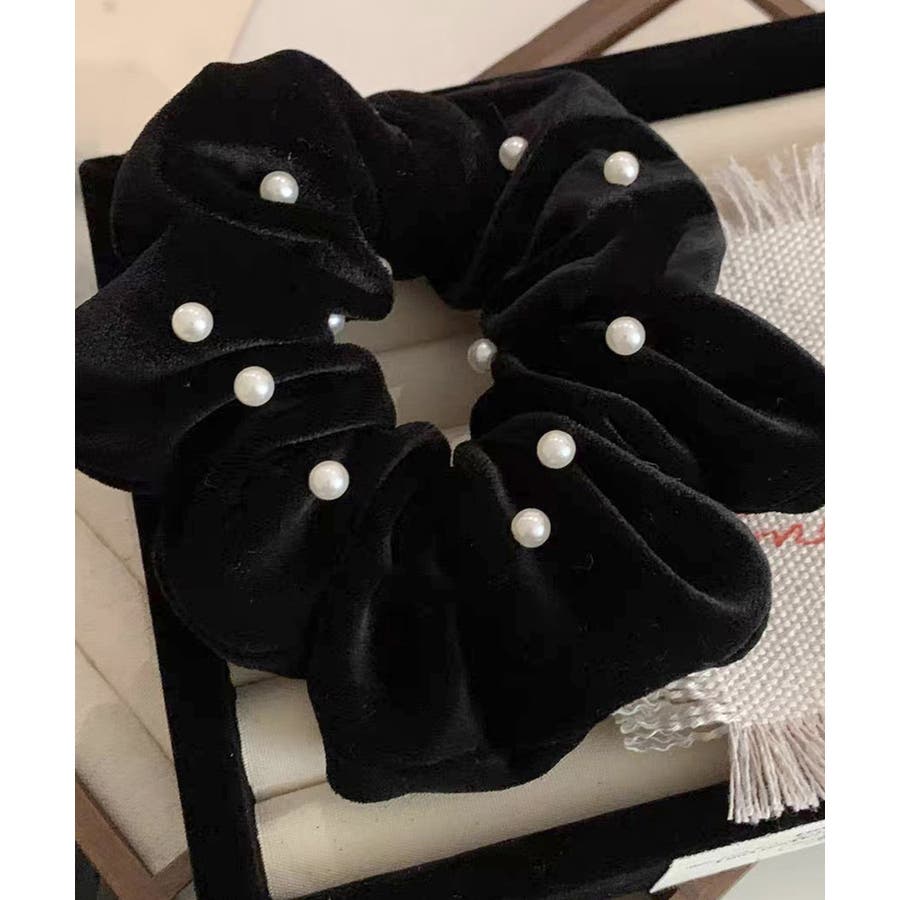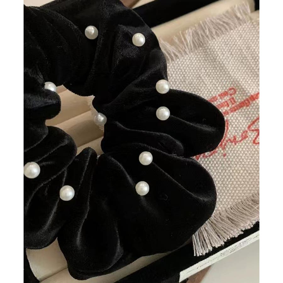 ベルベット生地にフェイクパールが飾った大人上品なシュシュ