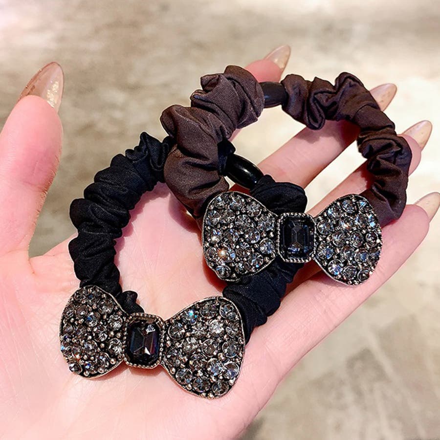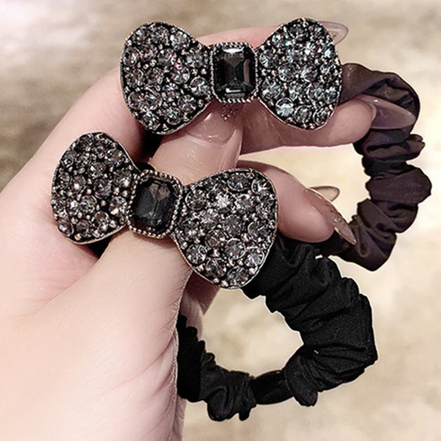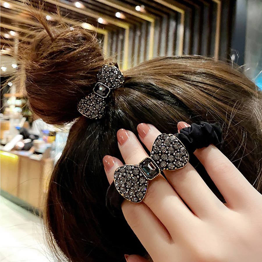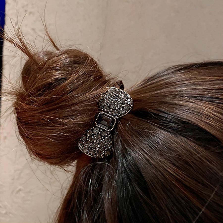 レディース 大人可愛い ヘアアクセサリー おしゃれ リボン 髪留め 髪飾り お洒落 ラインストーン まとめ髪 オルチャン