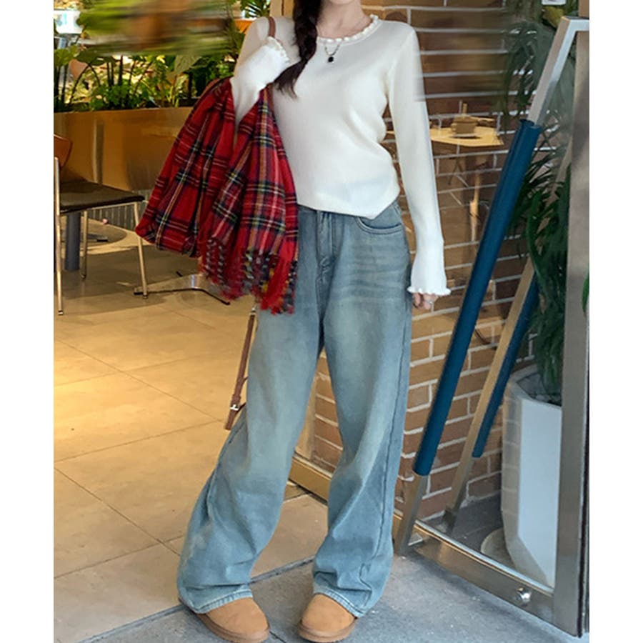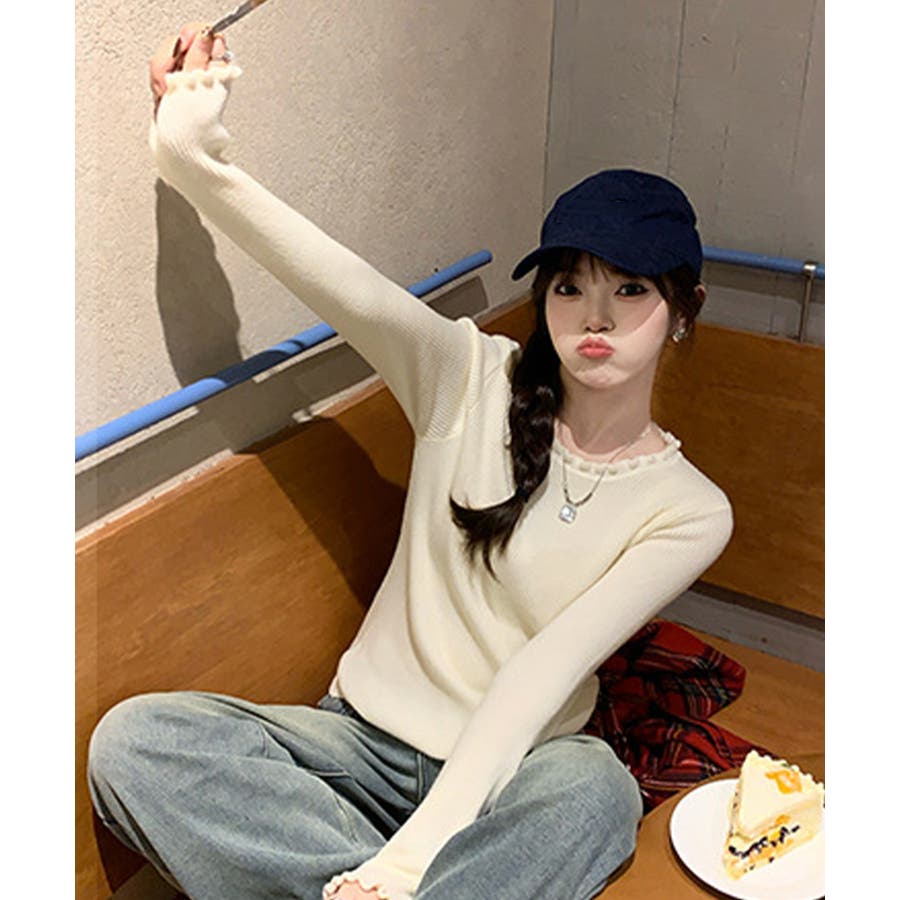 きれいめニット秋冬 スリムニット着やせ 細見えニット韓国風
