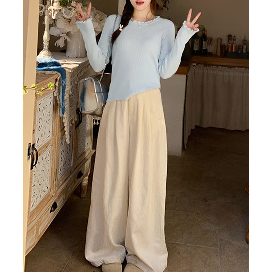 春秋冬のコーデに欠かせない、フェミニンなニットトップス。