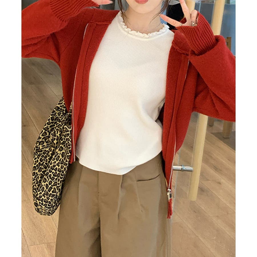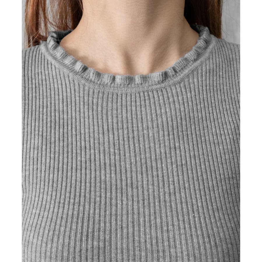 フリル襟・袖が程よい立体感を生み、女性らしい華やかさをプラス。