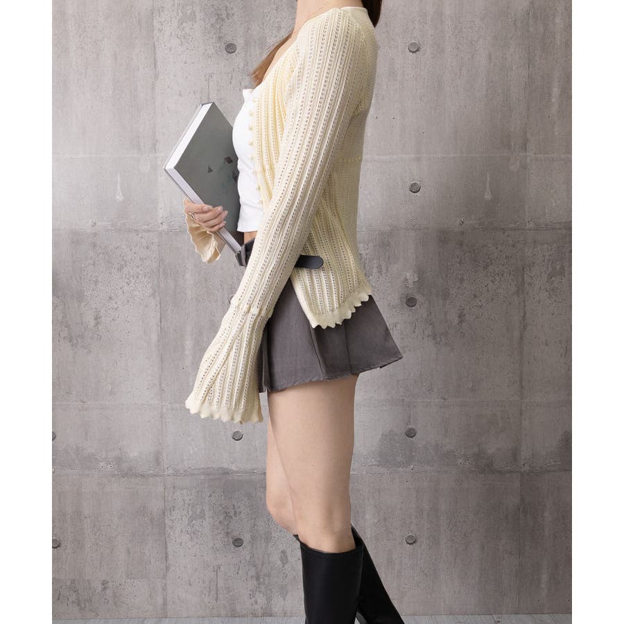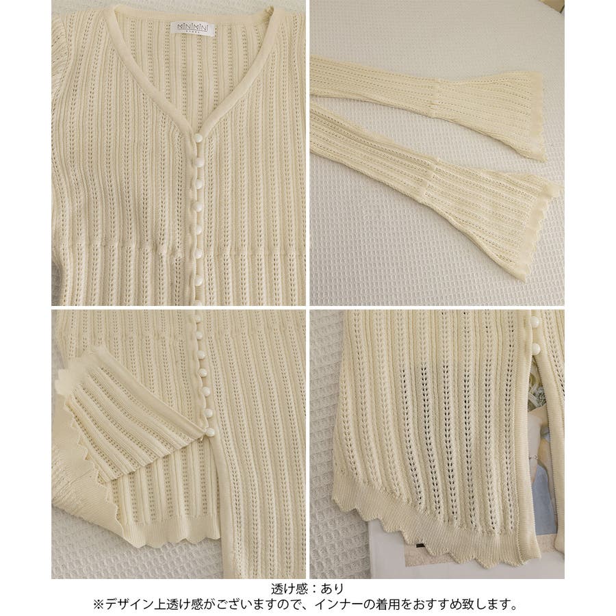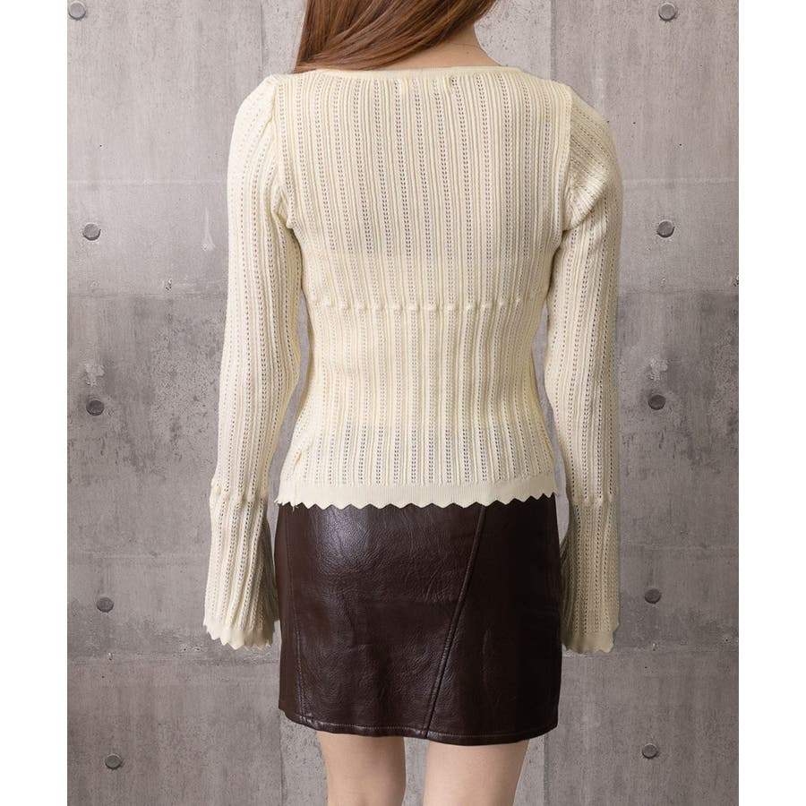 ほどよく広がるフレアスリーブと縦ラインの編地が、女性らしい柔らかな印象を演出。