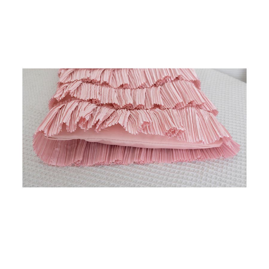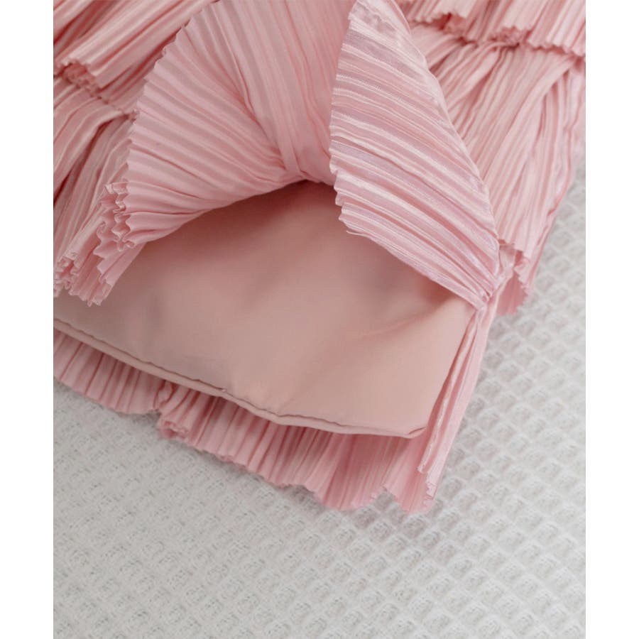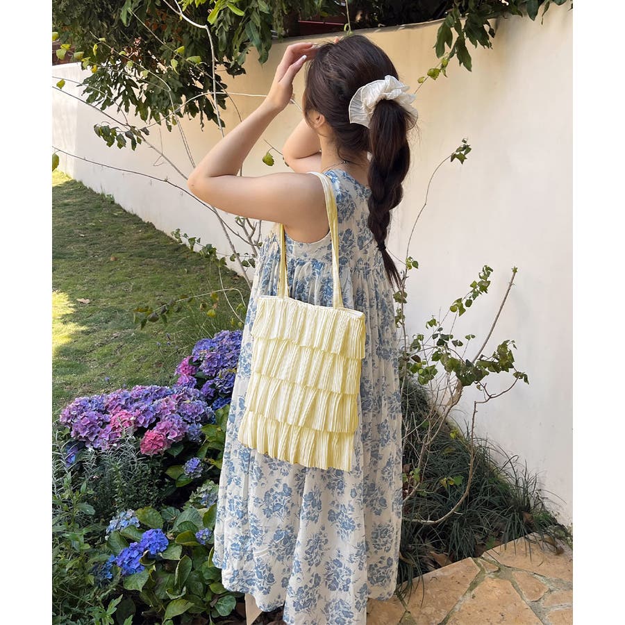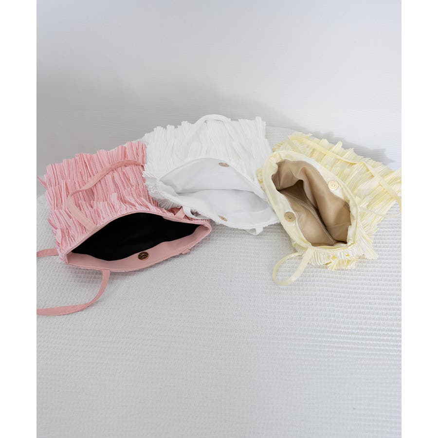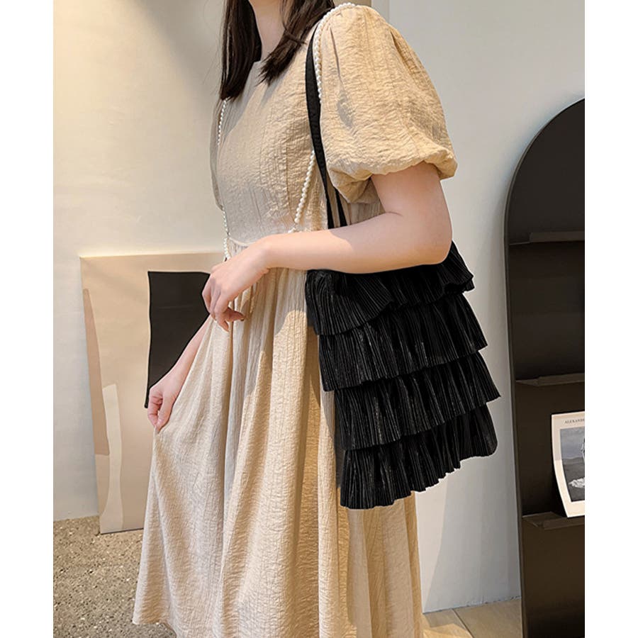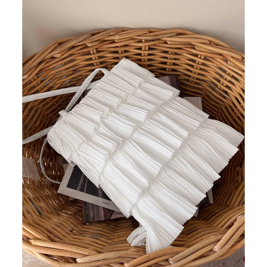 華やかなフリルが目を引くプリーツデザイントートバッグ。