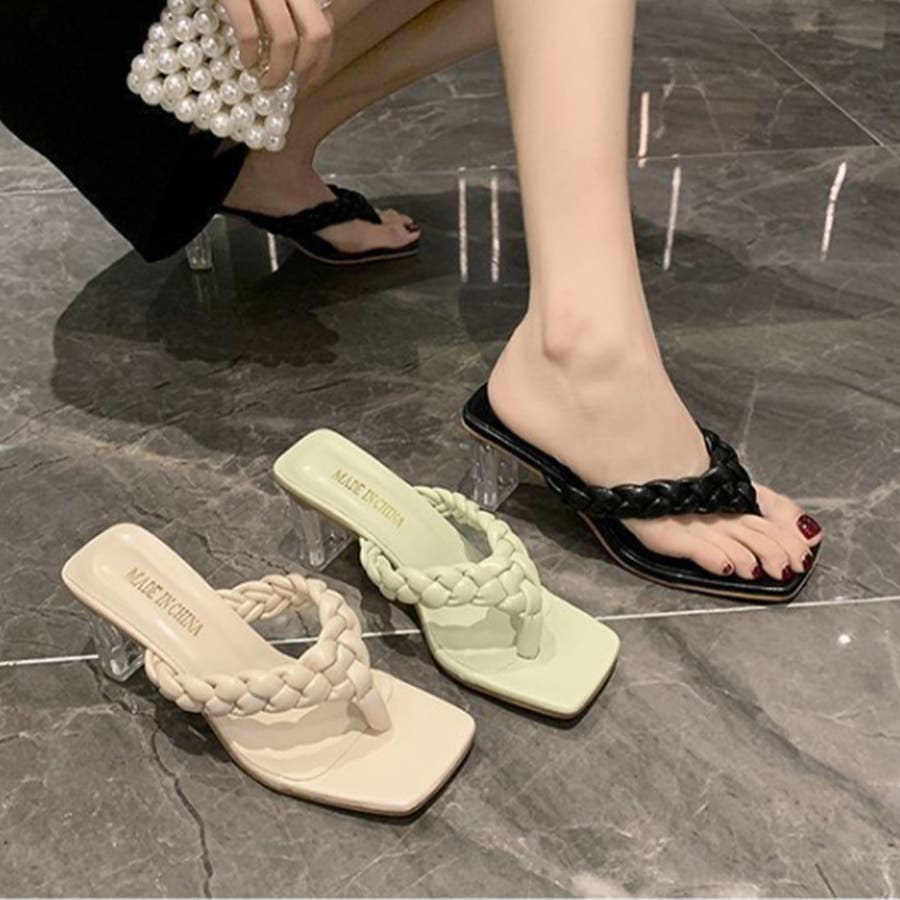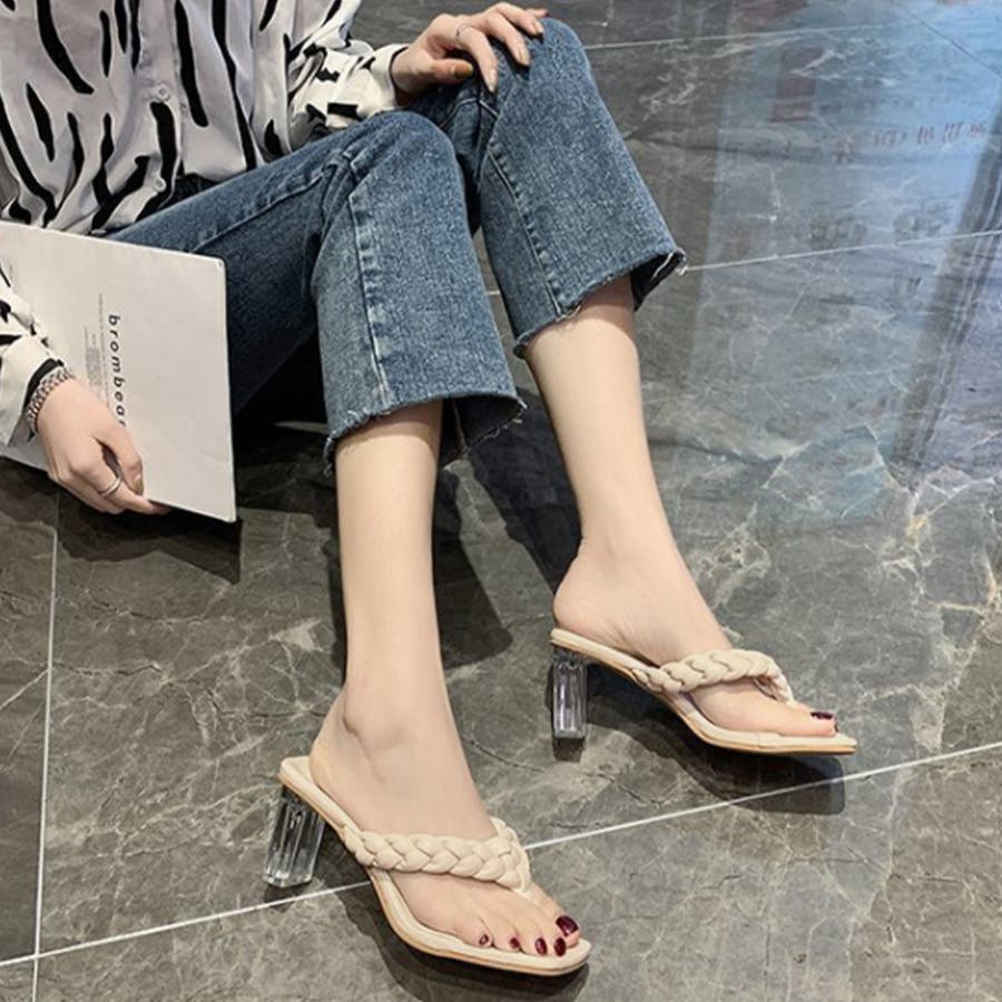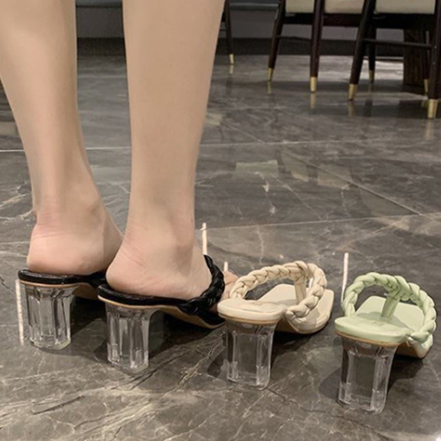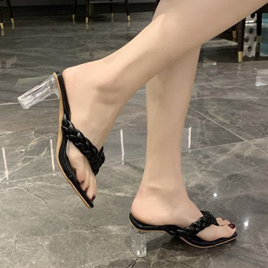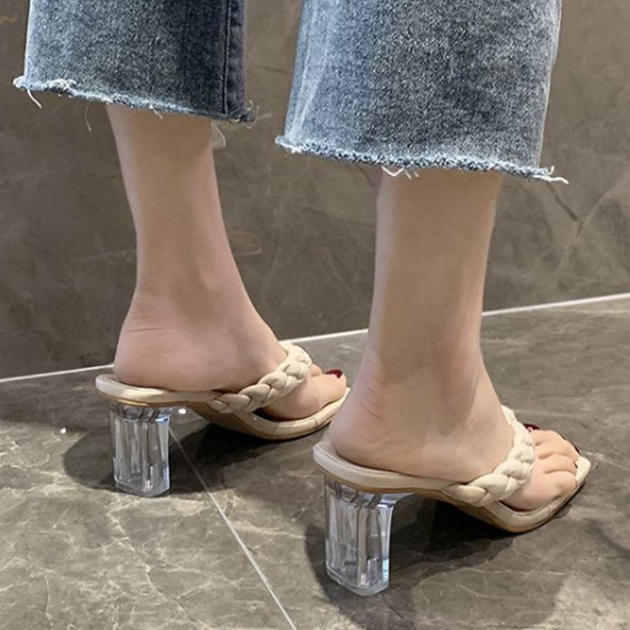 クリアヒール サンダル 編み込みデザイン