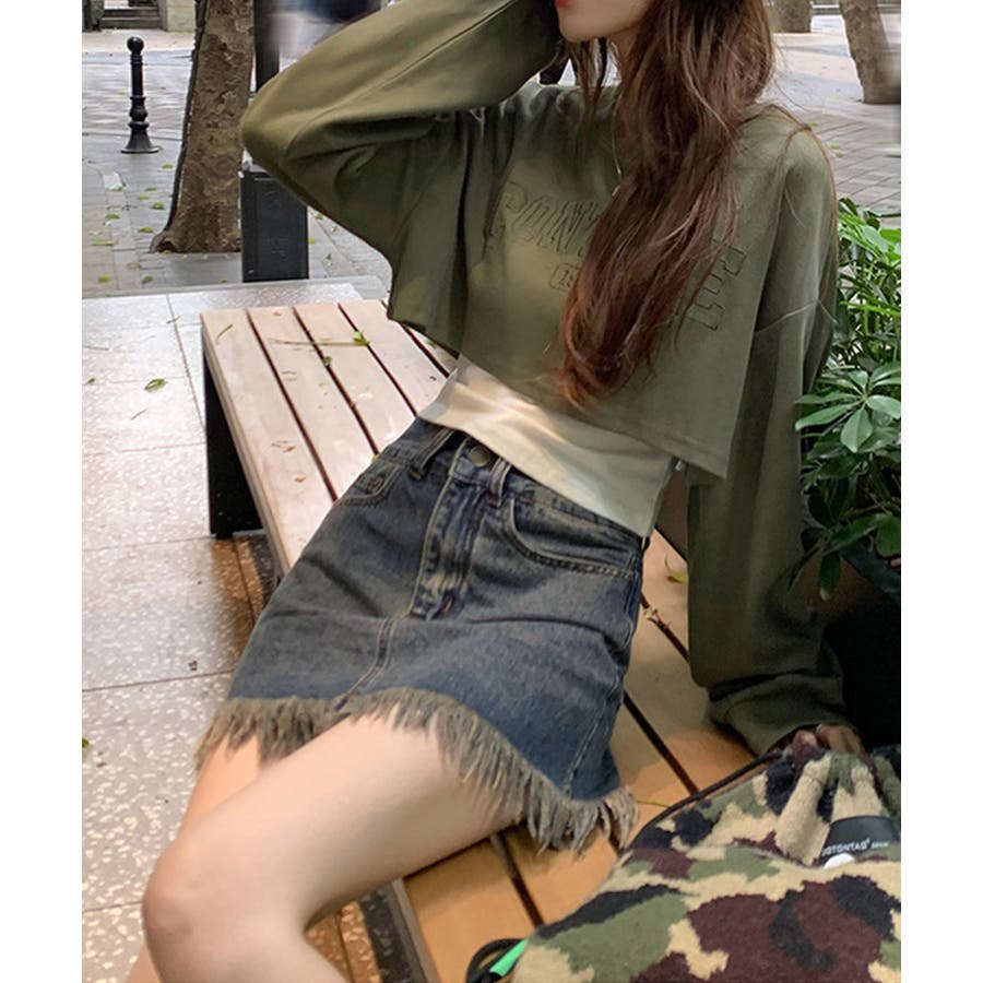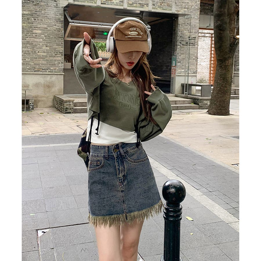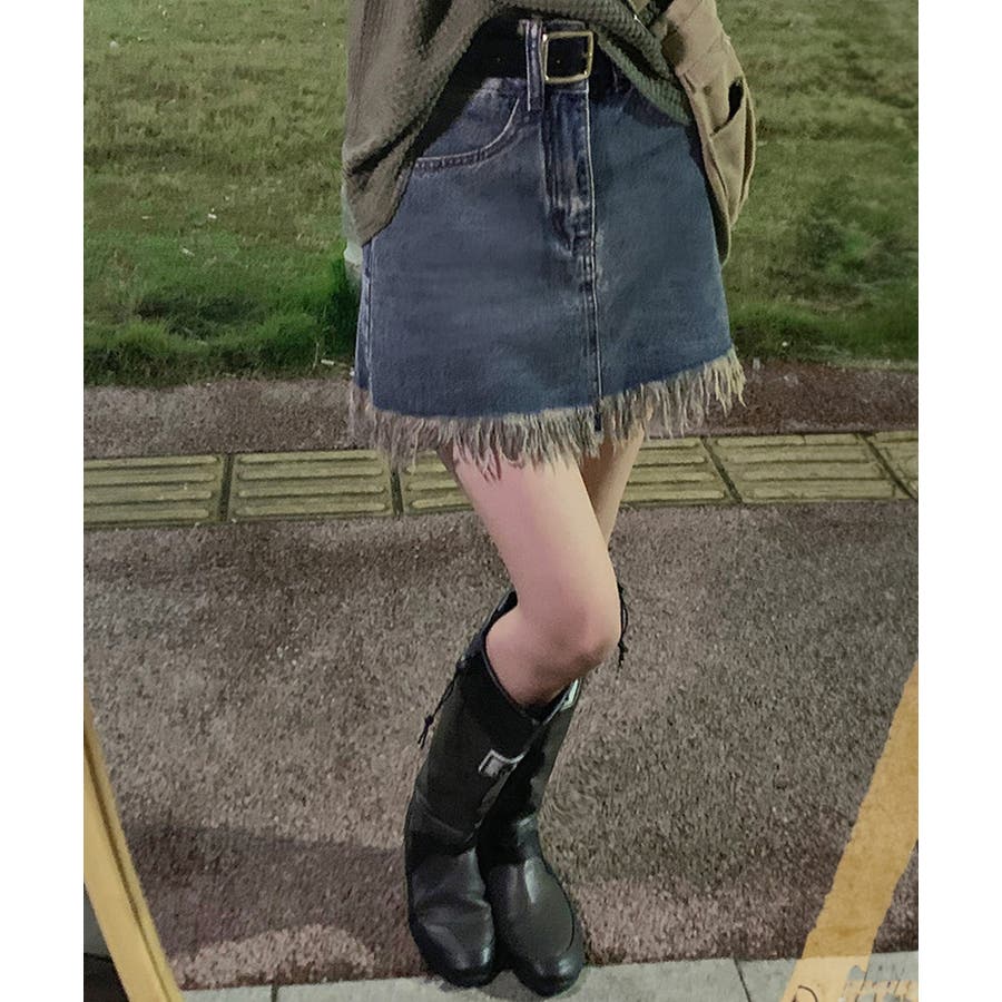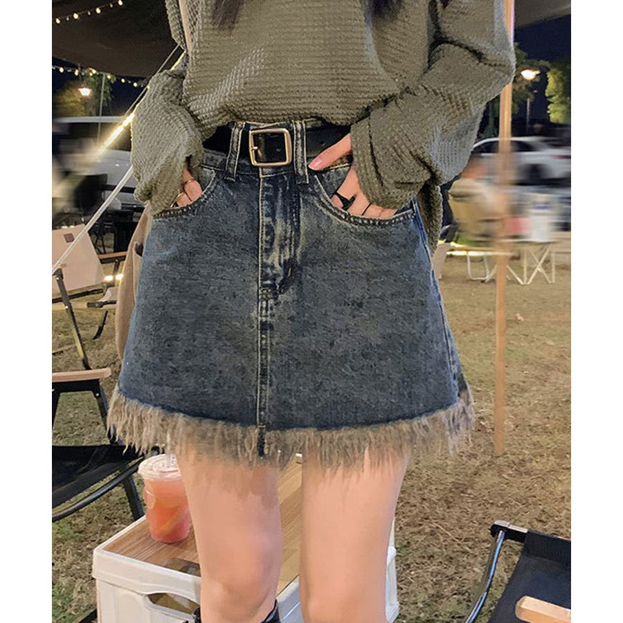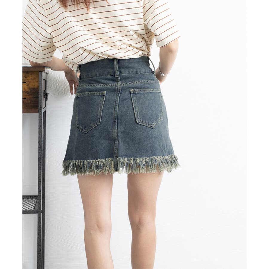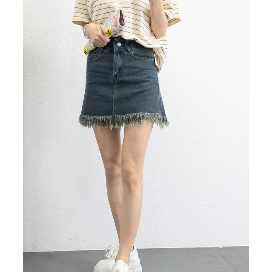 台形のベーシックなシルエットが幅広いコーデにマッチするデニムミニスカート