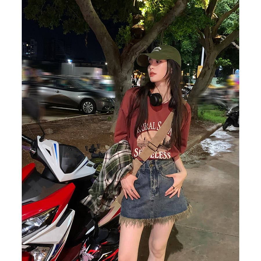 これからの季節はコンパクトなカットソーやタンクトップ、キャミソールを合わせてカジュアルに着こなすとトレンドコーデに