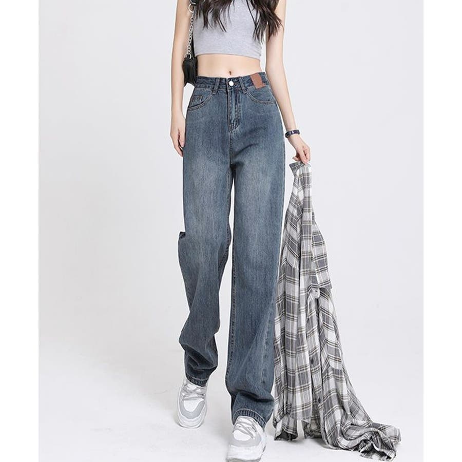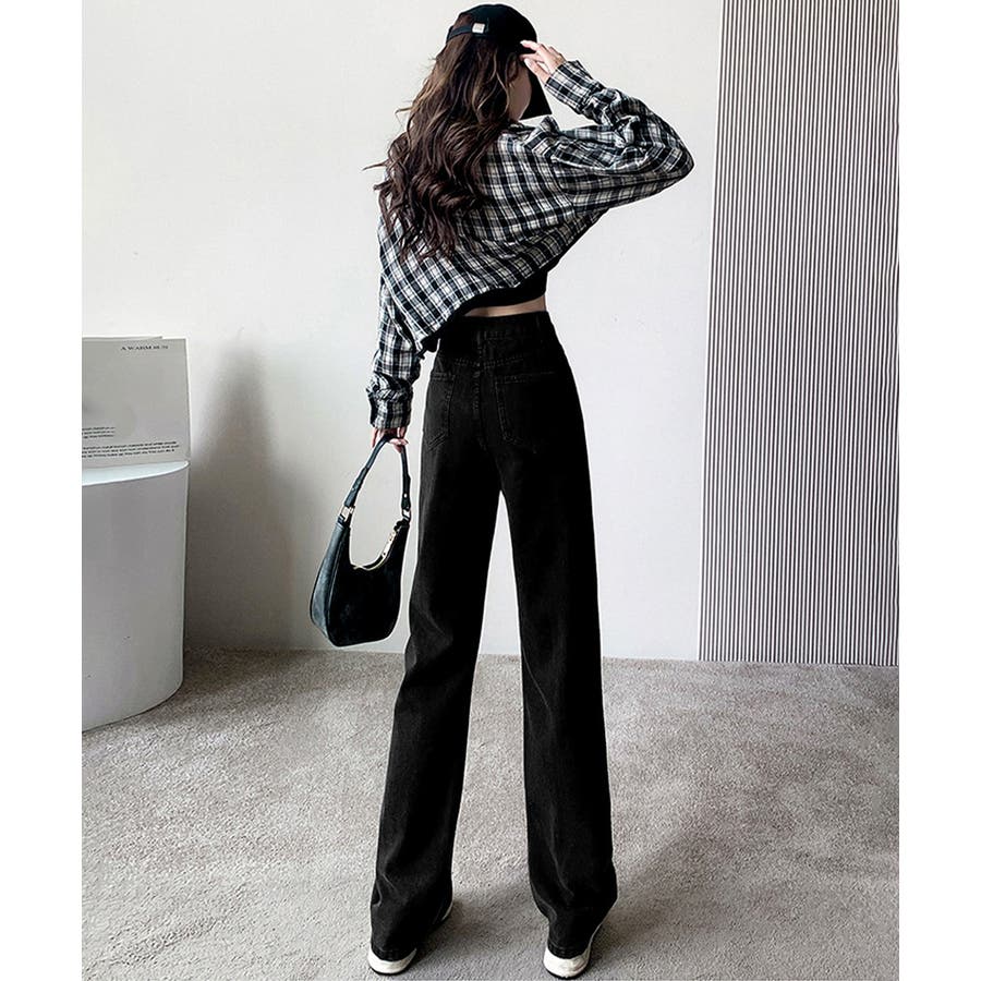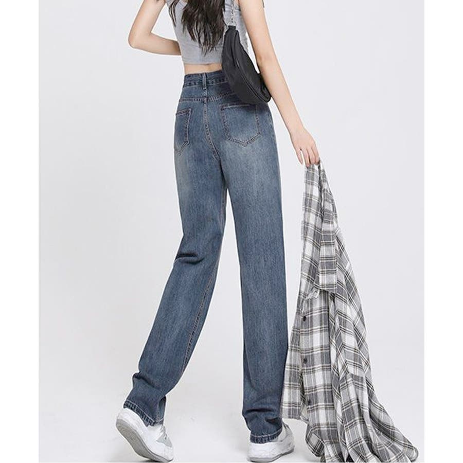 ハイウエストストレートパンツ レディース裏ボアロングパンツ カジュアル 美脚脚長レトロデニム 着やせ あったかパンツ秋冬