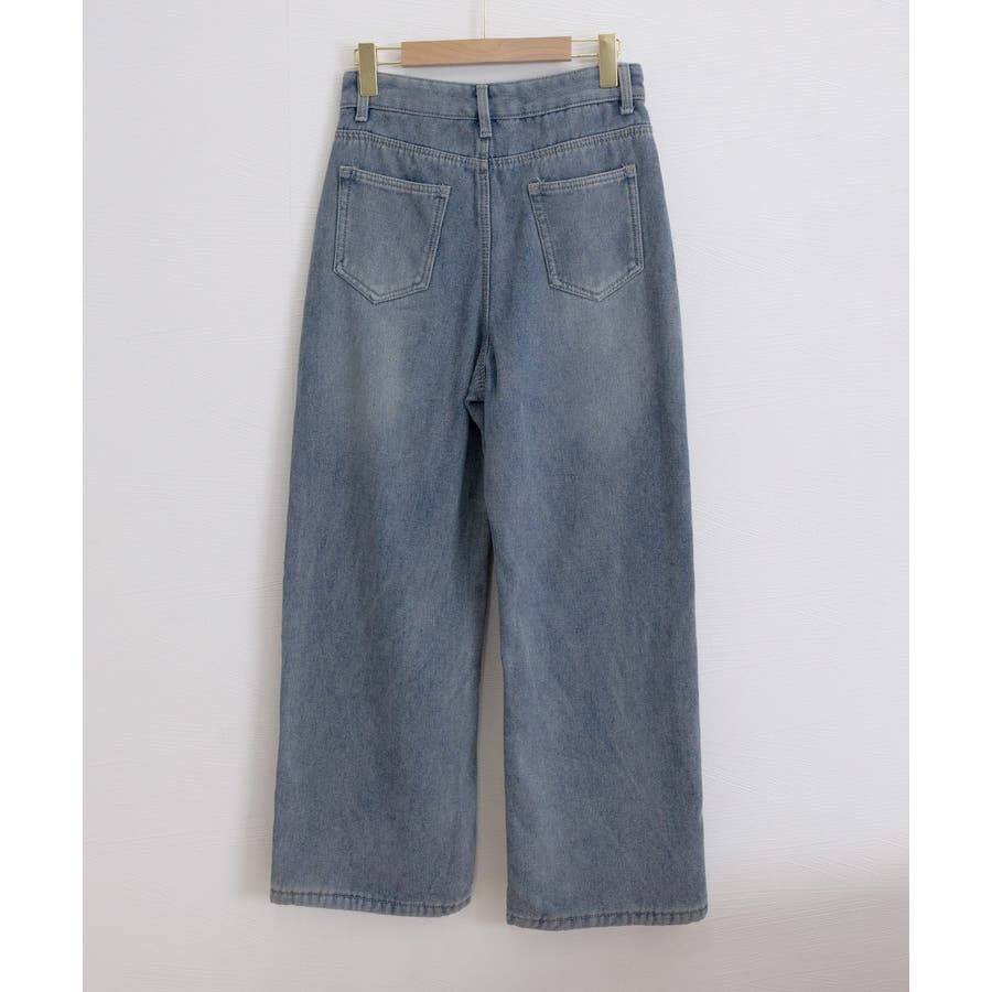 ハイウエスト仕様とゆったりシルエットで脚をすっきり見せ、スタイルアップも期待できる。