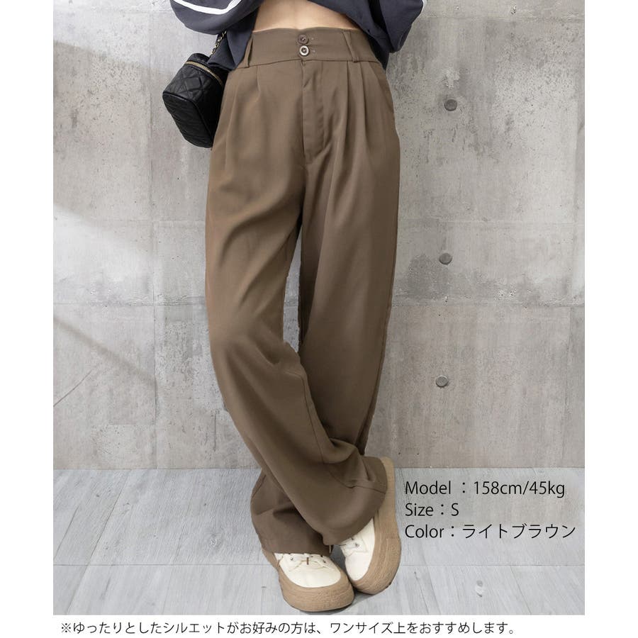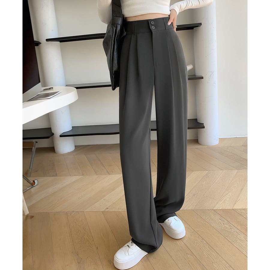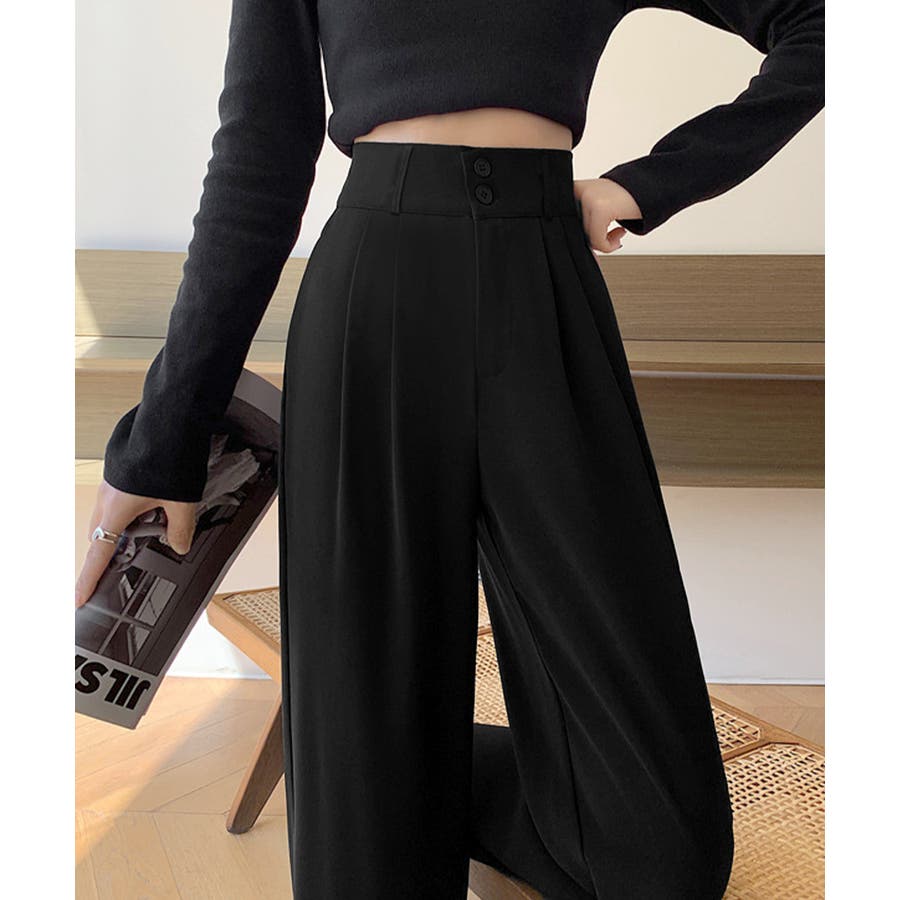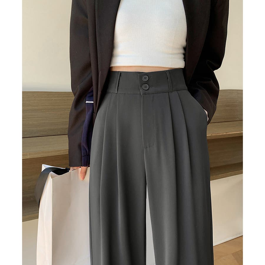 ツータック入りのハイウエストワイドスラックス。