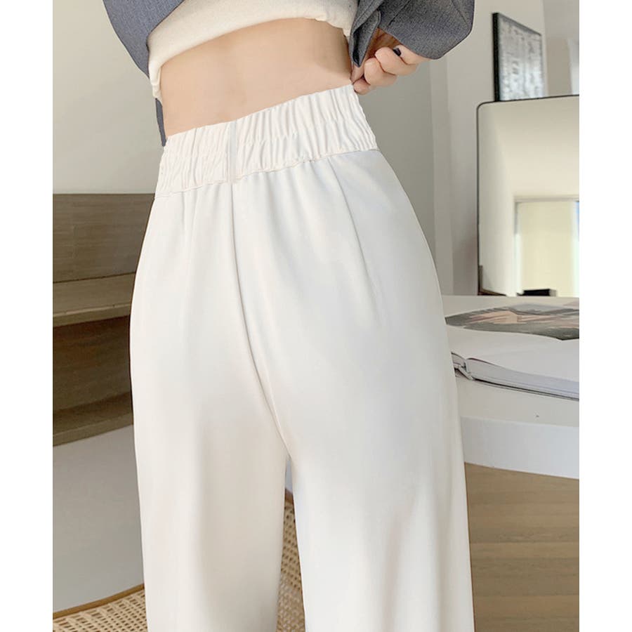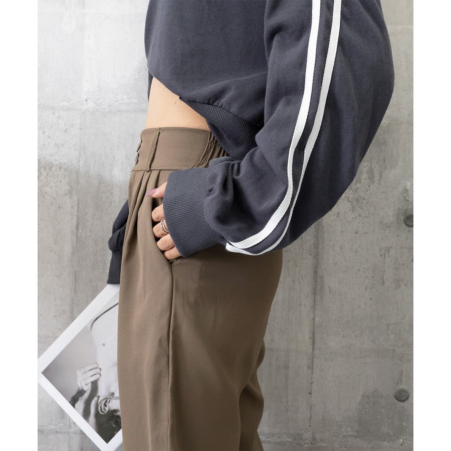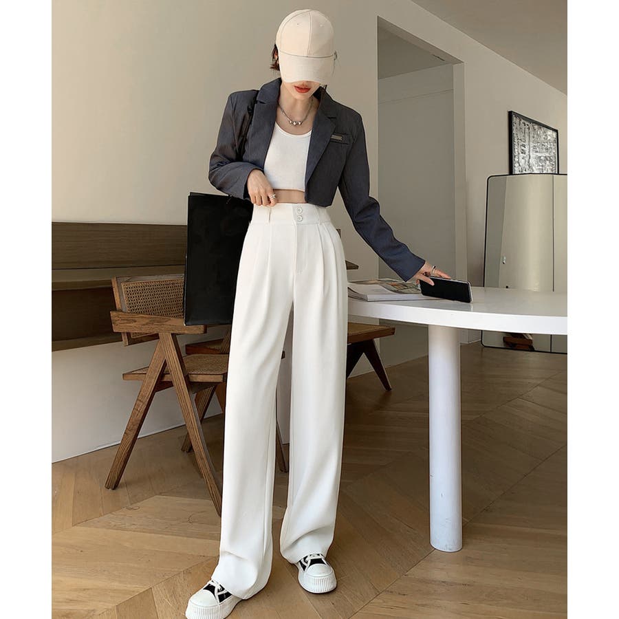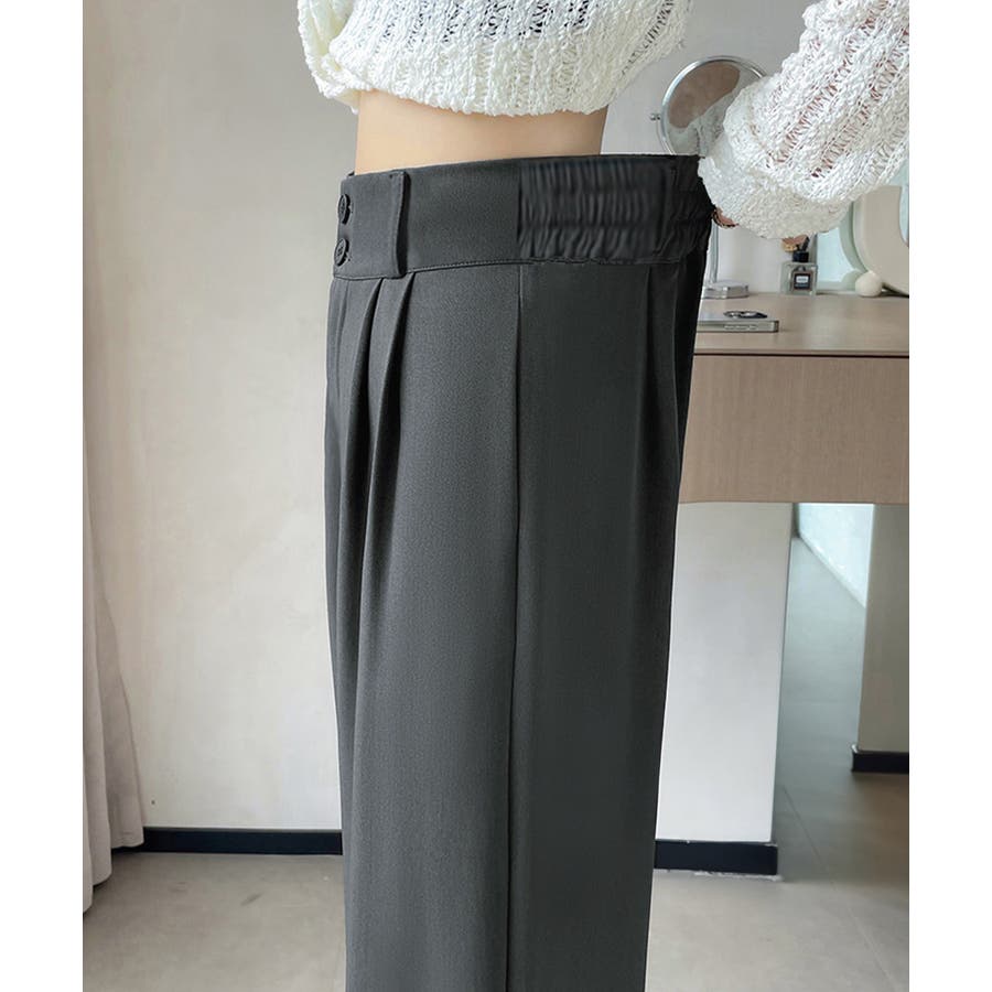 ツータック入りのハイウエストワイドスラックス。