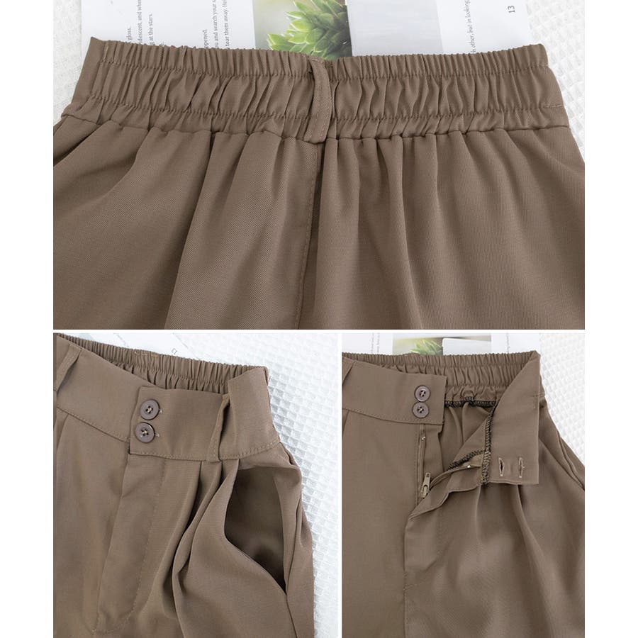 ダブルボタンがアクセントになり、バックゴム仕様でラクな穿き心地。