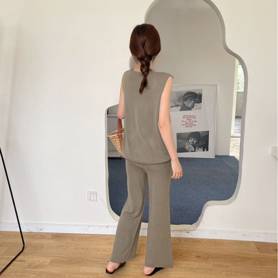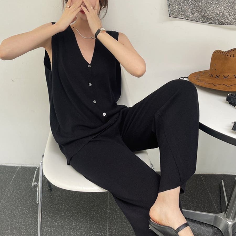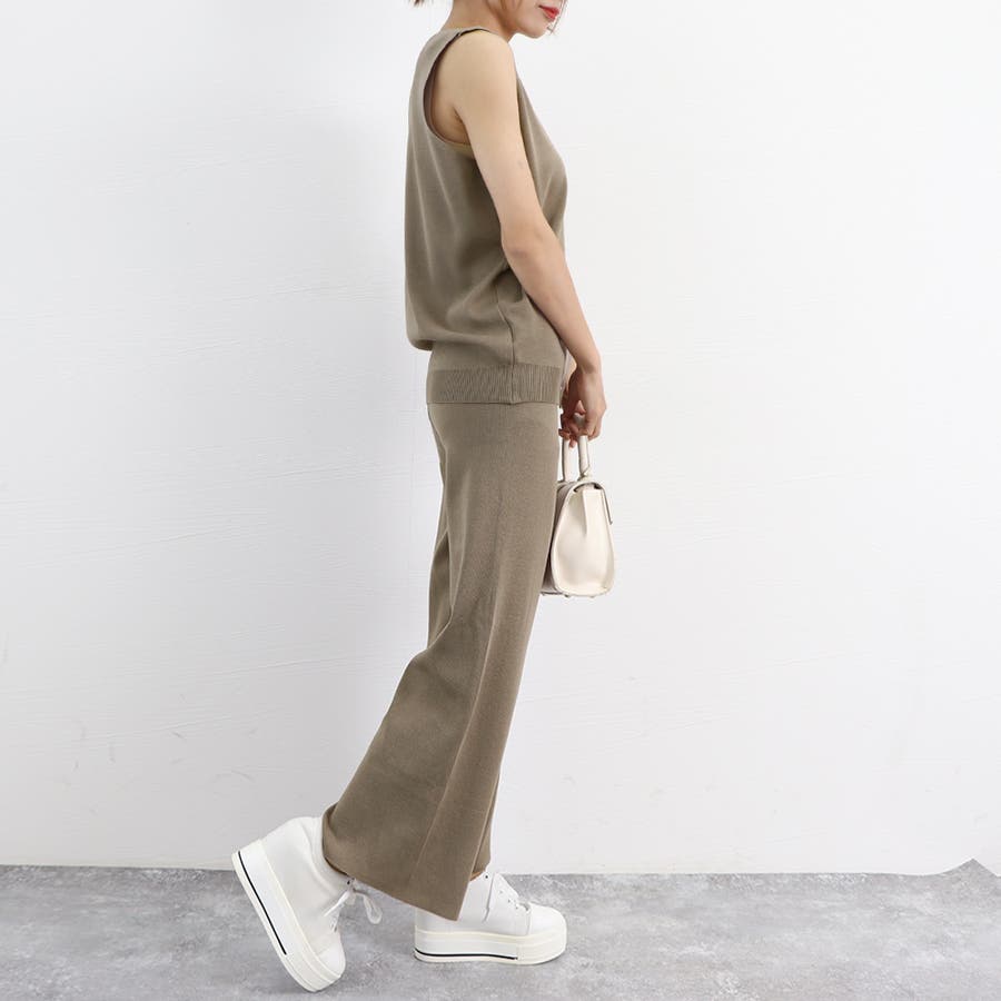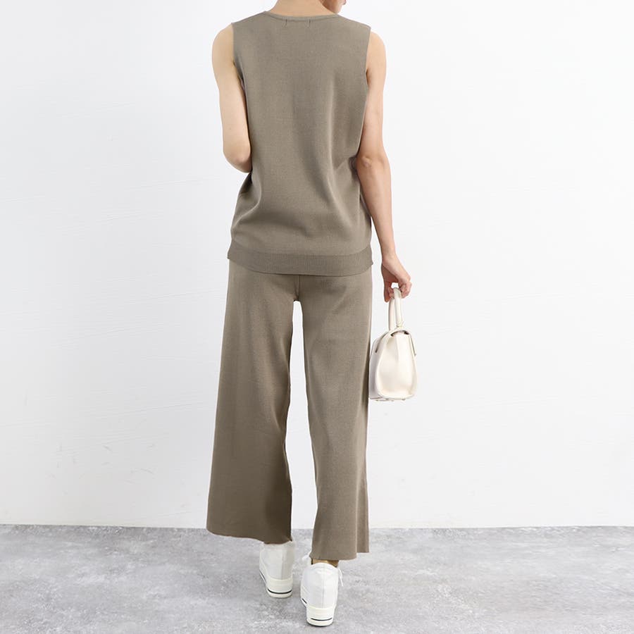 トップスも太めのノースリーブで二の腕ラインがスッキリ見える