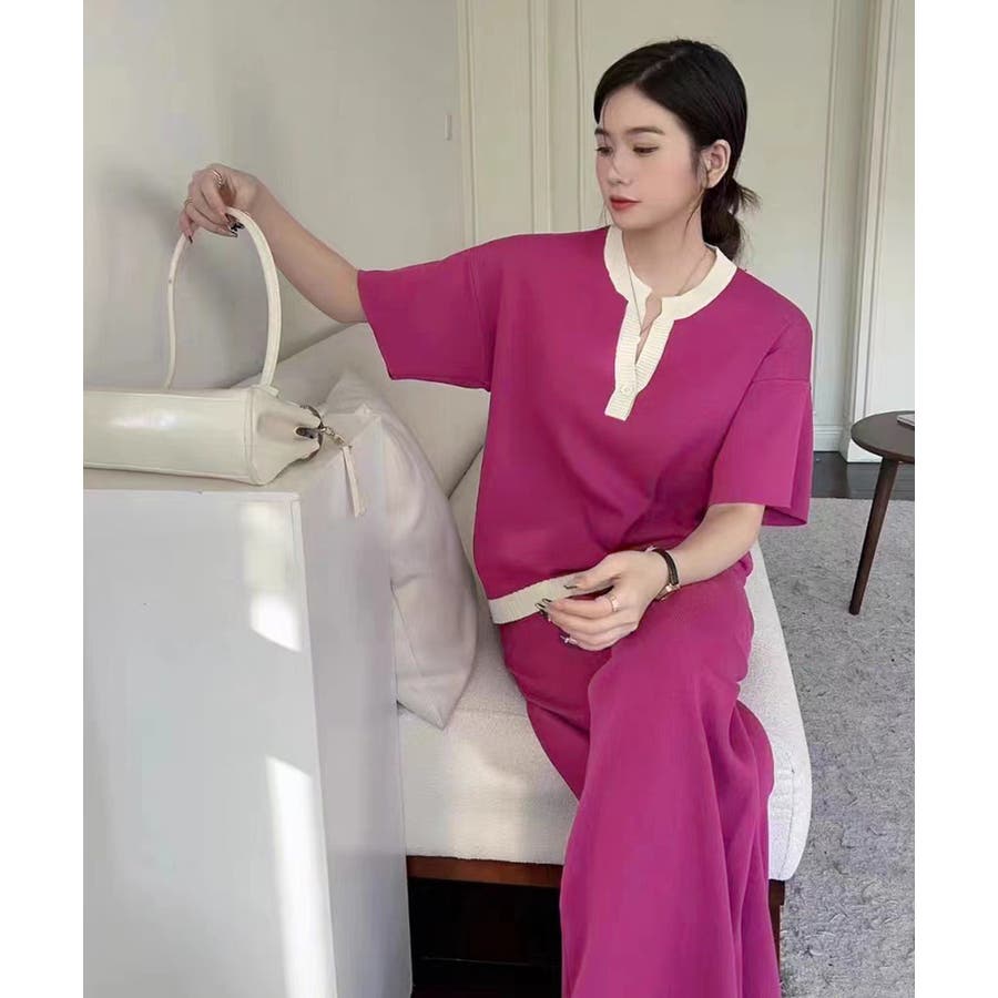 カジュアルな中にも女性らしさの漂うサマーニットセットアップ
