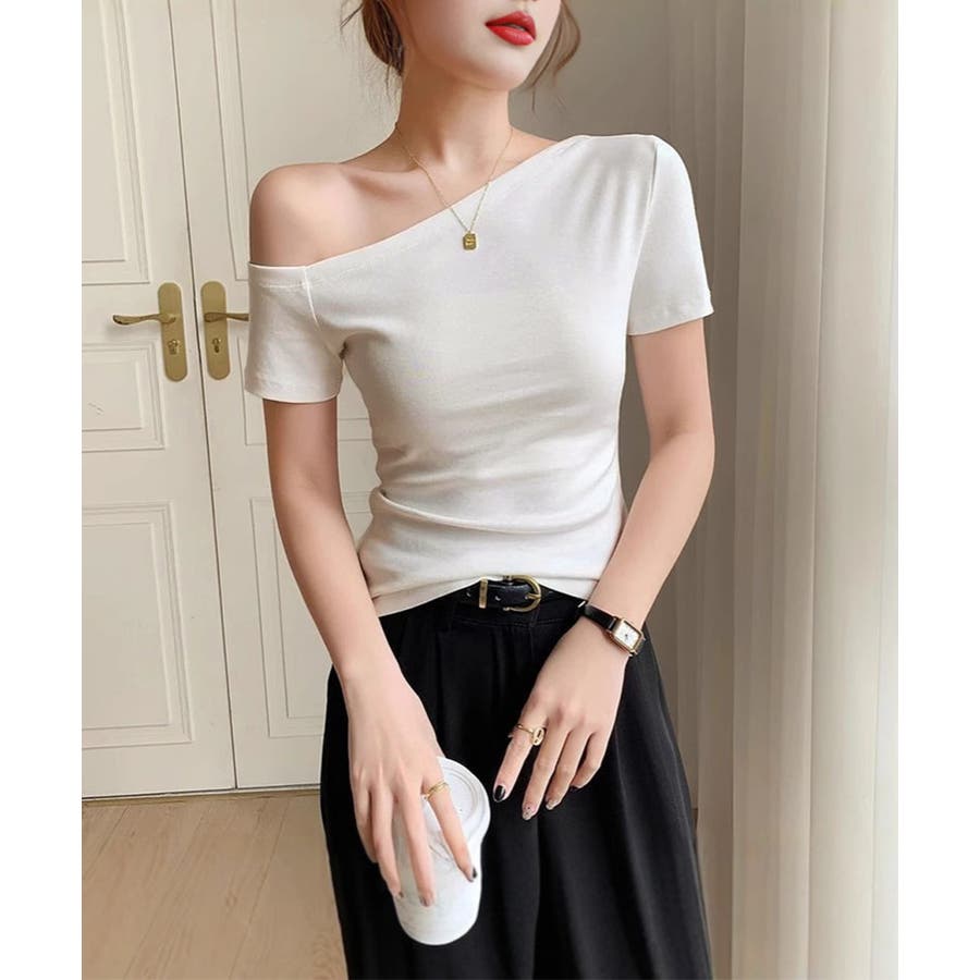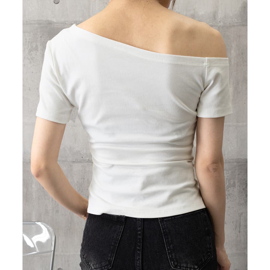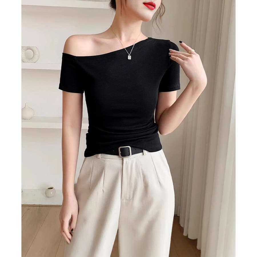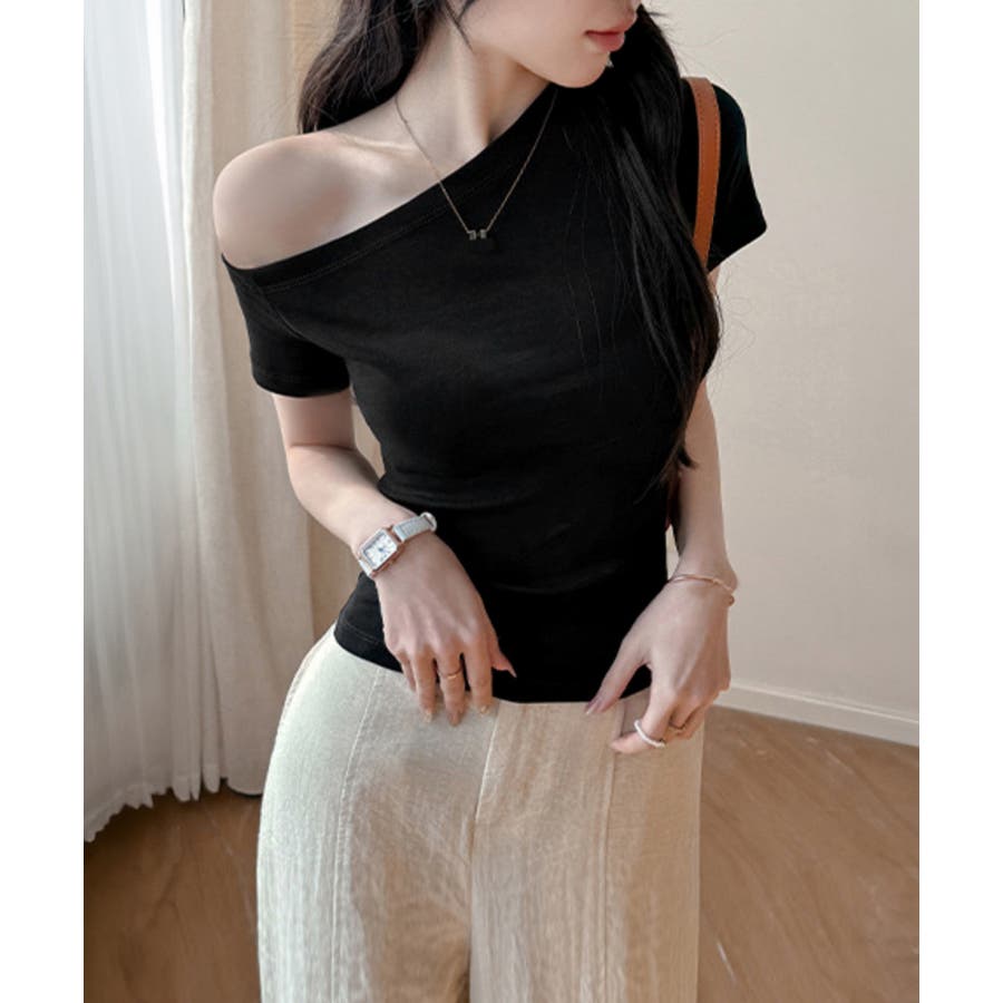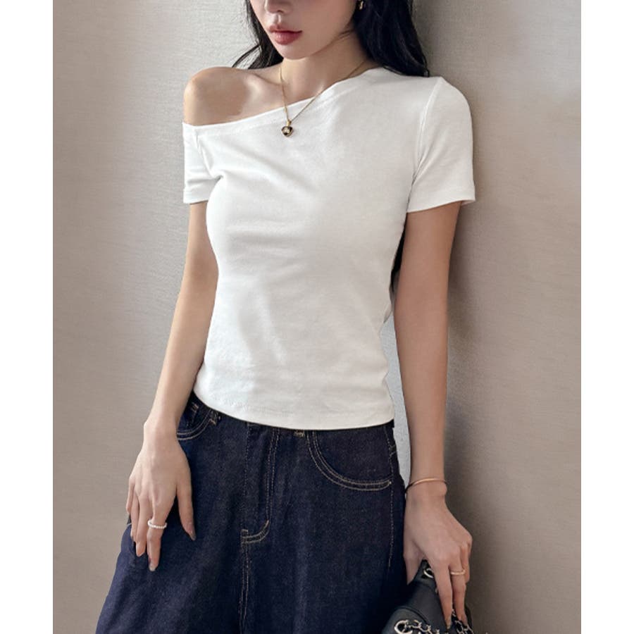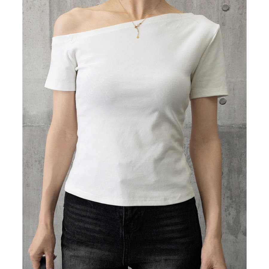 無駄のない洗練されたデザインが魅力の片肩オフショルダーTシャツ。