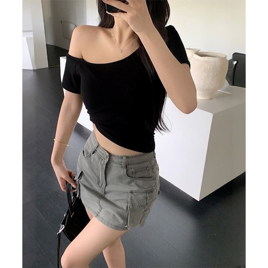 ワンショルダーTシャツオフショルダー夏服