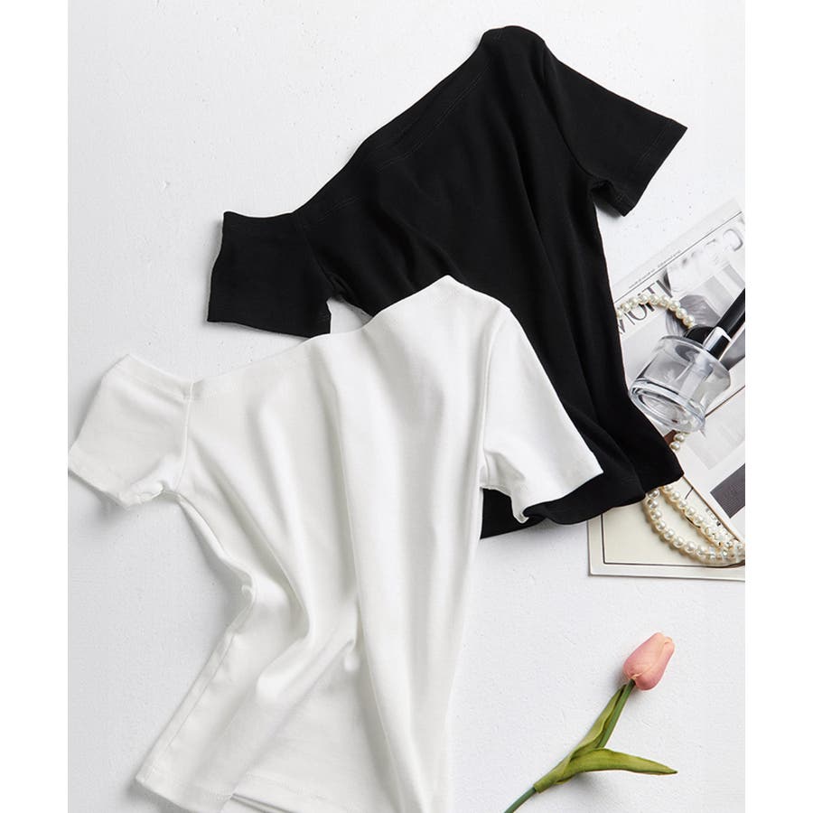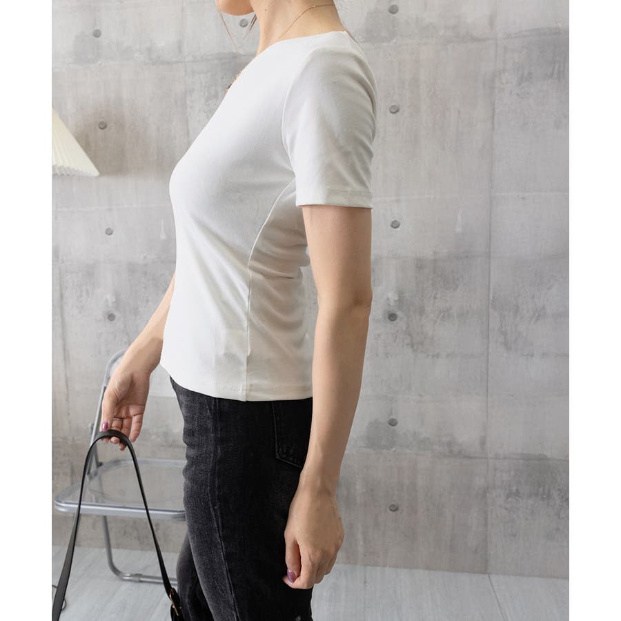 シンプルTシャツ白 肌見せカットソー黒 タイトトップス薄手