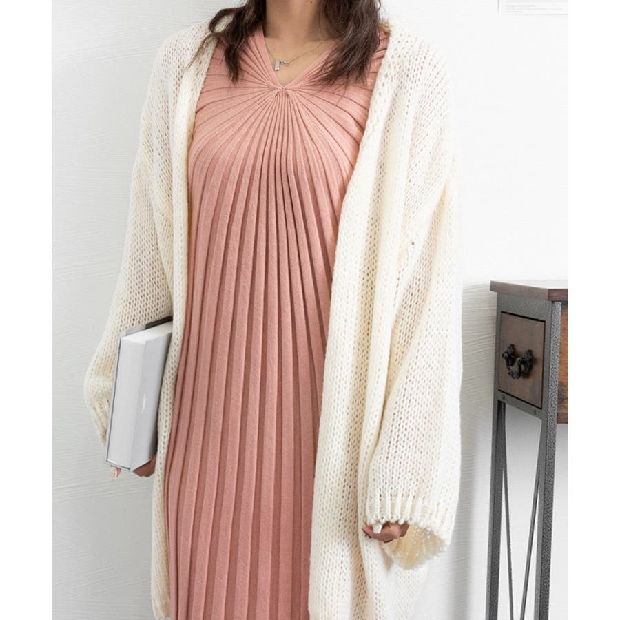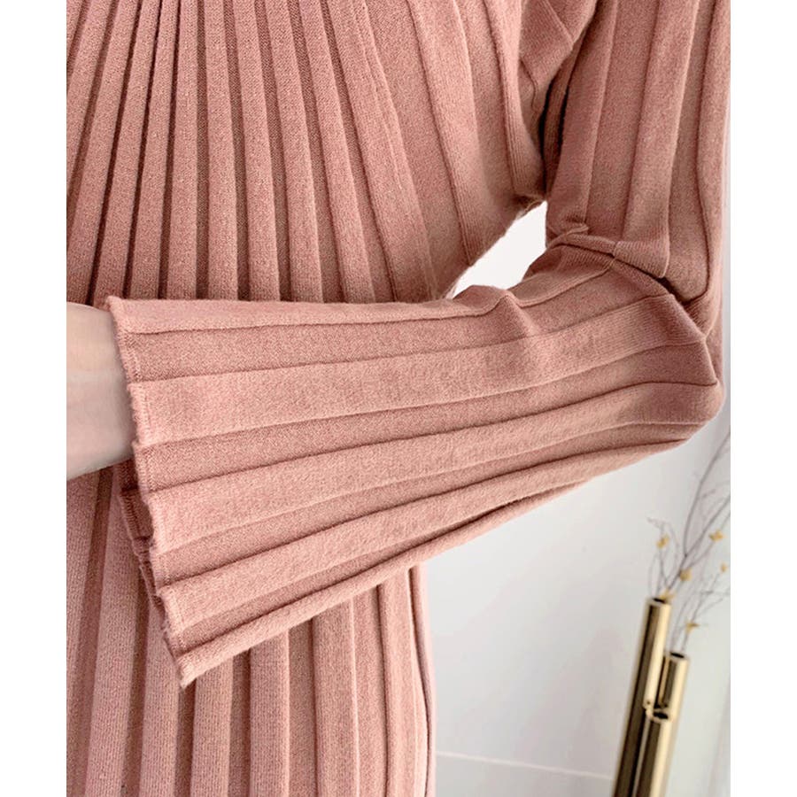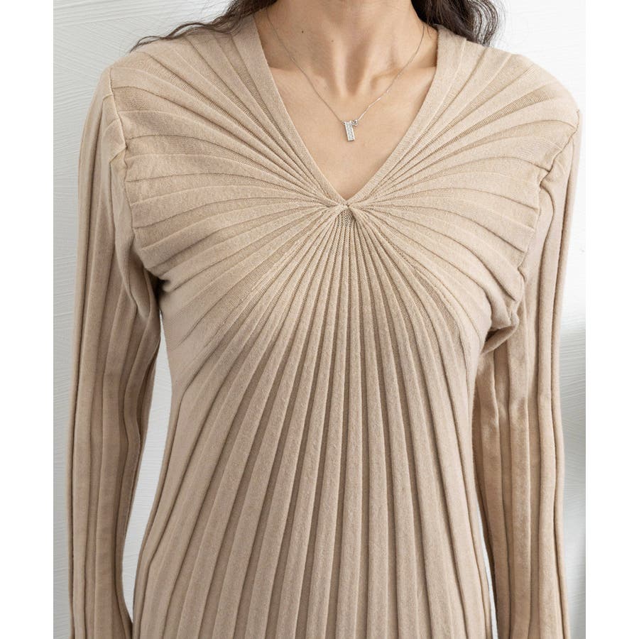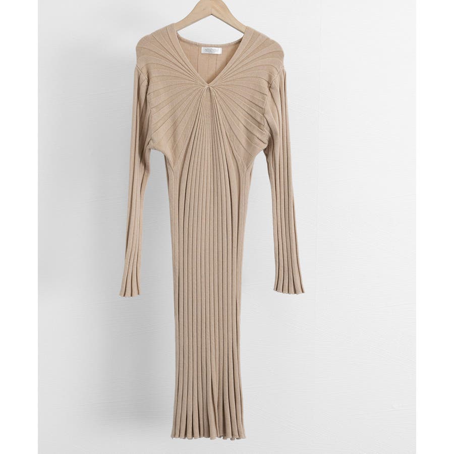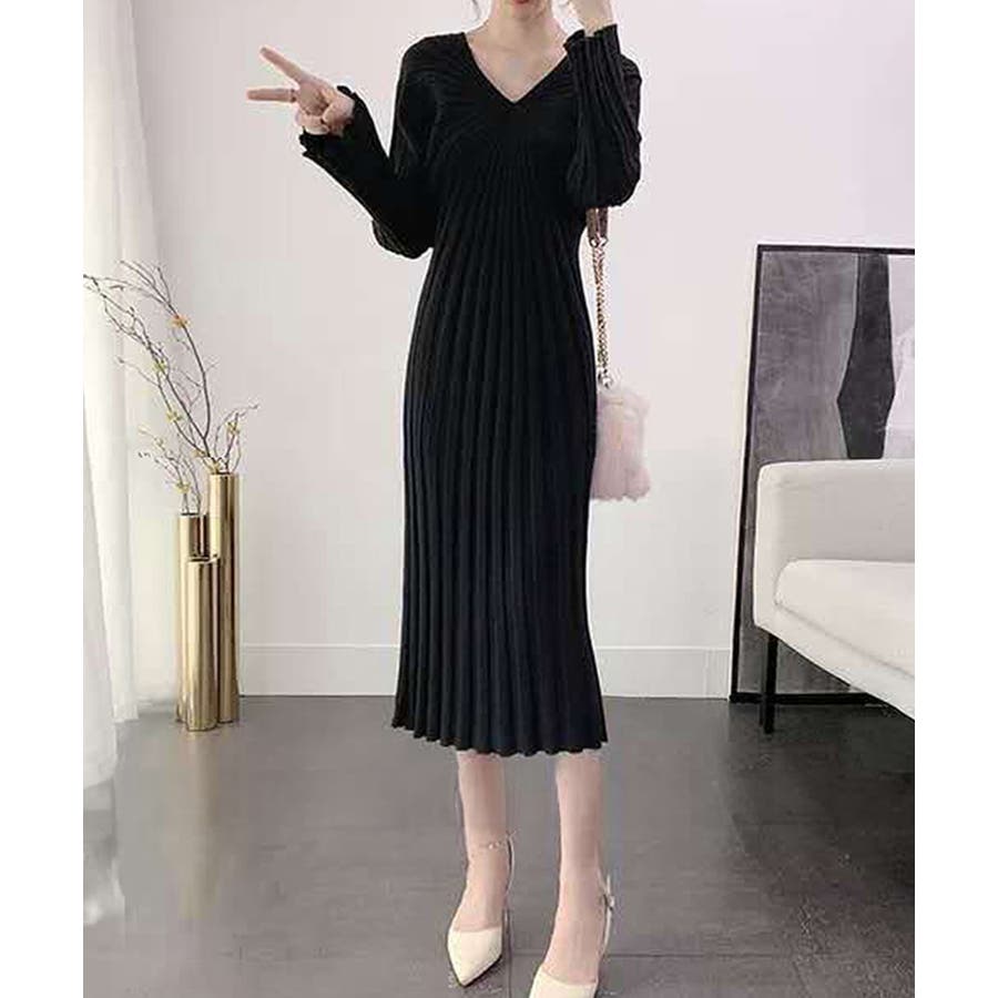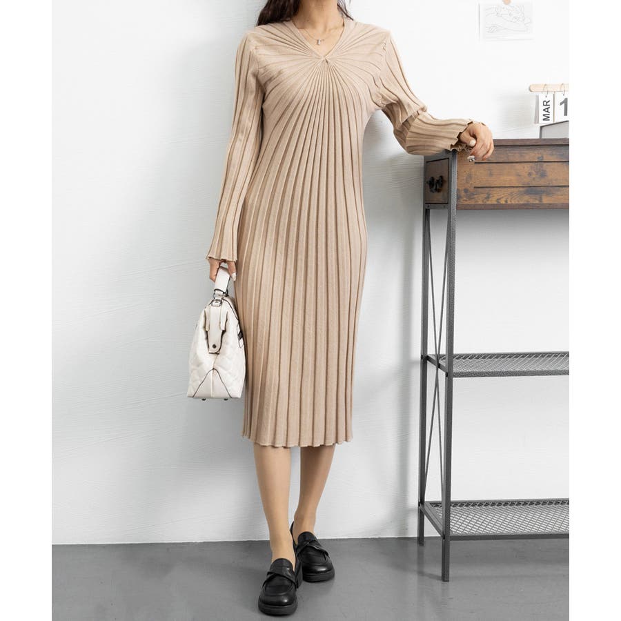 Vネック ワンピース レディース ニットワンピース 秋冬 長袖リブニット ミモレワンピ 膝丈下 フェミニン きれいめ