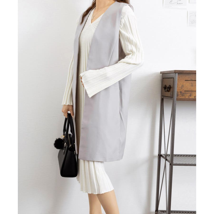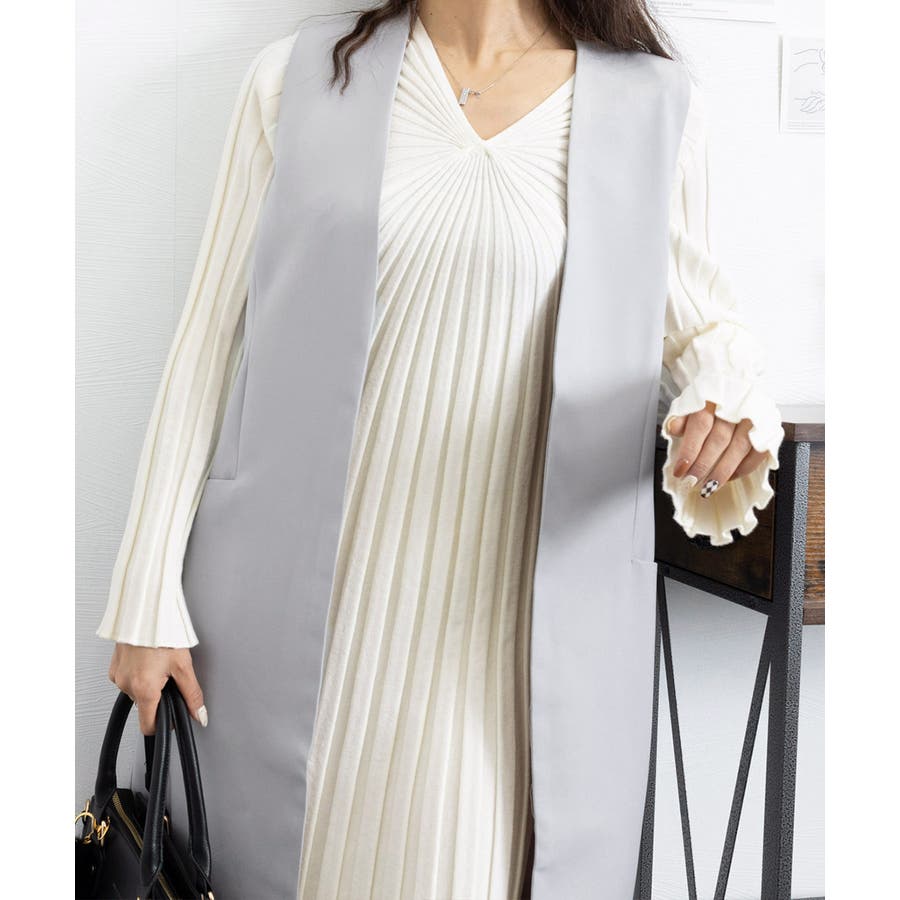 アウターを羽織ってももたつかないスッキリとした細身のシルエット、1枚でもボディラインをキレイに見せてくれます