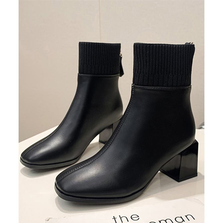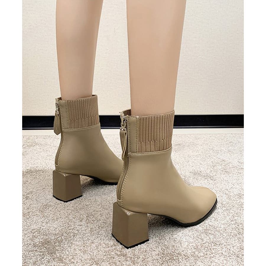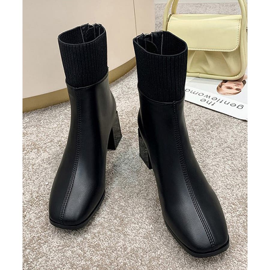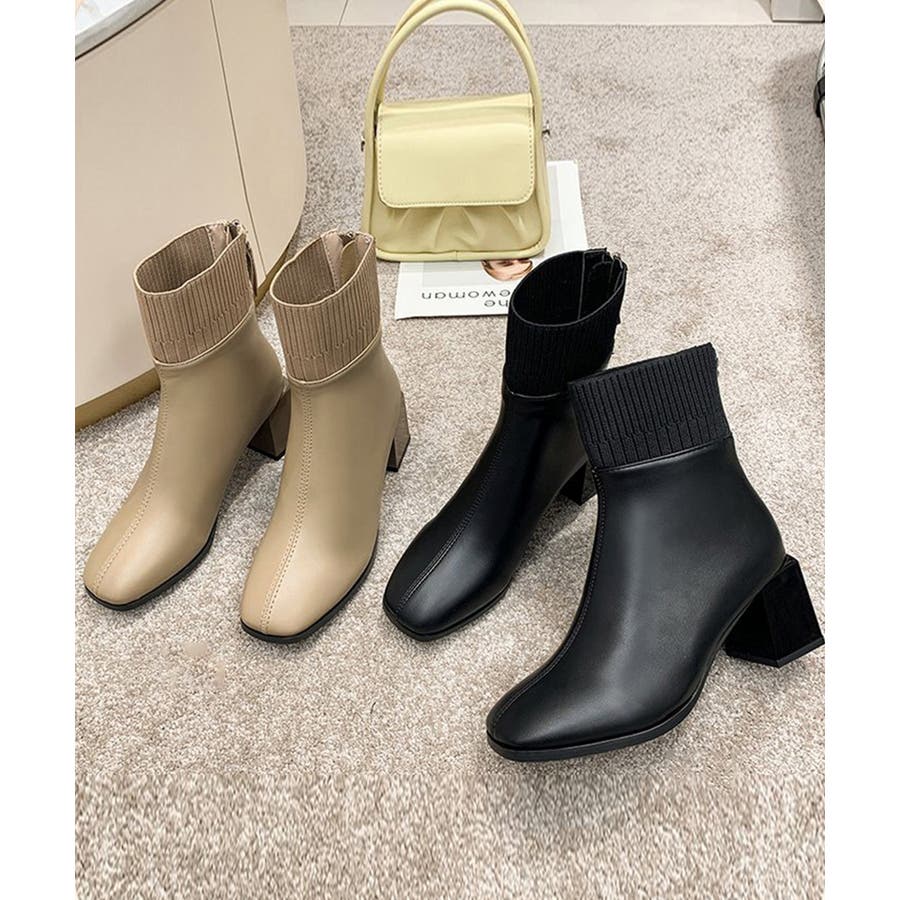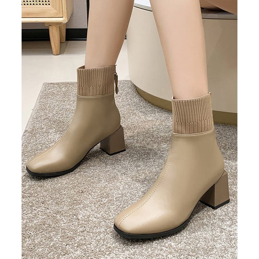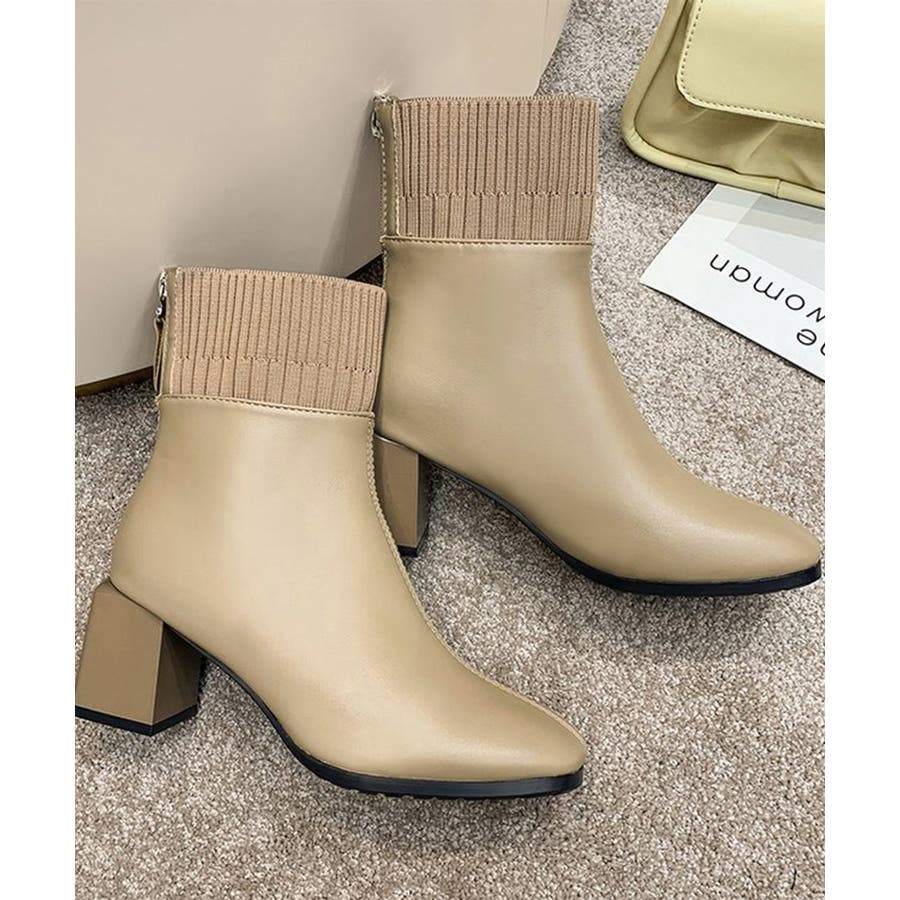 ショートブーツ 美脚 リブ切り替えブーツ