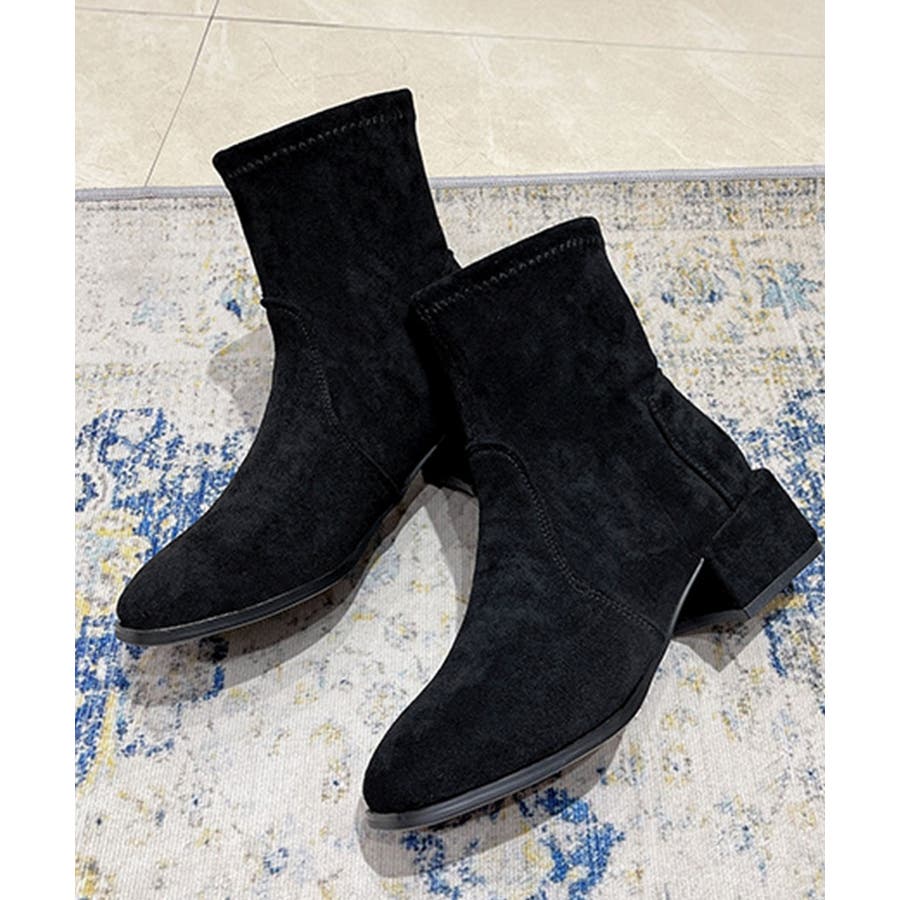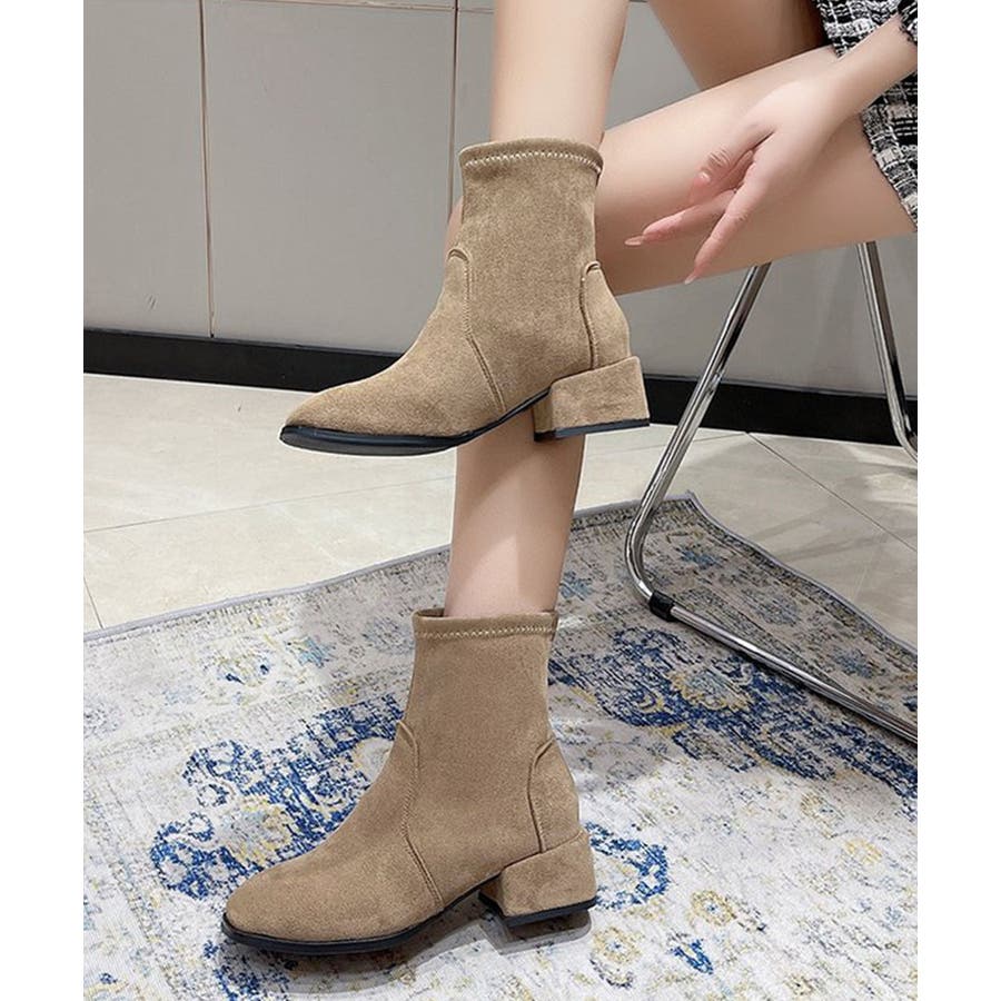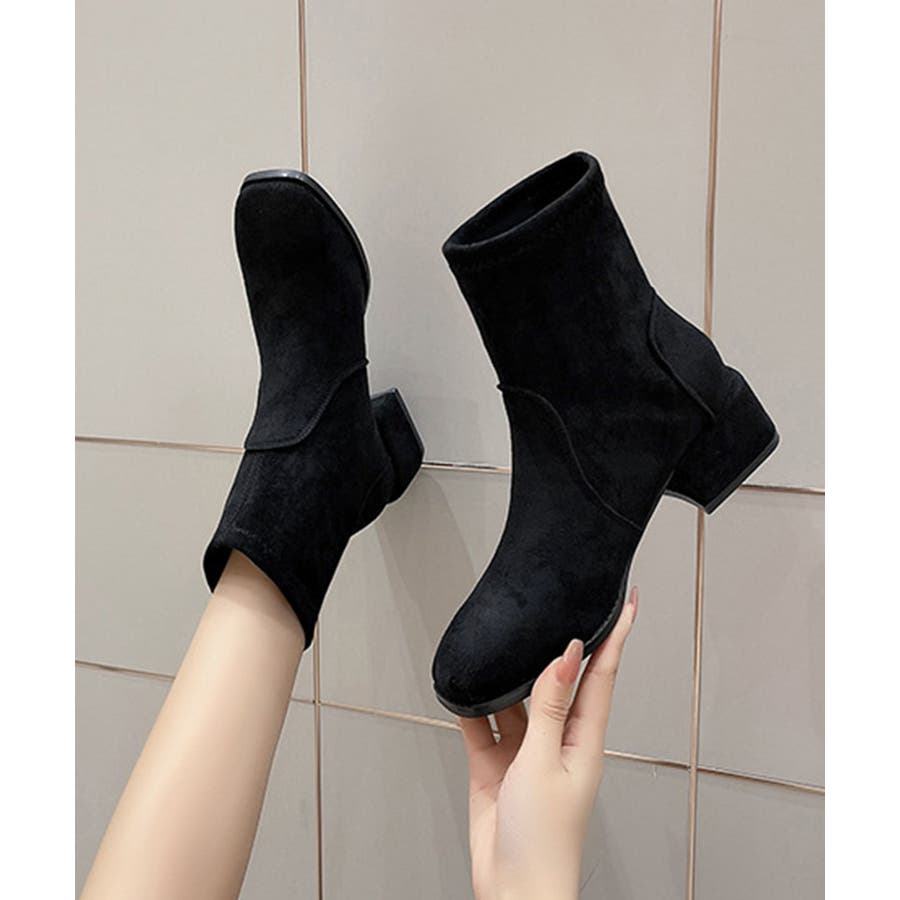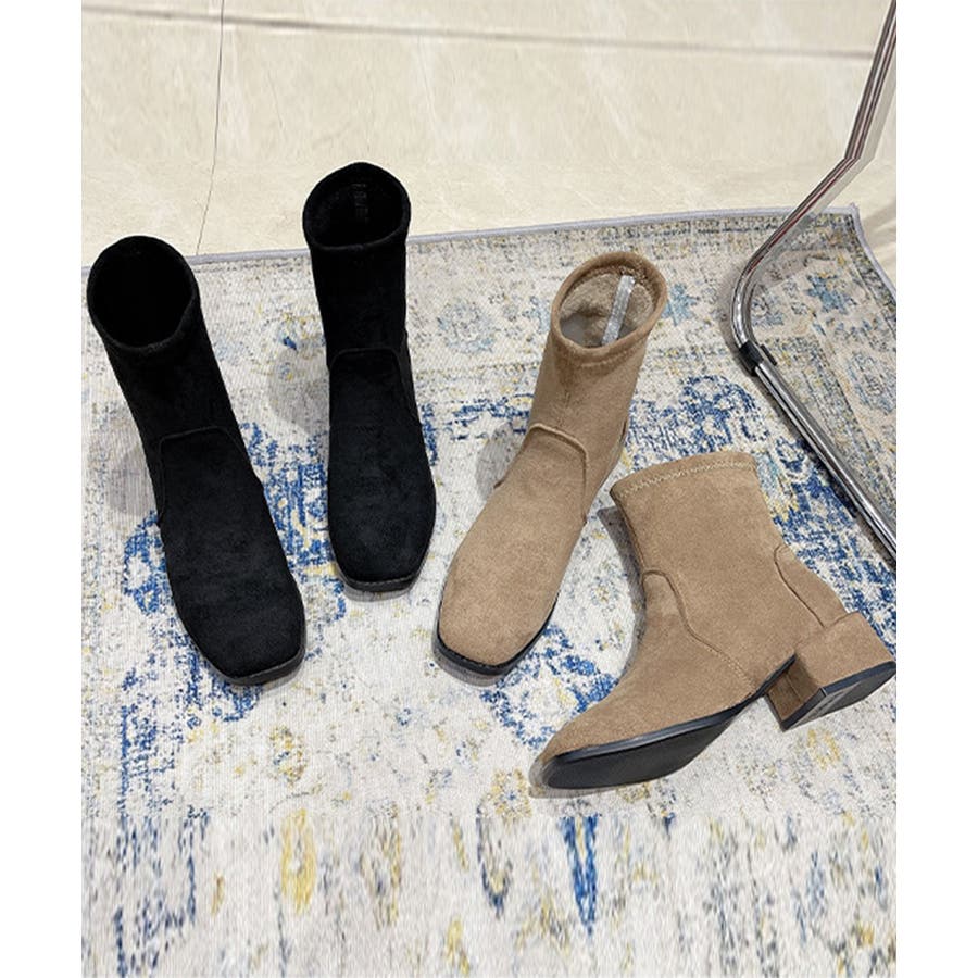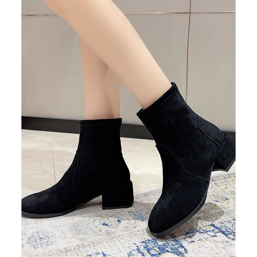 シンプルだからこそ履くだけで理想の美脚を手に入れるスエード調ショートブーティ